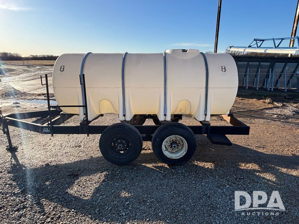 B-B Liquid Nurse Trailer (GP12402, Unit 8), 1000 gallon poly liquid nurse tank, tandem axle gear, 11L-15 flotation tires.