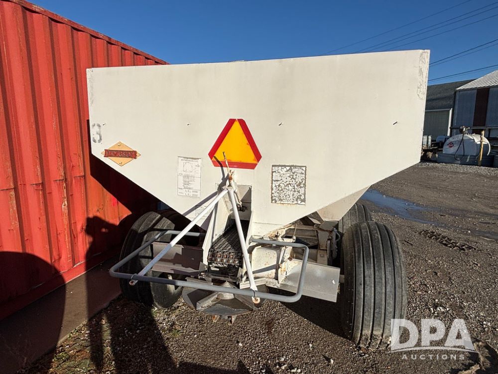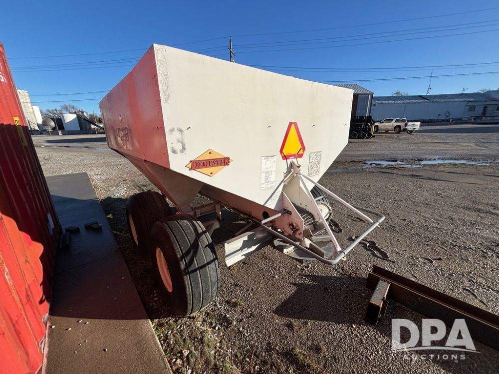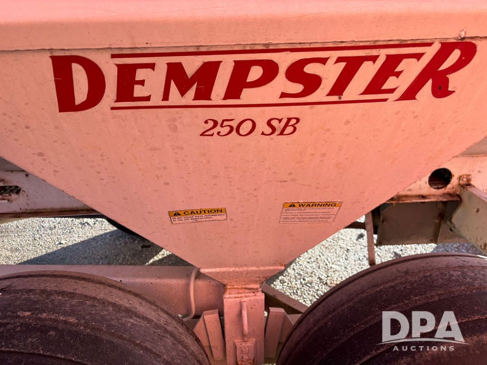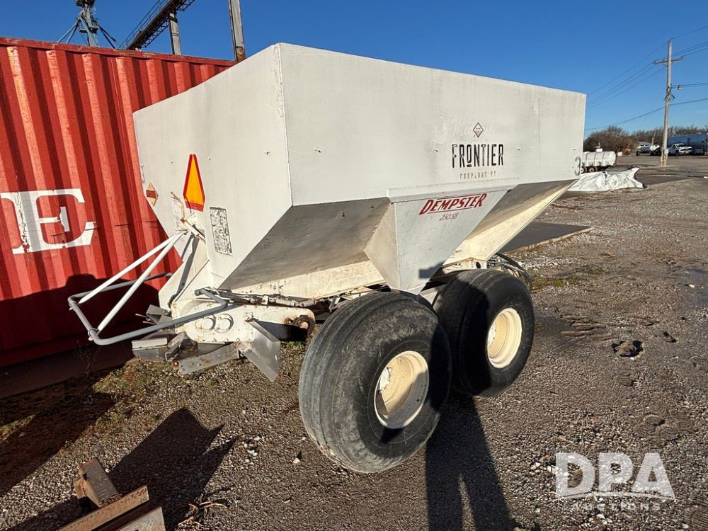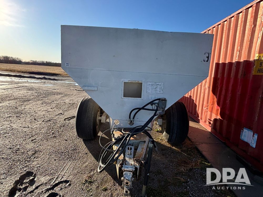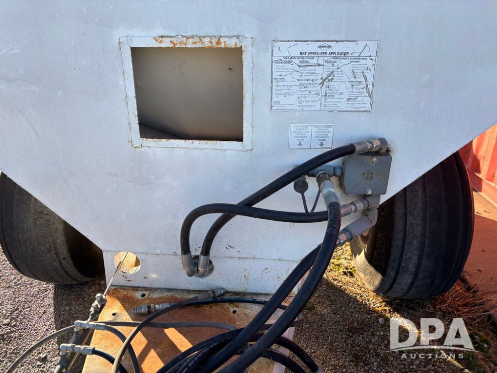 Dempster Dry Spreader (GP12398, Unit 3), Dempster model 250 SB stainless steel dry spreader, single spinner, tandem axle, 16.5L-16.1 flotation tires.