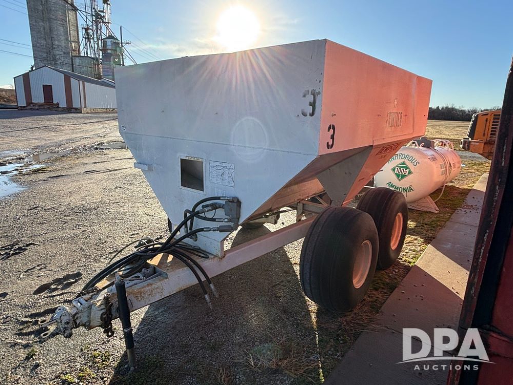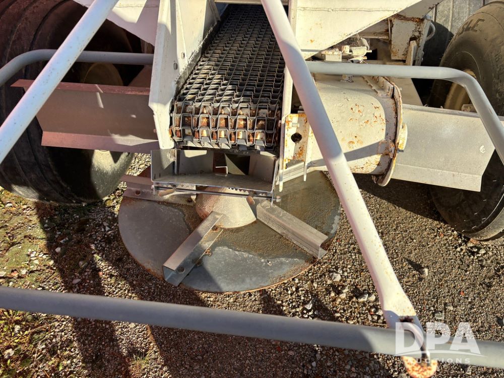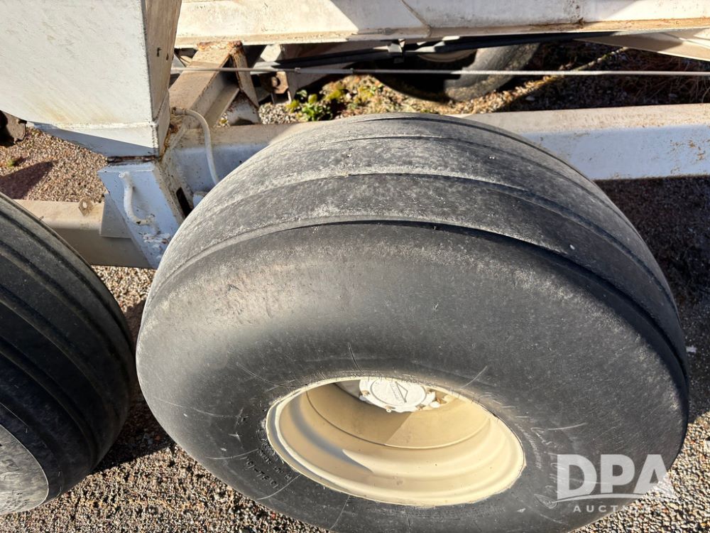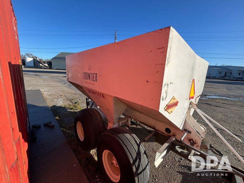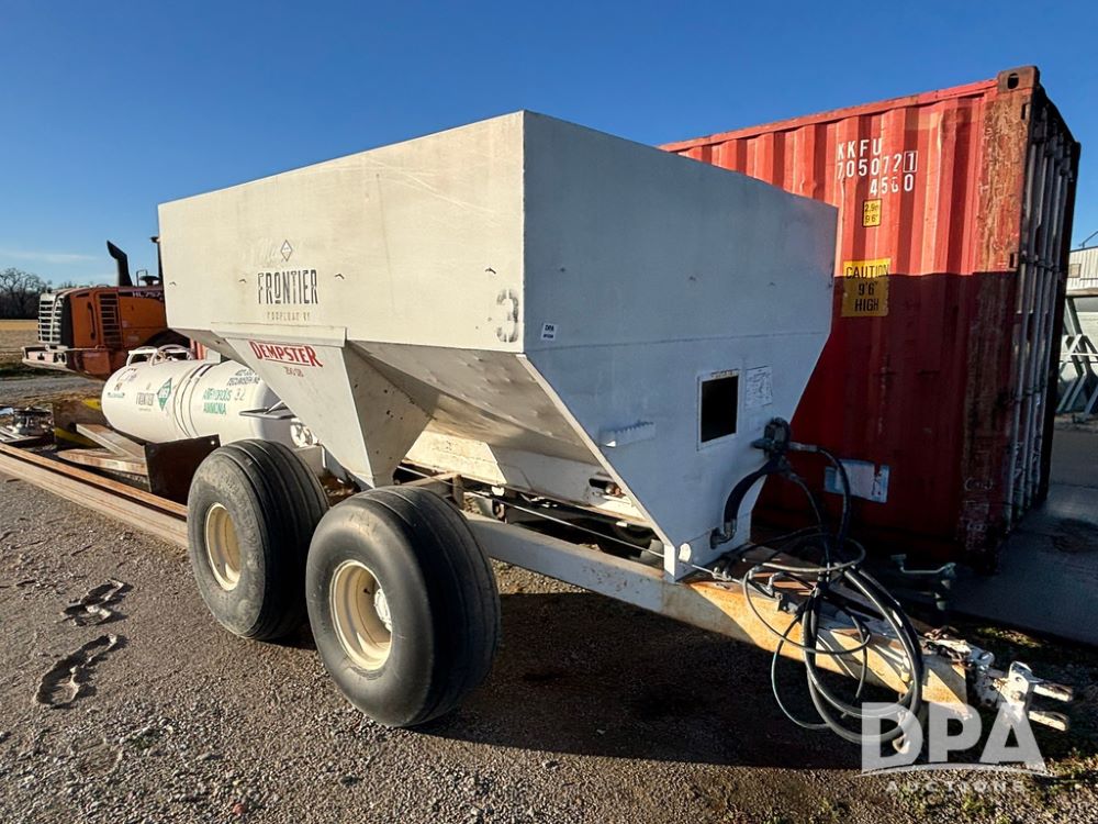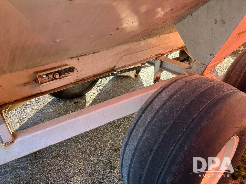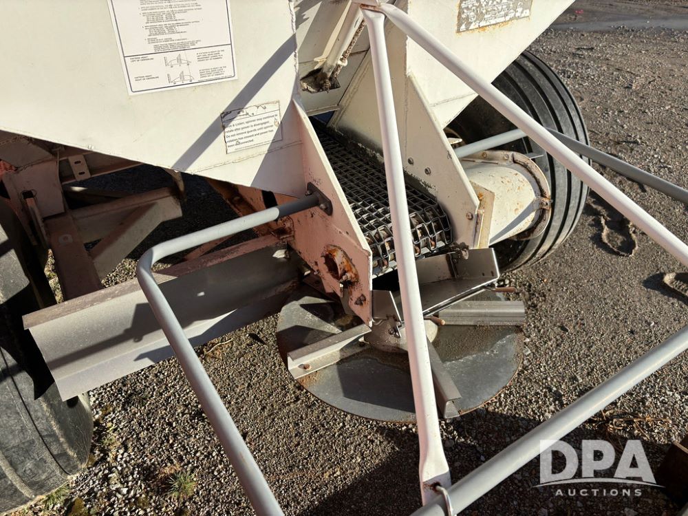 Dempster Dry Spreader (GP12398, Unit 3), Dempster model 250 SB stainless steel dry spreader, single spinner, tandem axle, 16.5L-16.1 flotation tires.