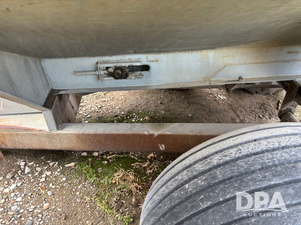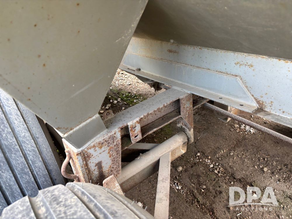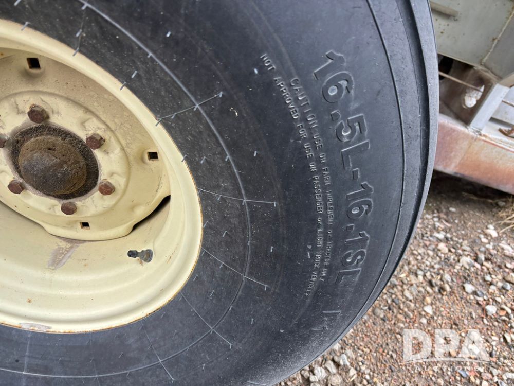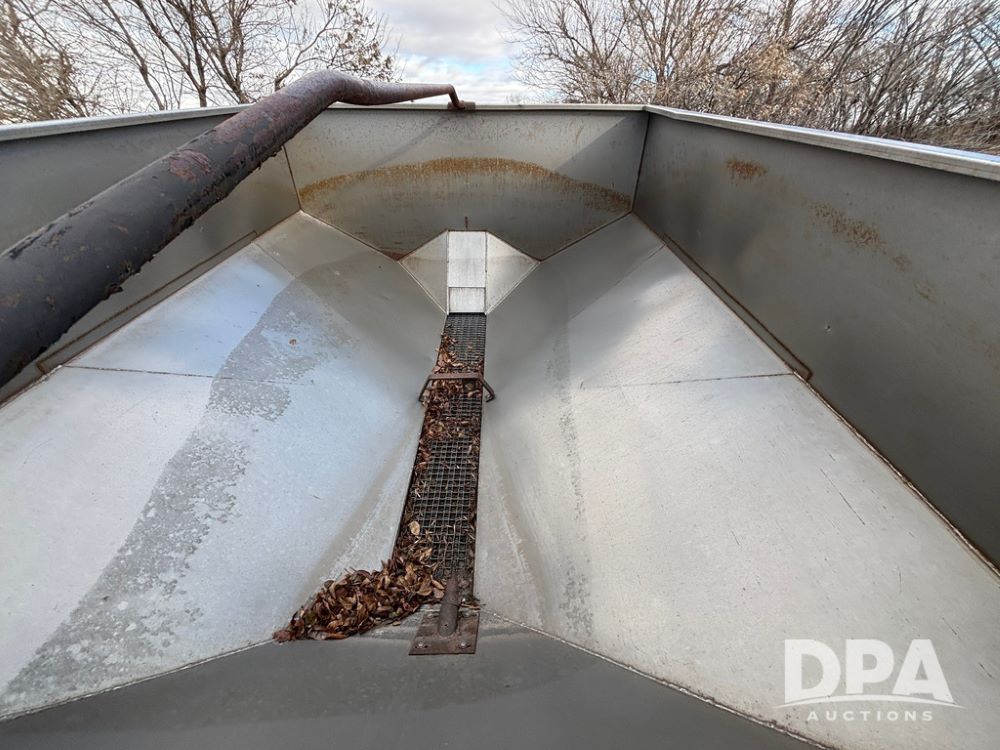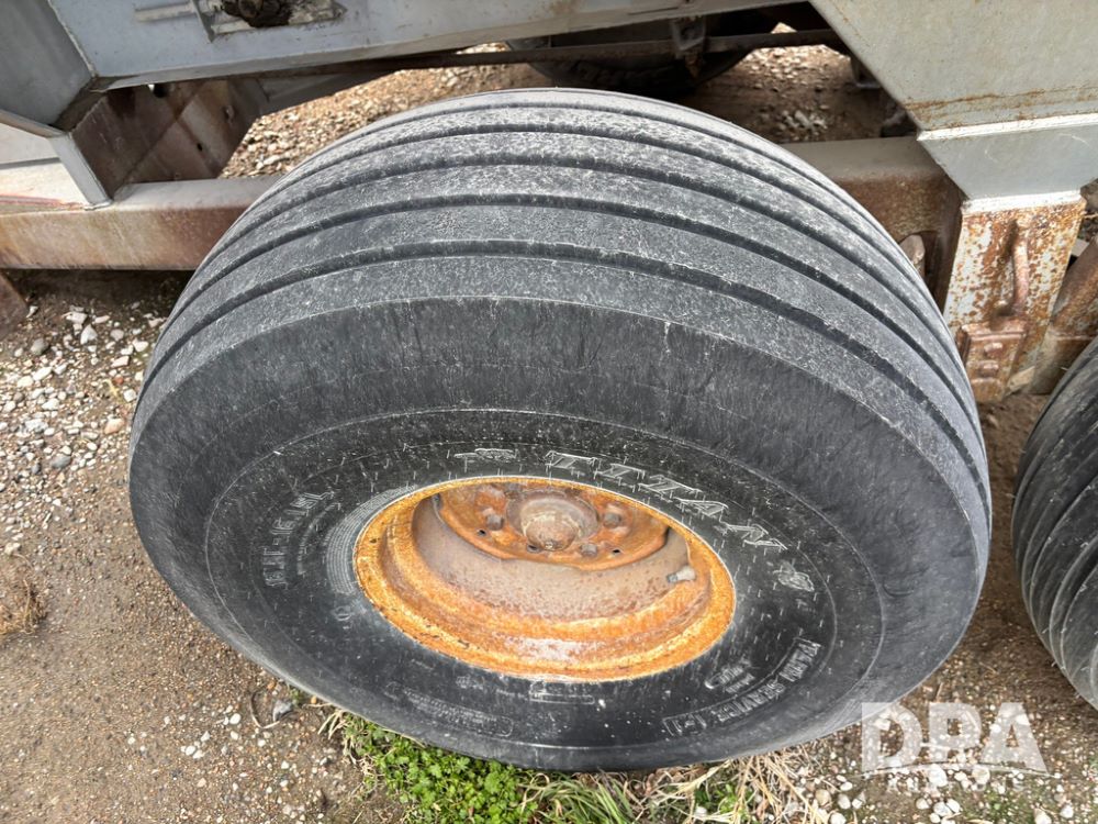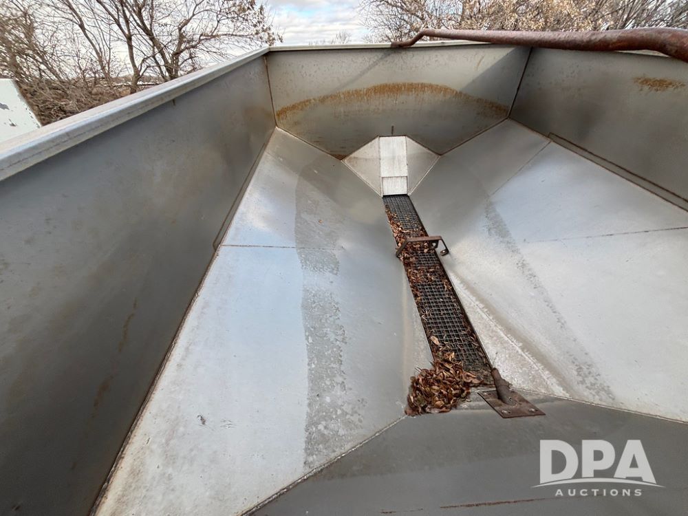 Dempster Dry Spreader (GP12405, Unit 6), Dempster Clipper 200S stainless steel dry spreader, single spinner, tandem axle, 16.5L-16.1 flotation tires.