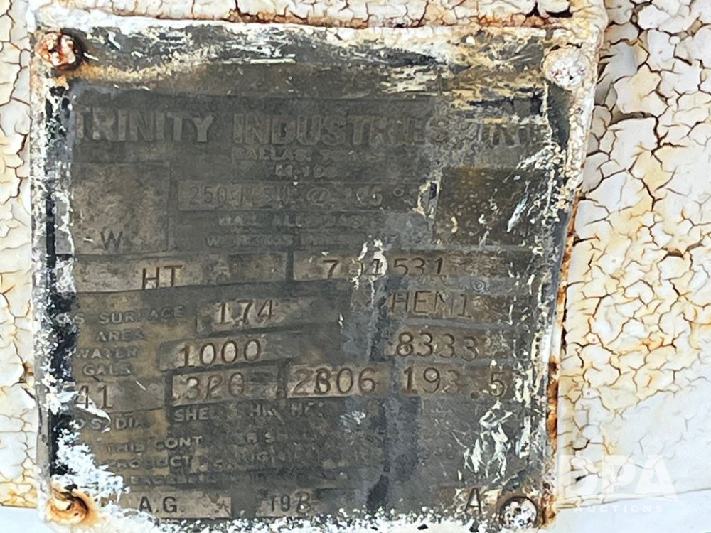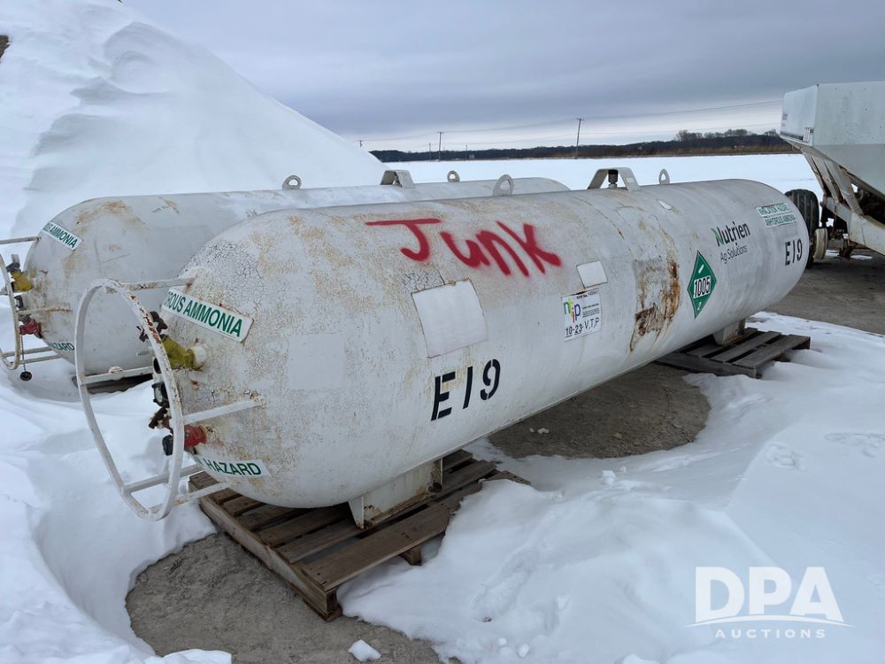 NH3 Nurse Tank (JN3896, Unit 71158), 1000 gallon NH3 nurse tank, front fill, data plate.