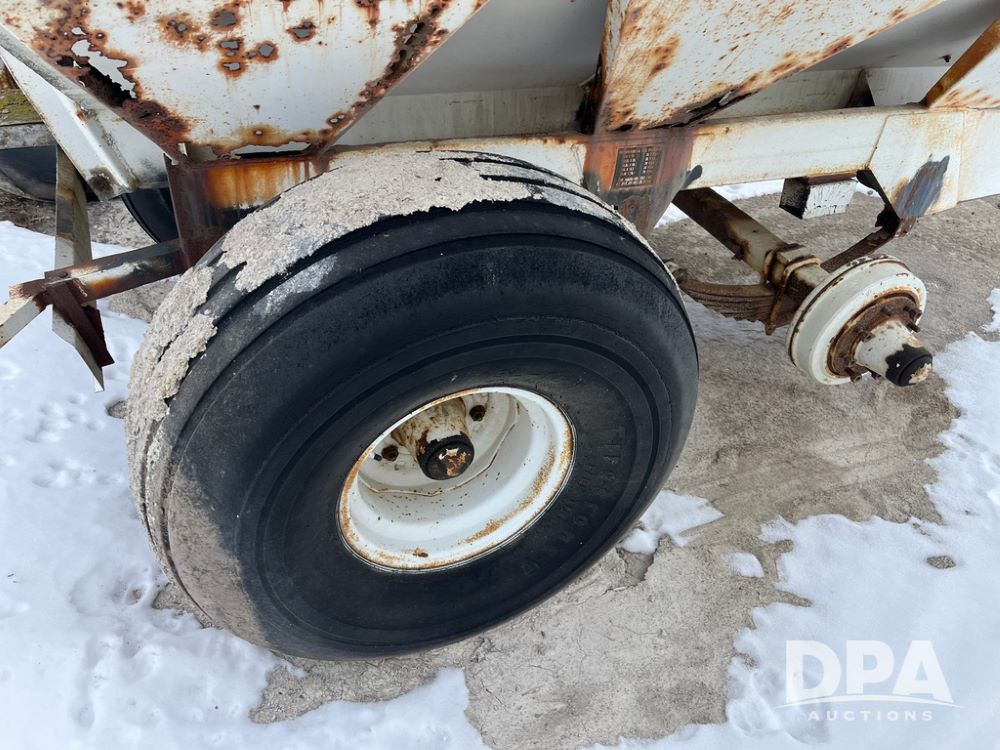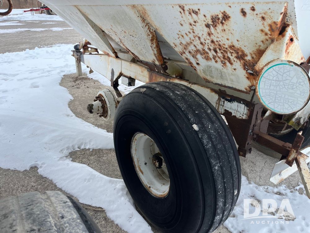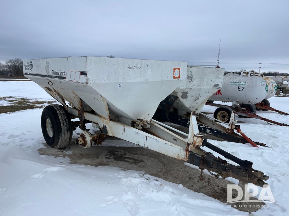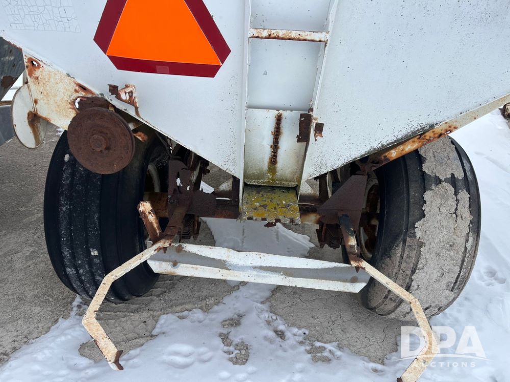 Willmar 600 Dry Spreader (JN3899, Unit 80502FA), Willmar 600 Narrow Track dry spreader, twin spinner, PTO, tandem axle, 19L-16.1 flotation tires.