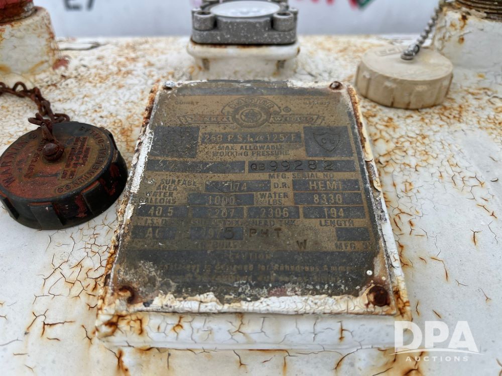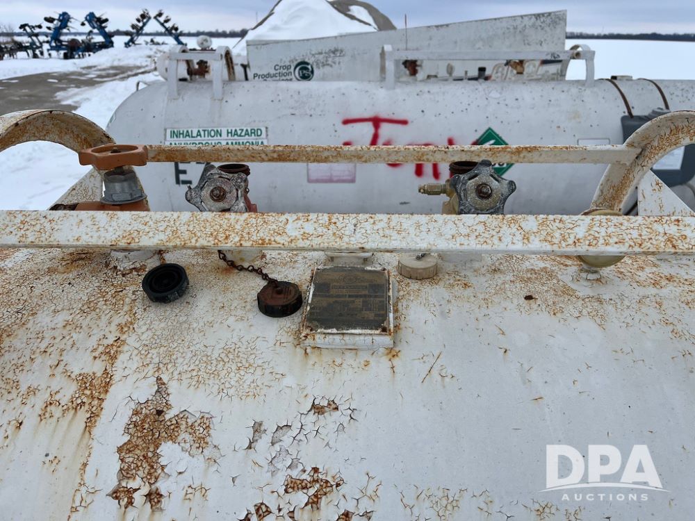 NH3 Nurse Tank (JN3902, Unit 71160), 1000 gallon NH3 nurse tank, front fill, data plate.