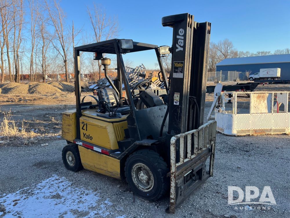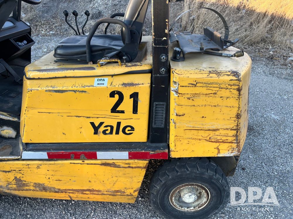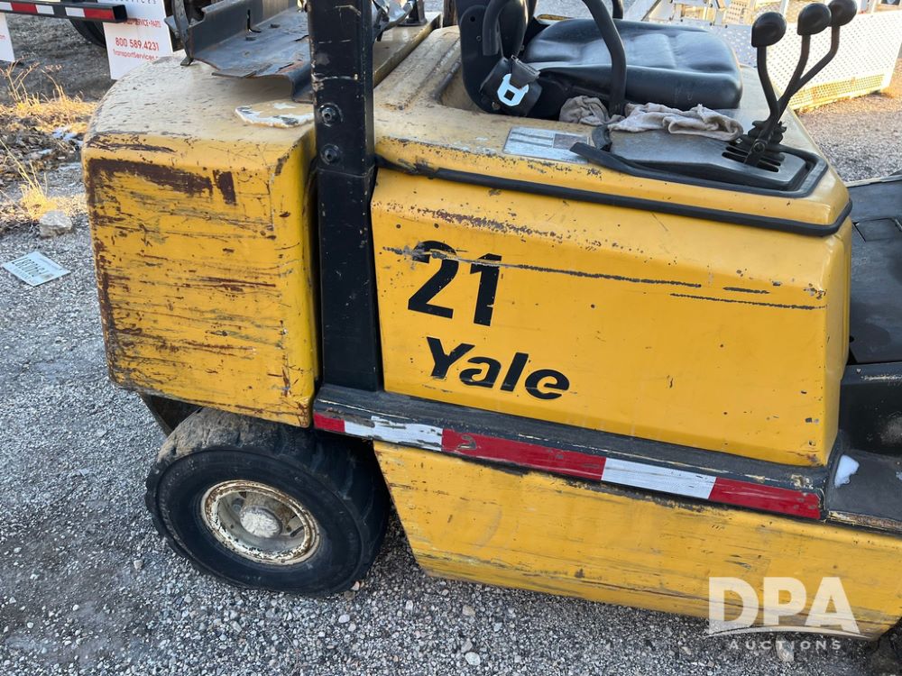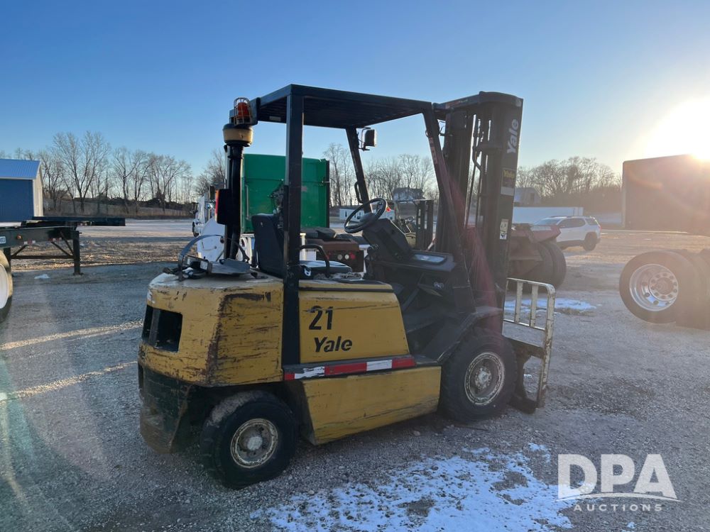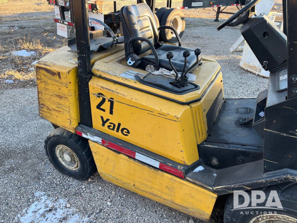 Yale Forklift (JN3916), Yale Model GLP050TGNUAE090 forklift, LP gas, shuttle shift, forks, side shift, 5,000 pound lift capacity, 7.00-12 front tires, shows 6,386 hours.