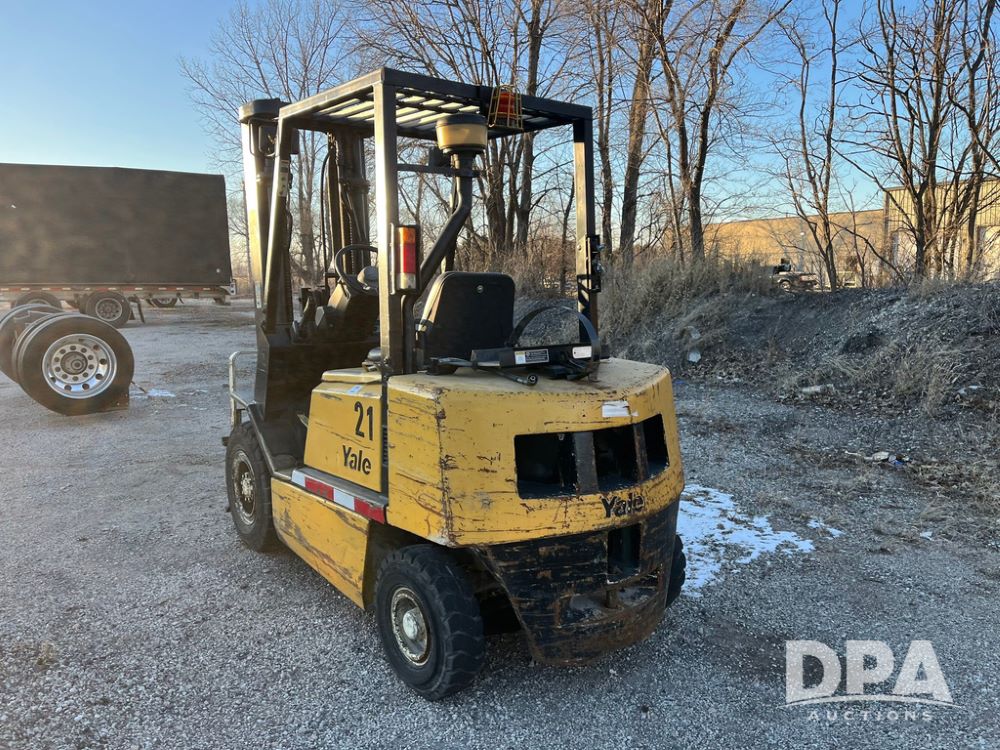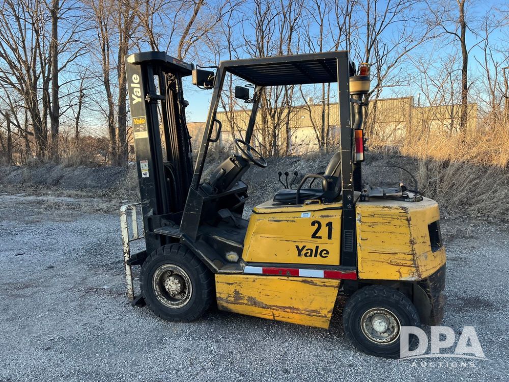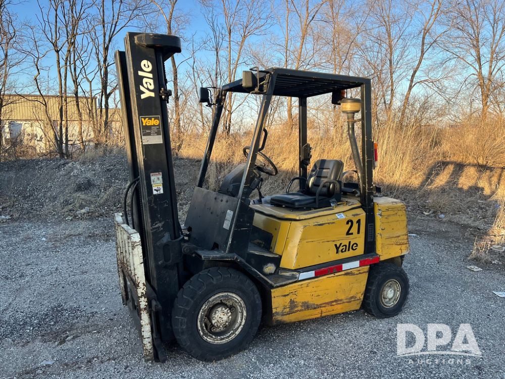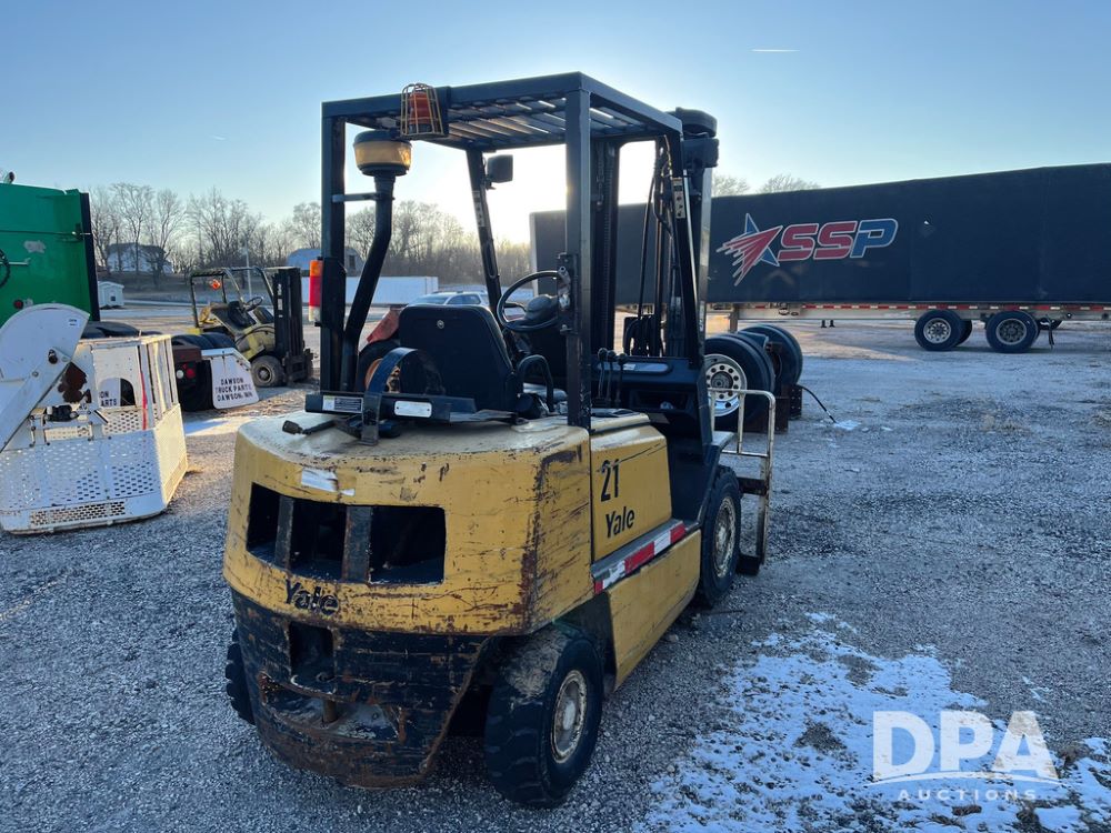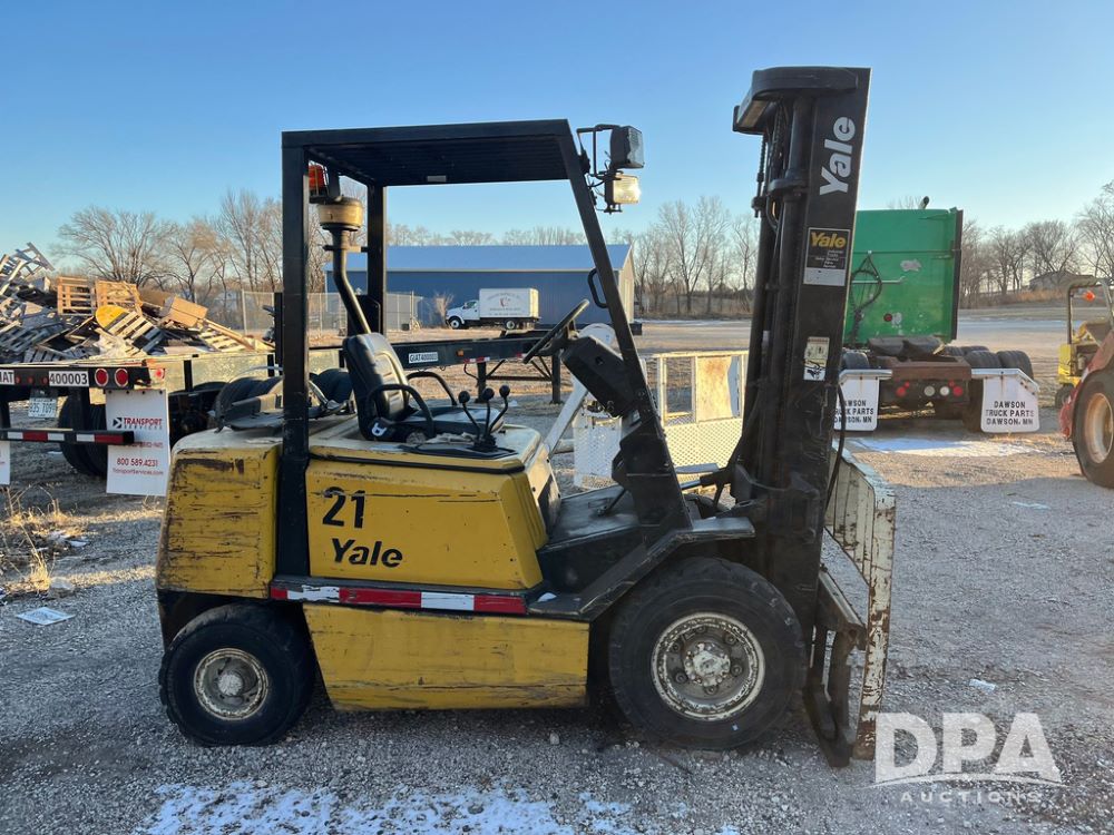 Yale Forklift (JN3916), Yale Model GLP050TGNUAE090 forklift, LP gas, shuttle shift, forks, side shift, 5,000 pound lift capacity, 7.00-12 front tires, shows 6,386 hours.