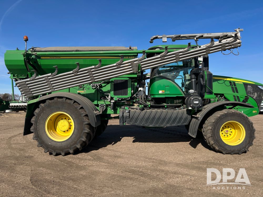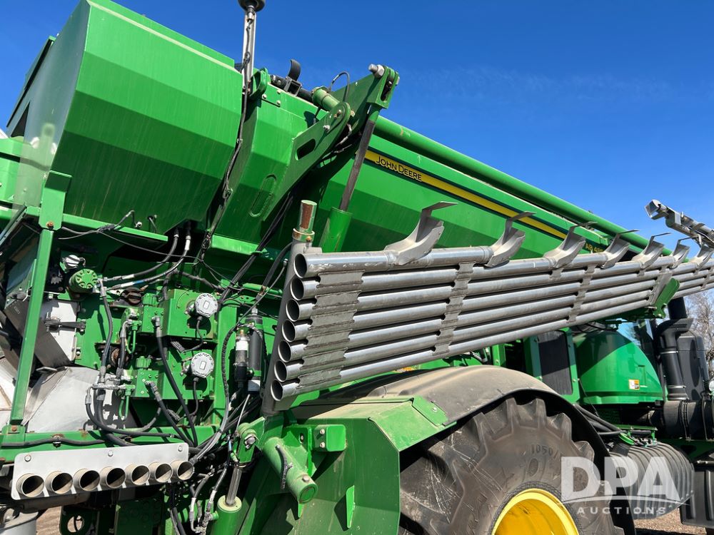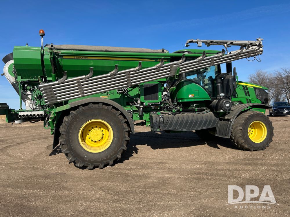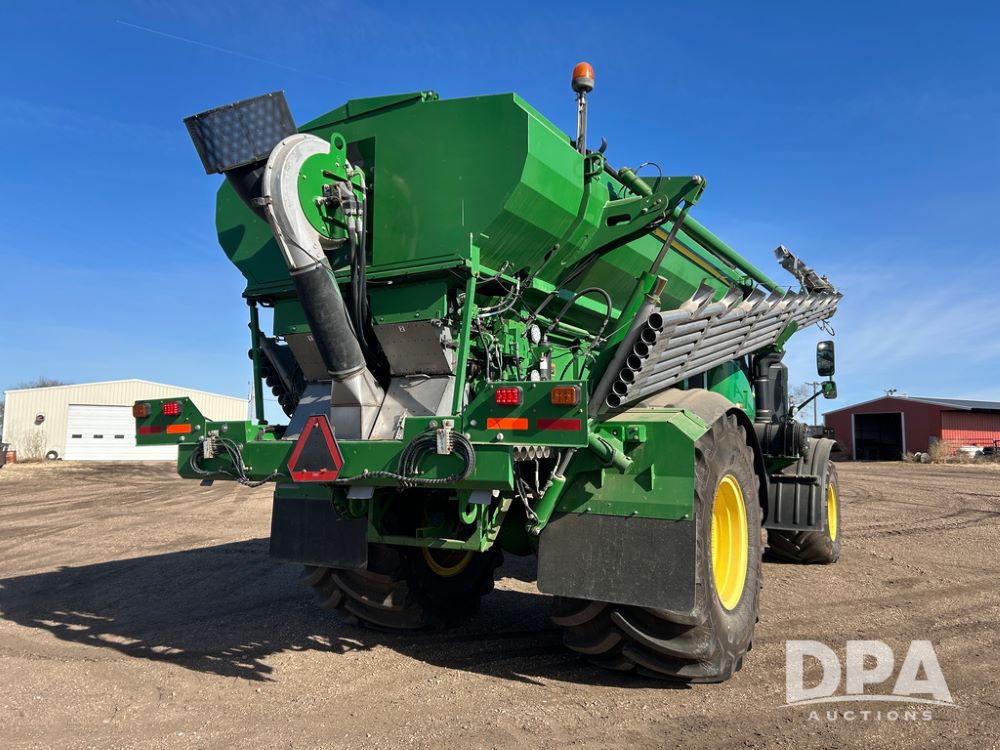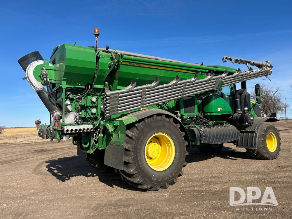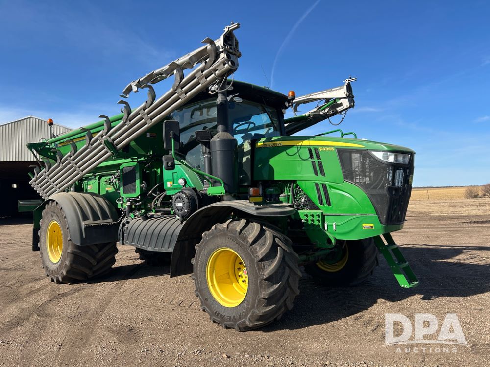 2018 John Deere F4365 Floater (CP1599), John Deere diesel engine, hydrostatic transmission, John Deere AB485 hydraulic dry air flow box, 3 Micro bin, 70 foot stainless steel boom, low rate fertilizer belt sensor, electric roll over tarp, Autotrac, row sense, section control, John Deere controls, buddy seat, AM/FM radio, cab heat/air conditioning, Goodyear floater tires, shows 2,804 hours.