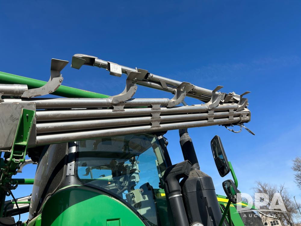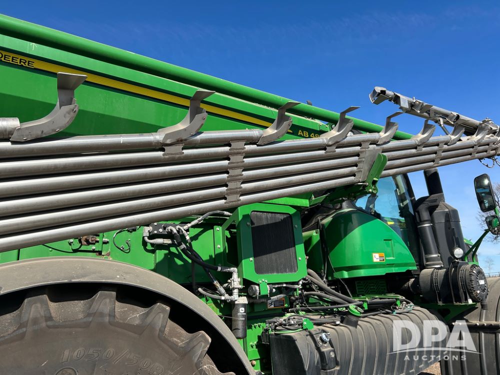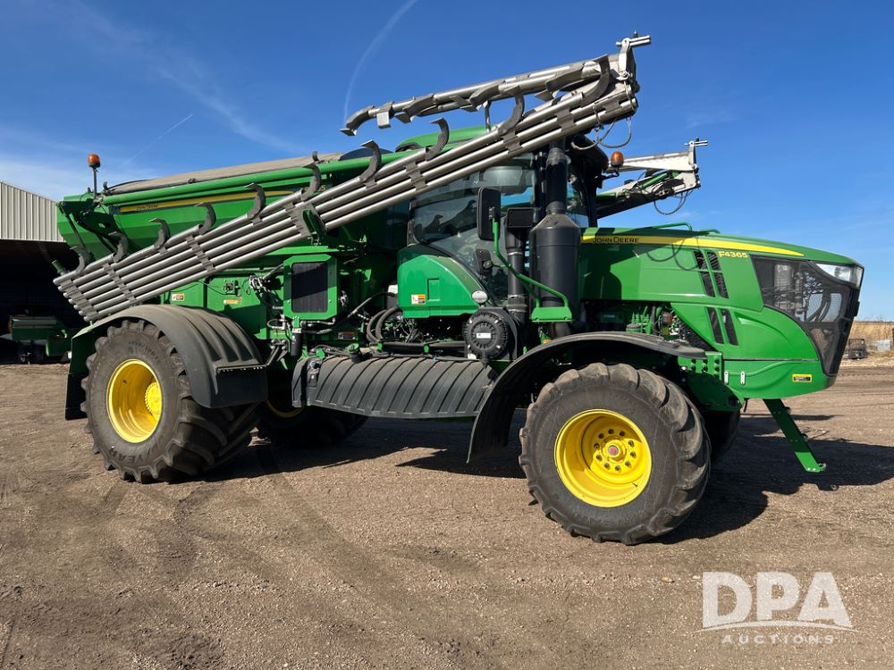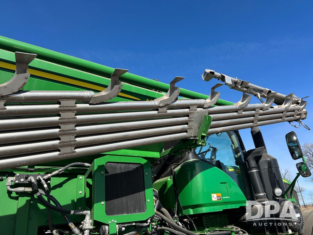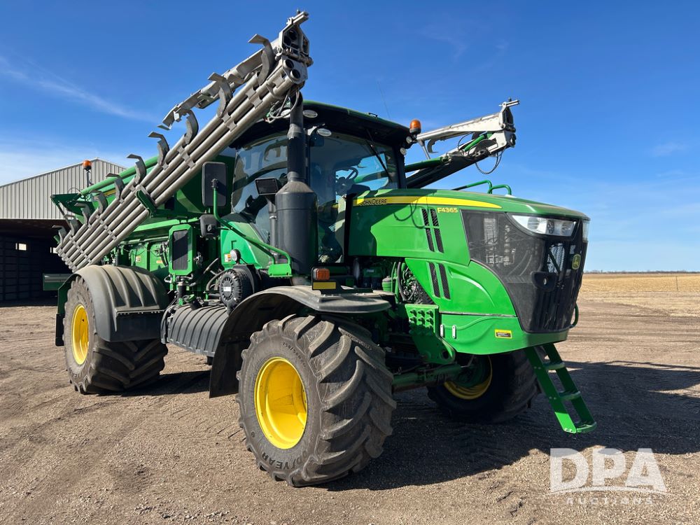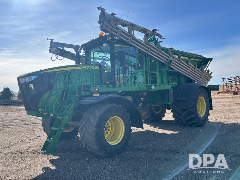 2018 John Deere F4365 Floater (CP1599), John Deere diesel engine, hydrostatic transmission, John Deere AB485 hydraulic dry air flow box, 3 Micro bin, 70 foot stainless steel boom, low rate fertilizer belt sensor, electric roll over tarp, Autotrac, row sense, section control, John Deere controls, buddy seat, AM/FM radio, cab heat/air conditioning, Goodyear floater tires, shows 2,804 hours.