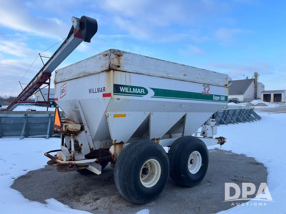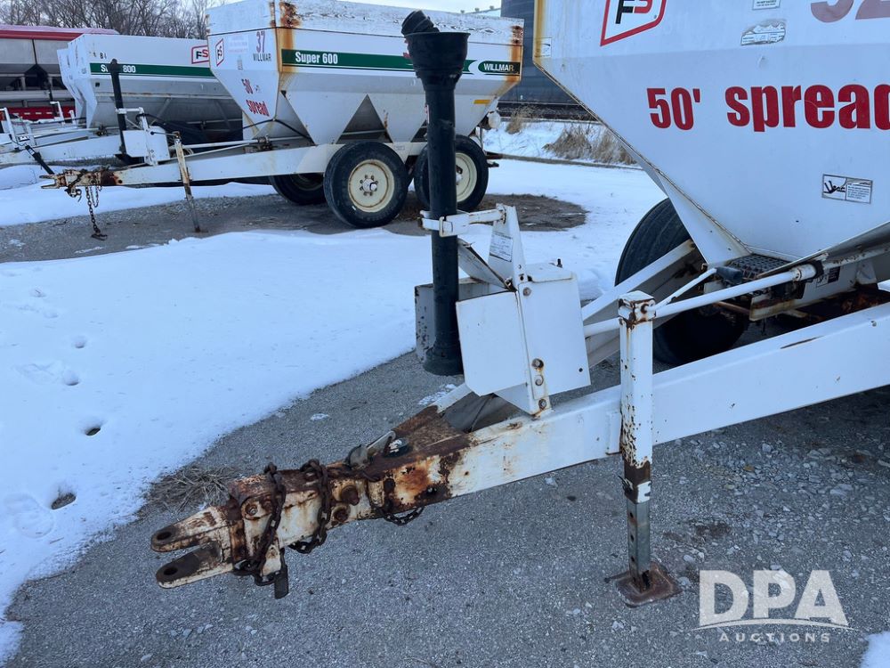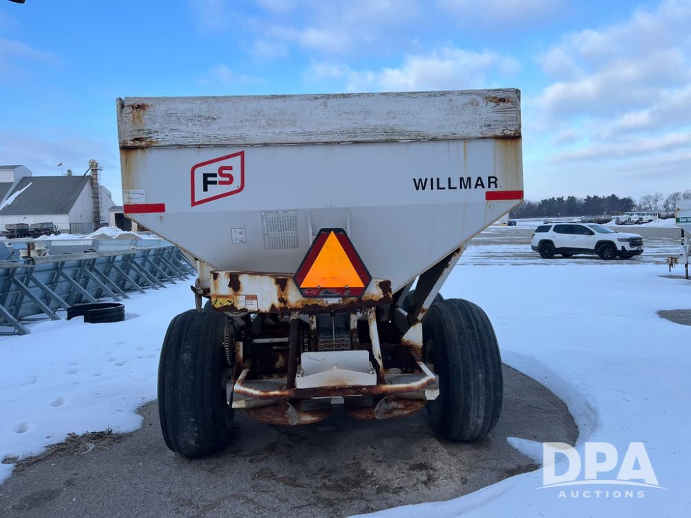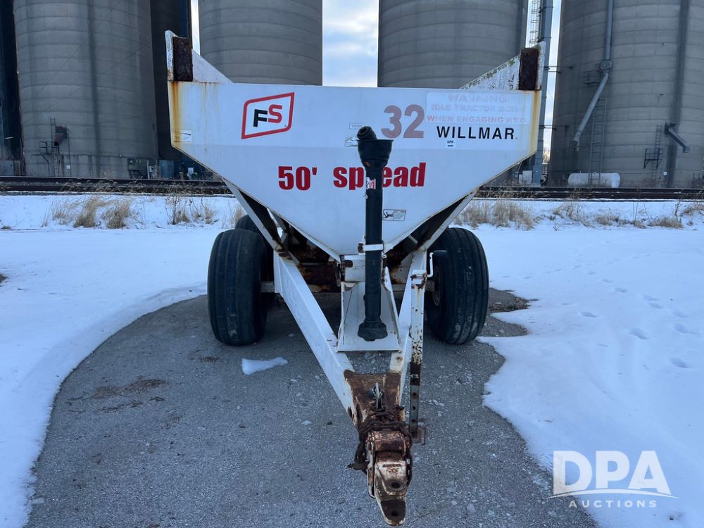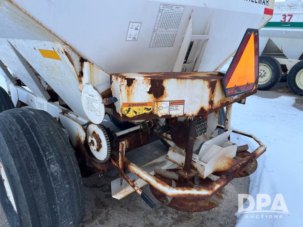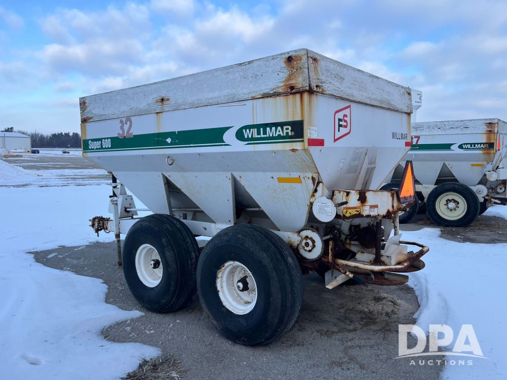 Willmar Super 600 Dry Spreader (JN3884, Unit 32), Willmar Super 600 dry spreader, twin spinner, PTO, tandem axle, 16.5L-16.1SL flotation tires.