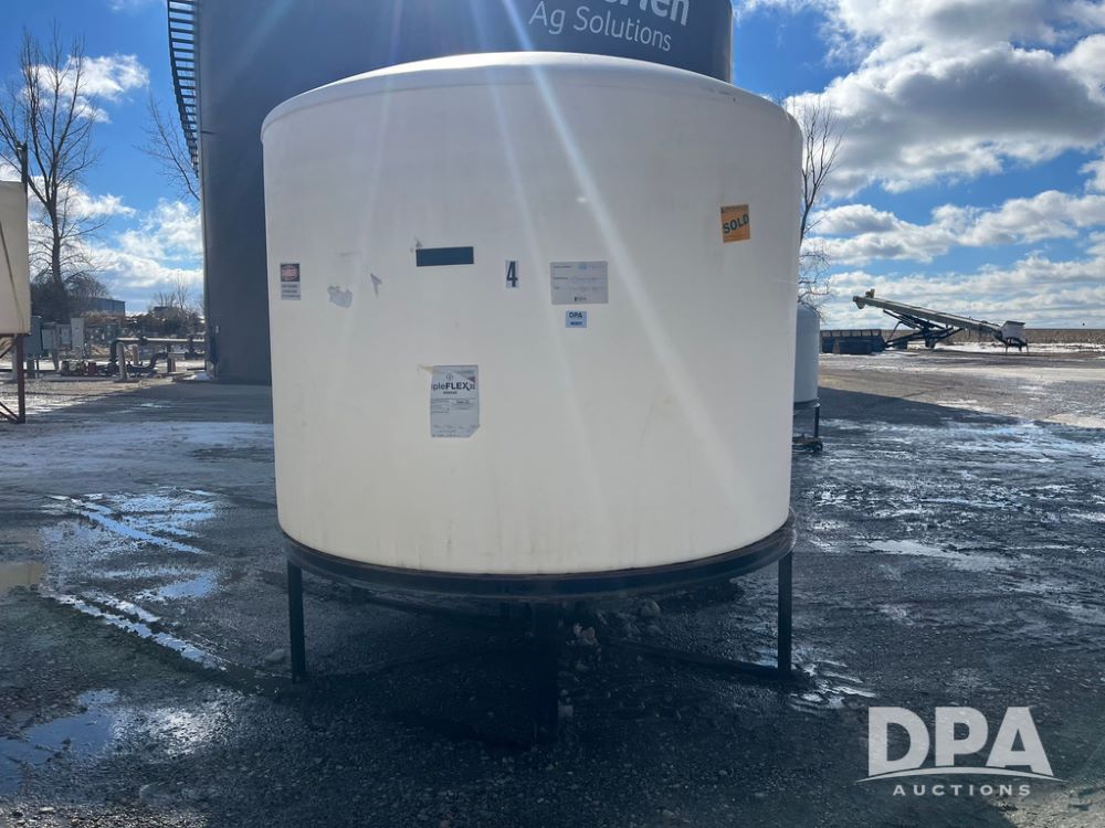 Ace Roto-Mold Poly Liquid Tank (JN3921, Unit 4), Ace Roto-Mold approx. 1,550 gallon poly cone bottom tank, steel stand.