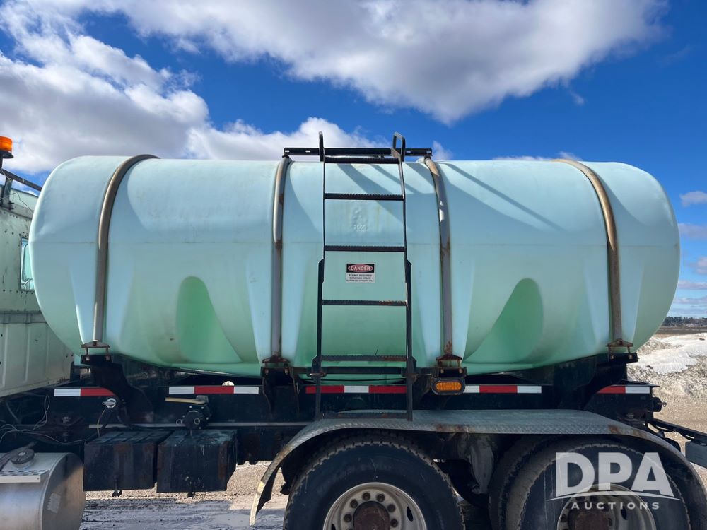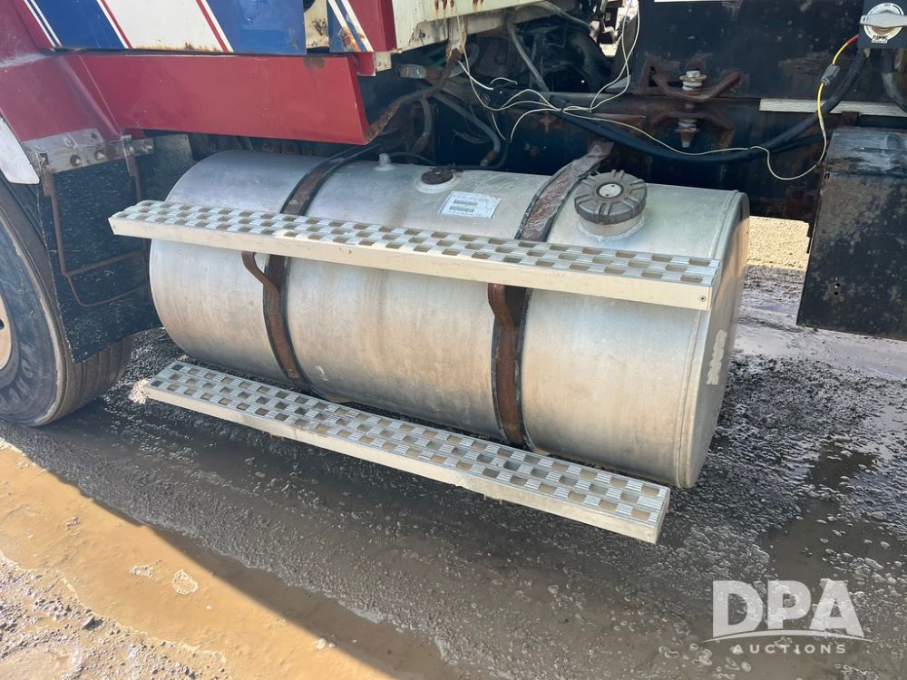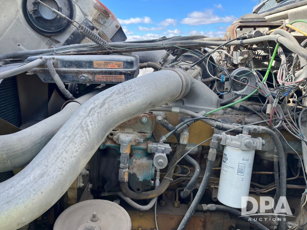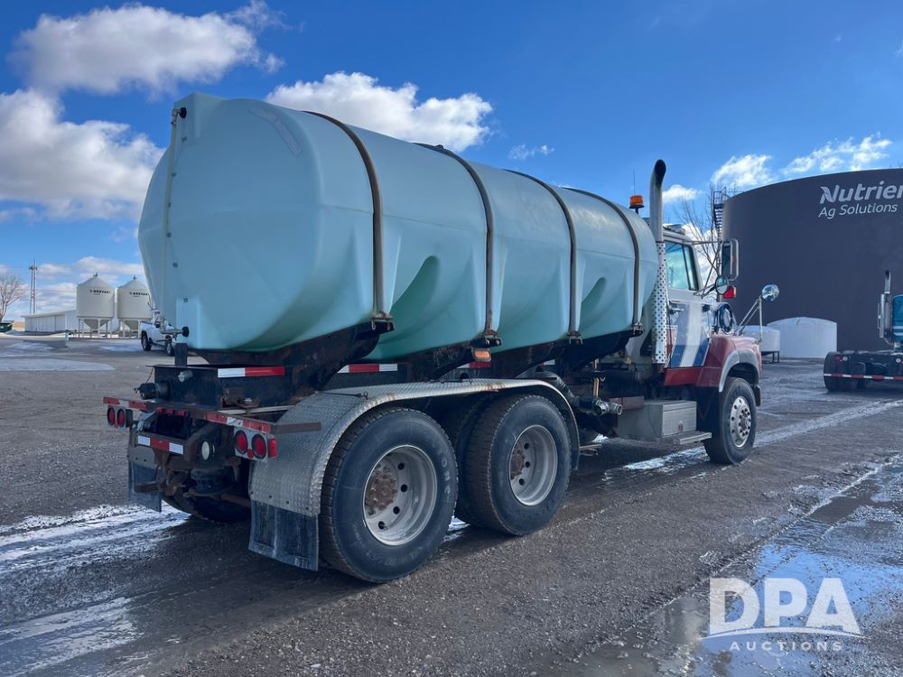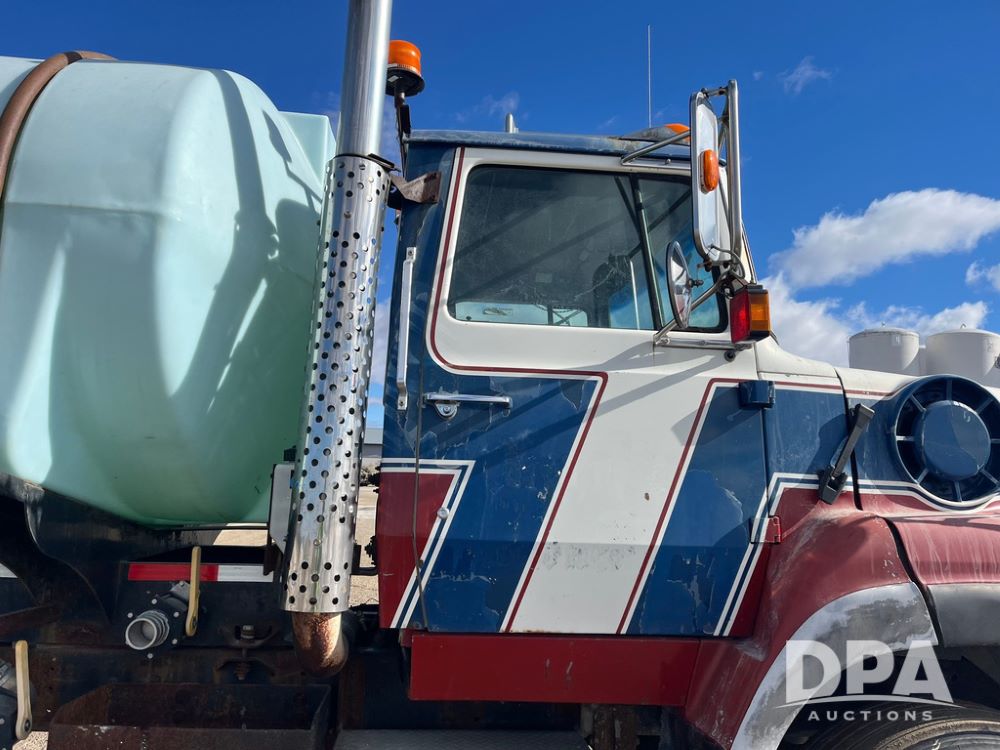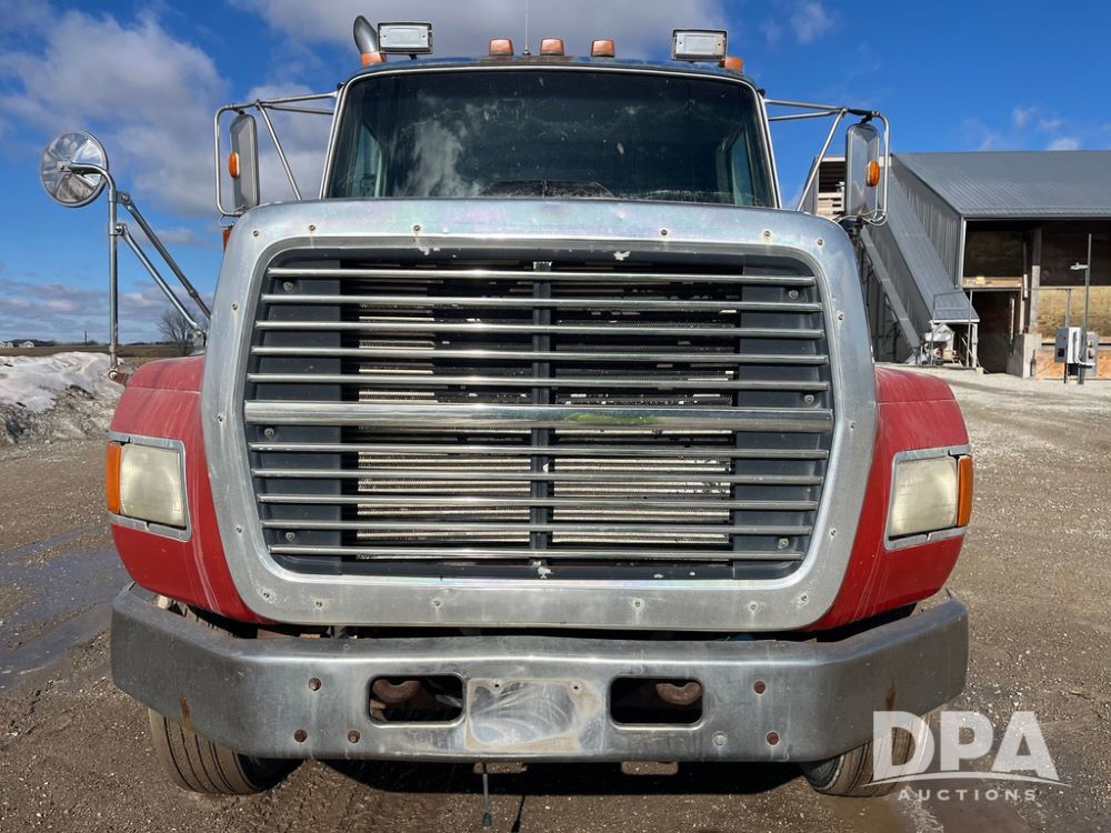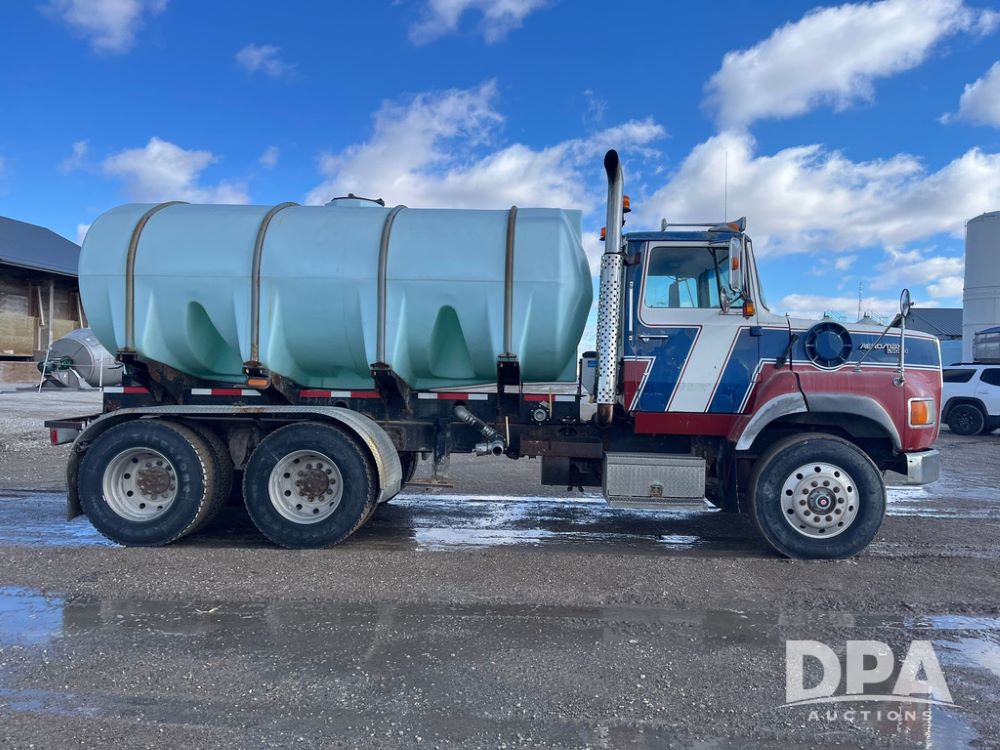 1990 Ford Aeromax L9000 Liquid Nurse Truck (JN3927, Unit 33436), Cat diesel engine, 13 speed transmission, air conditioning, heat, Am/Fm radio, tandem axle, full screw, air ride suspension, 3,000 gallon poly liquid nurse tank, ladder, 11R22.5 tires, aluminum rims, rear fenders.