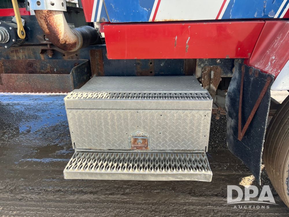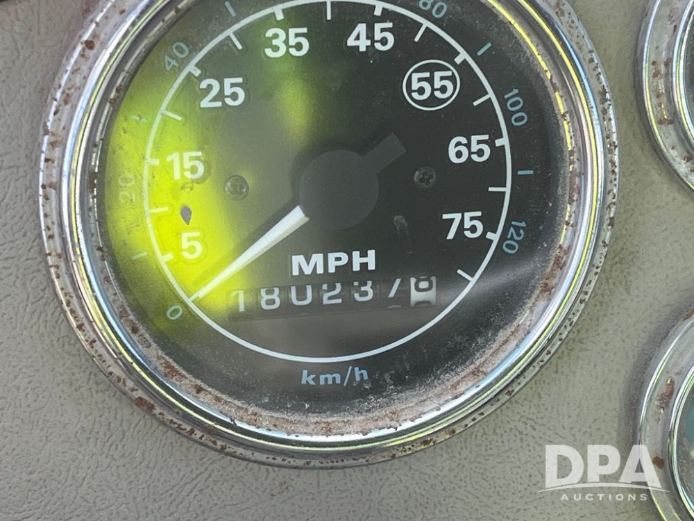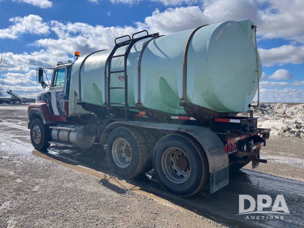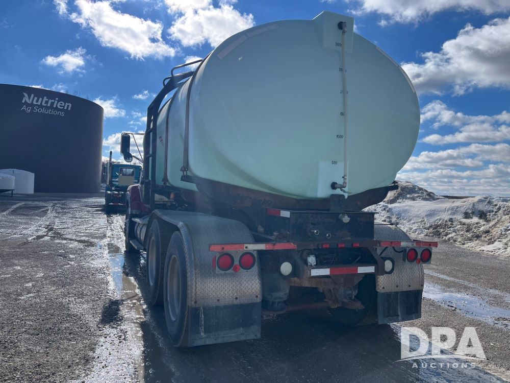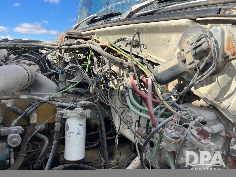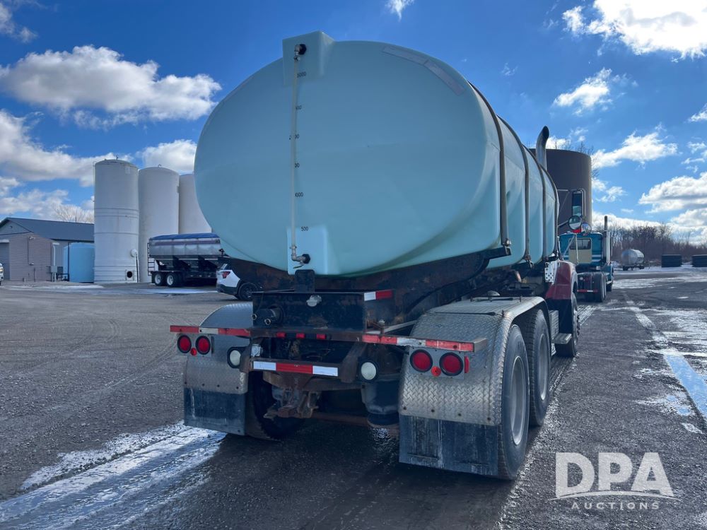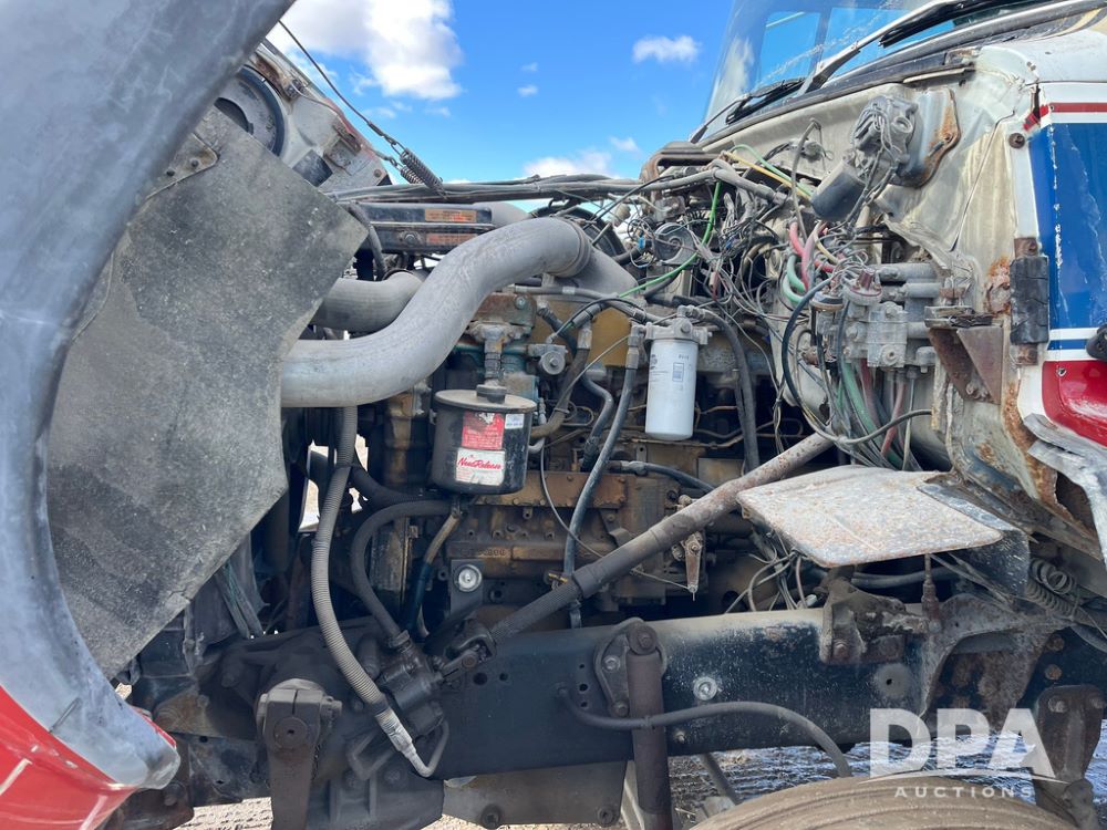 1990 Ford Aeromax L9000 Liquid Nurse Truck (JN3927, Unit 33436), Cat diesel engine, 13 speed transmission, air conditioning, heat, Am/Fm radio, tandem axle, full screw, air ride suspension, 3,000 gallon poly liquid nurse tank, ladder, 11R22.5 tires, aluminum rims, rear fenders.