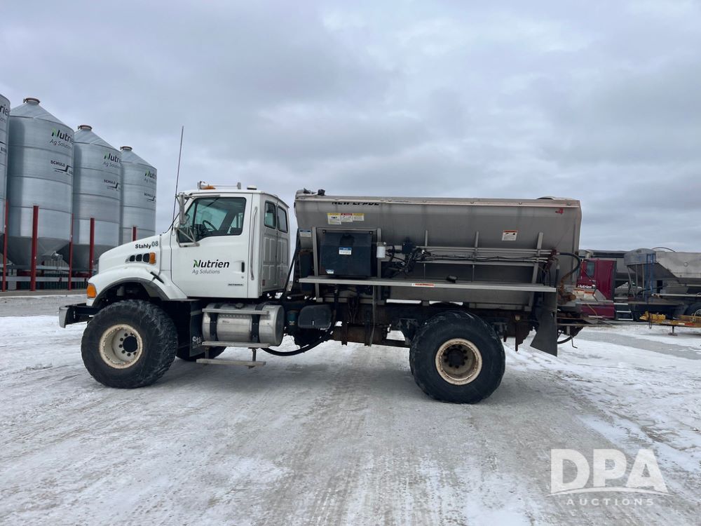 2008 Sterling Acterra Dry Floater (JN3871, Unit 129421), Cummins diesel engine, Allison automatic transmission, air conditioning, heat, Am/Fm radio, cruise control, New Leader L3020 G4 12' stainless steel dry spreader box (S/N 131223), twins spinner, all hydraulic, roll over tarp, Alliance 48x25.00-20 front tires, Alliance 48x31.00-20 rear tires, Raven SCS660 monitor, Raven CR7, shows 101,375 miles.