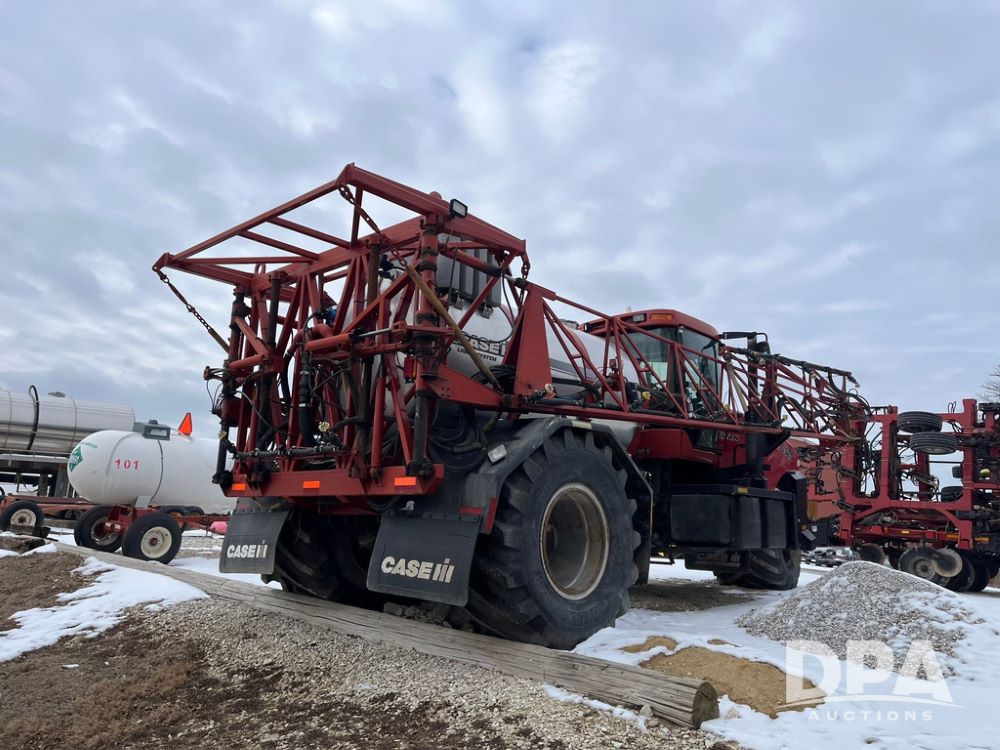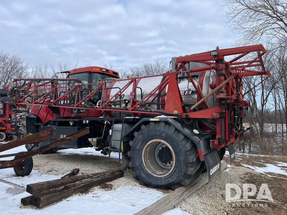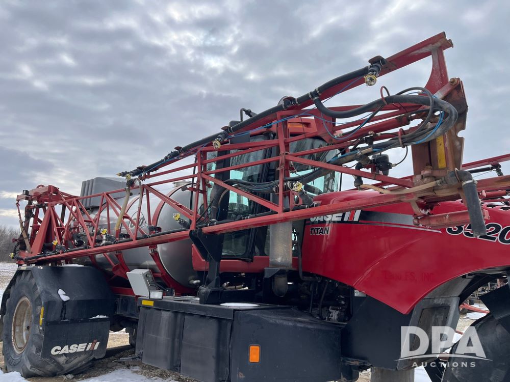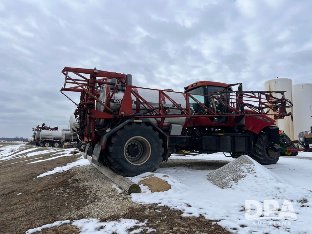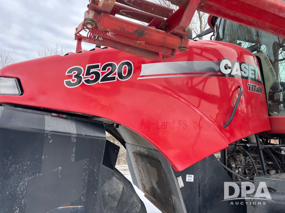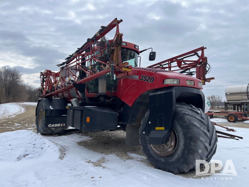 2007 CaseIH Titan 3520 Liquid Floater (JN3874, Unit 129423), diesel engine, Allison automatic transmission, air conditioning, heat, Am/Fm CD radio, cruise control, buddy seat, CaseIH 610 2000 gallon stainless steel liquid system (S/N YAT027487), 60/80' boom, foam marker, top poly rinse tank, stainless steel chemical inductor, Michelin Mega X Bib 1000/50R25 front tire, BKT Agri Max Teris 1050/50R32 rear tires, lightbar, Raven SmarTrax, Raven Viper Pro monitor, Raven SCS4600 monitor.