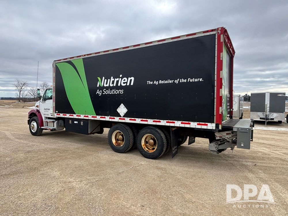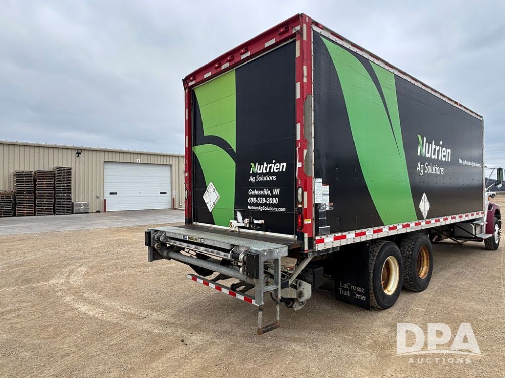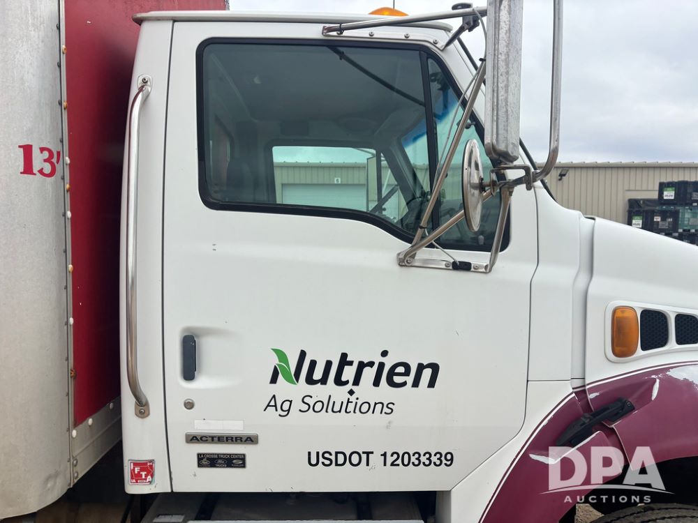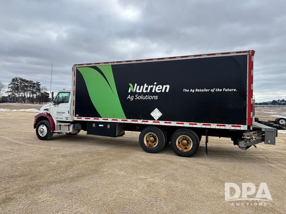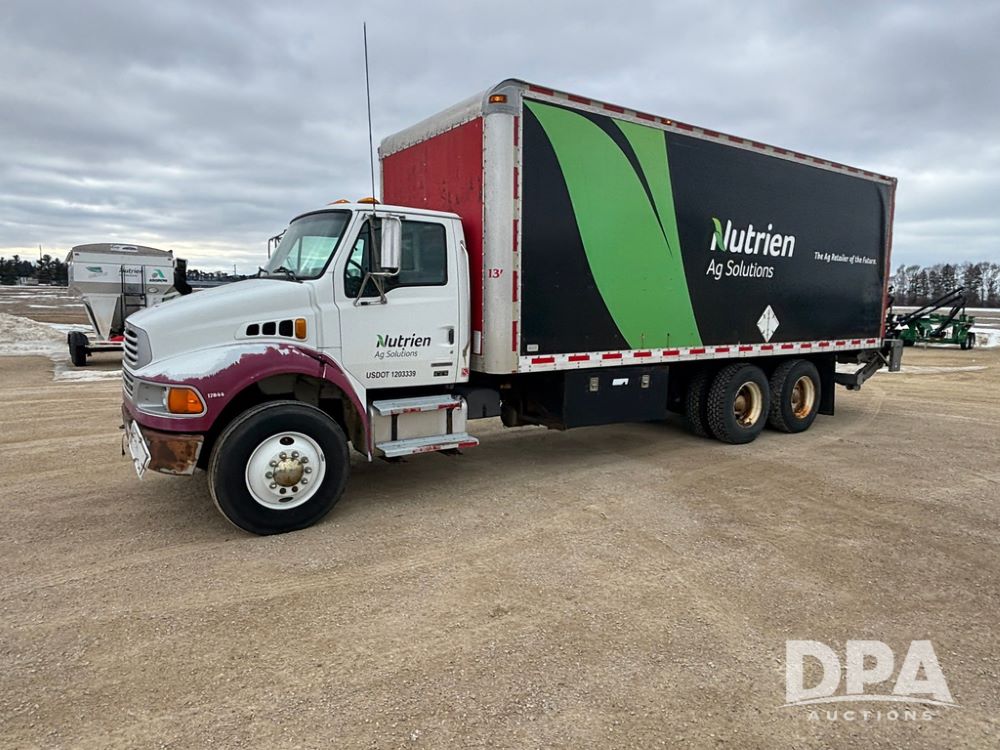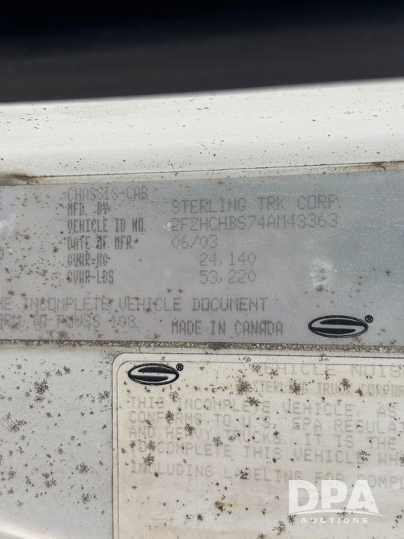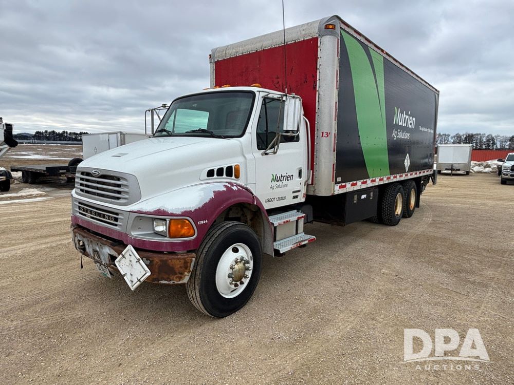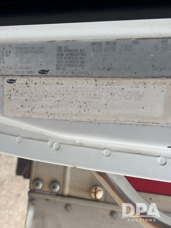 2004 Sterling Acterra Van Truck (GP12720, Unit 17844), Cummins diesel engine, Eaton Fuller 9 speed transmission, air conditioning, heat, Am/Fm radio, cruise control, tandem axle, air ride suspension, Van body, steel floor, translucent top, rear roll up door, Maxon lift gate (Lift gate is only 3 years old), 11R22.5 tires, shows 435,018 miles.