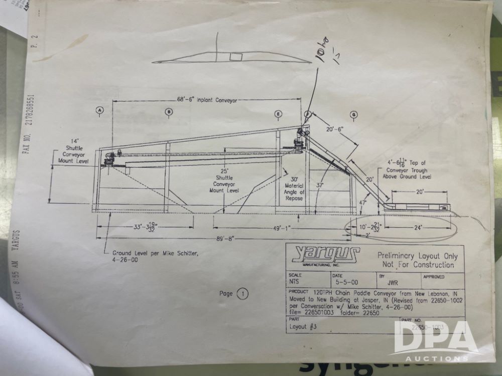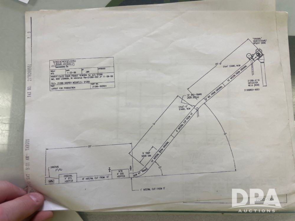 Yargus Drag Conveyor (PZ14404), Yargus approx. 60' stainless steel drag conveyor, electric motor.