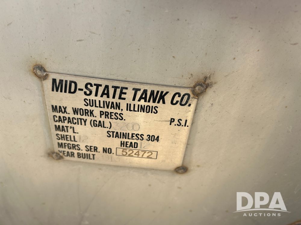 2013 Mid-State Tank Co. Stainless Steel Liquid Tank (CP1607), 2013 Mid-State Tank Co. conical liquid nurse tank (S/N 52472), 3,200 gallon capacity, 304 stainless steel, side ladder.