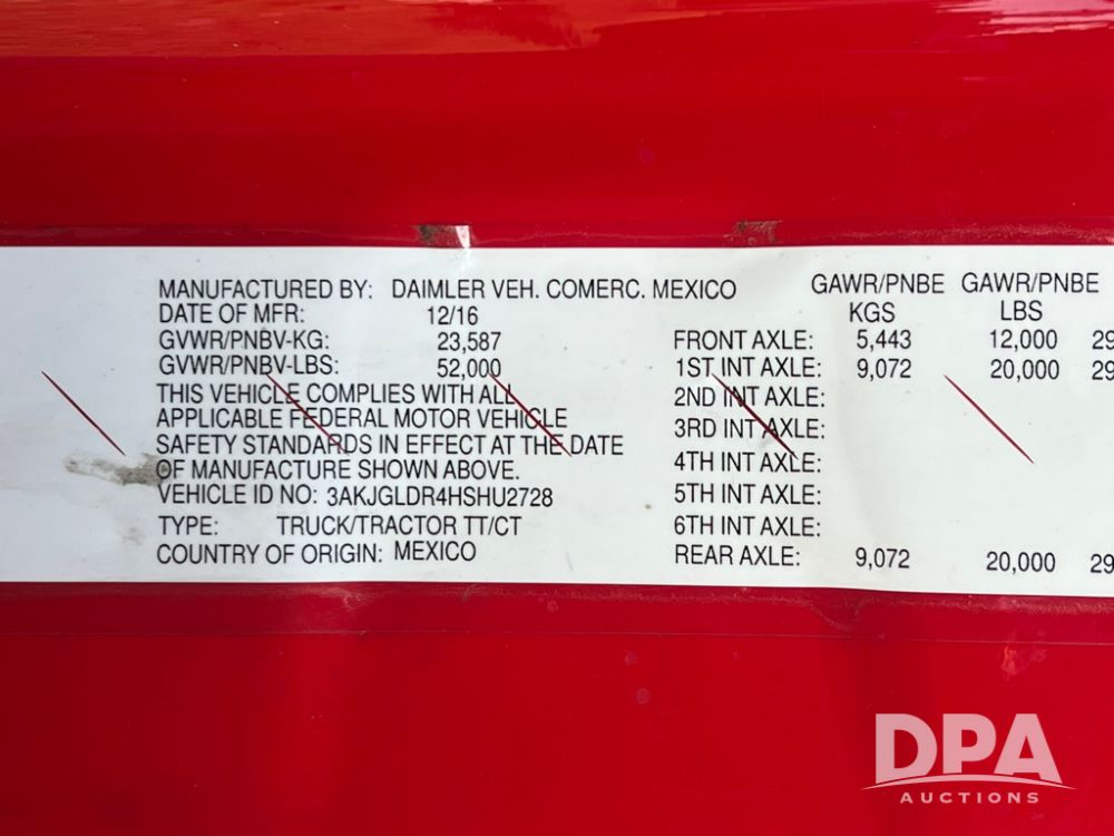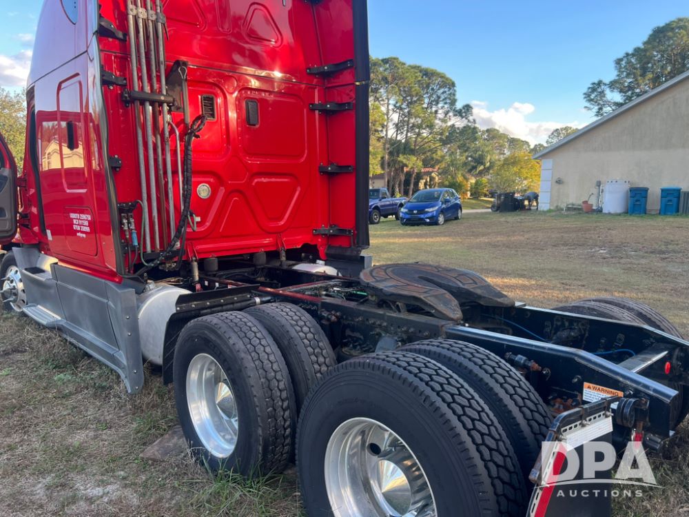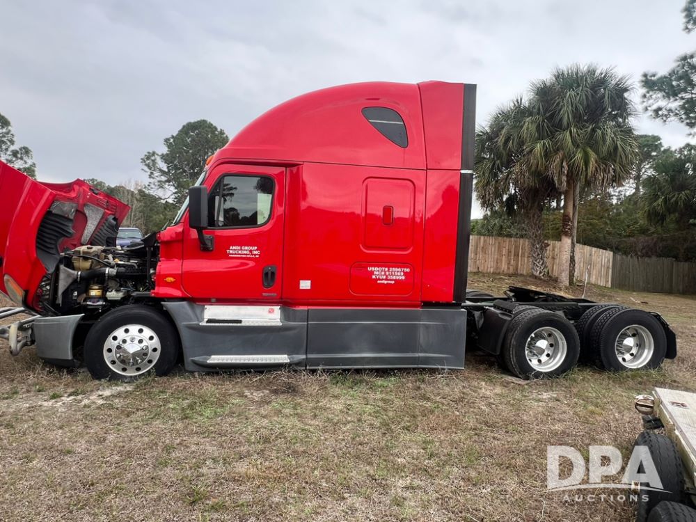 2017 Freightliner Cascadia Sleeper Cab Truck (LLD1635), Detroit diesel DD15 engine, grill guard, air slide 5th wheel, tandem axle, 3000 watt inverter, heat, air conditioning, 72 inch sleeper, microwave, fridge/freezer, radio, CD, CB radio, shows 1,113,647 miles.