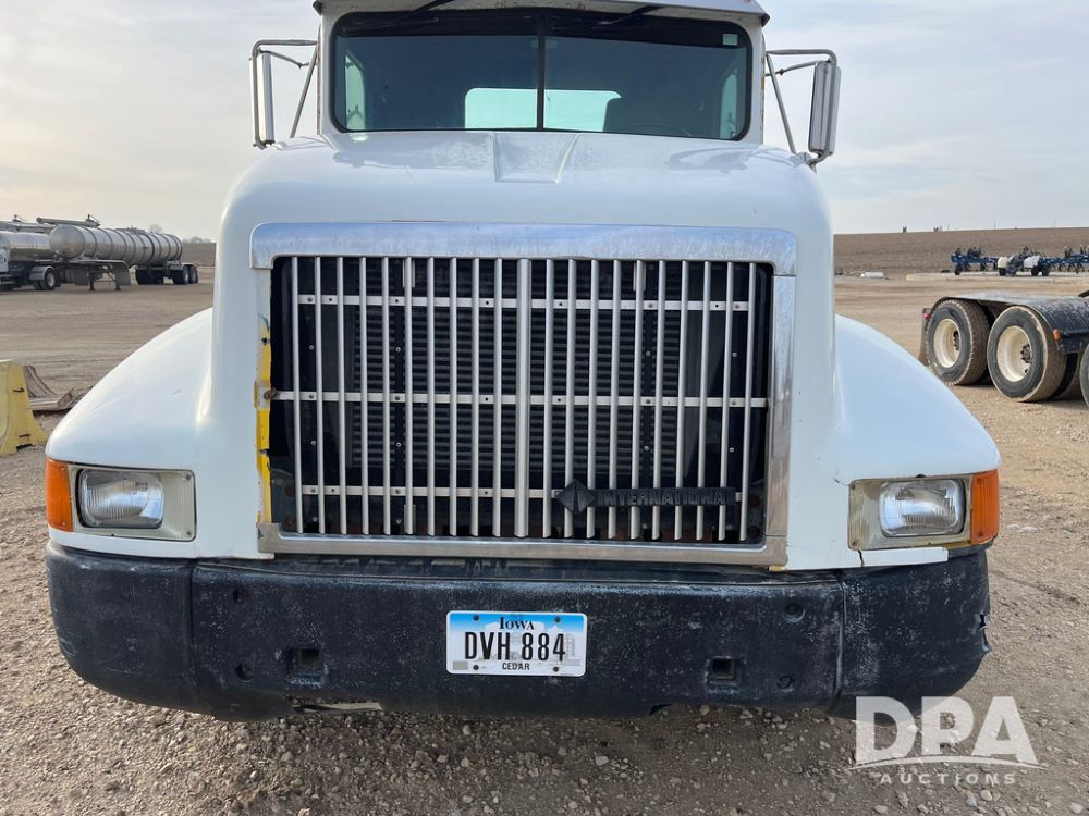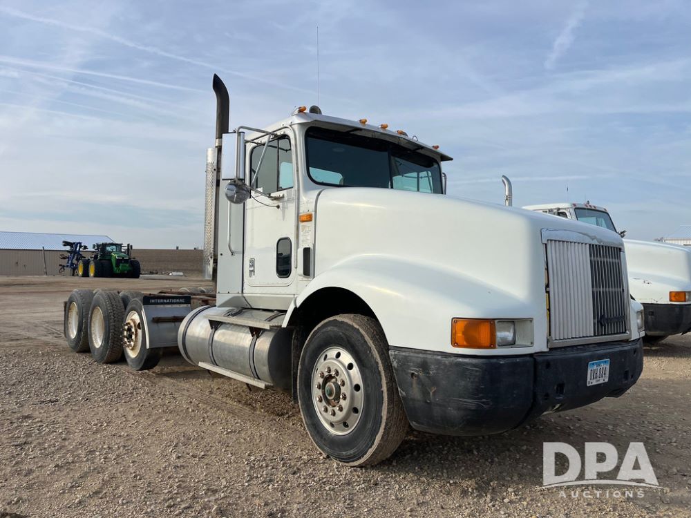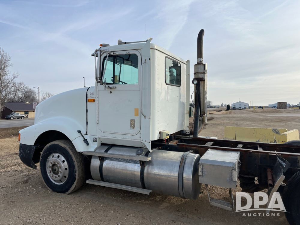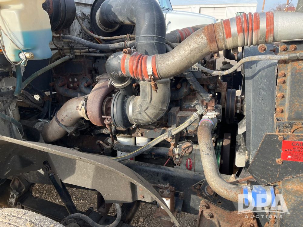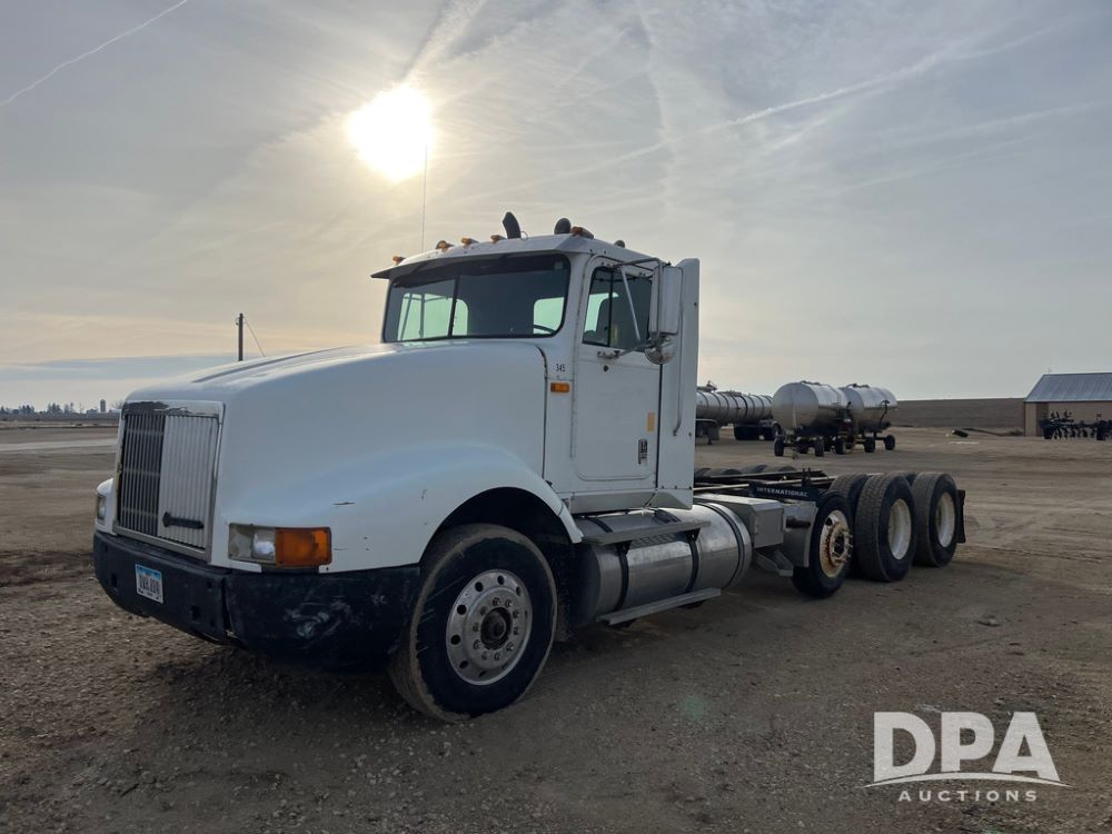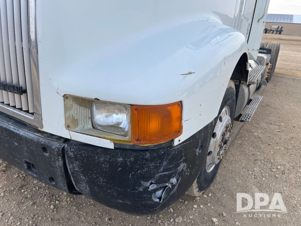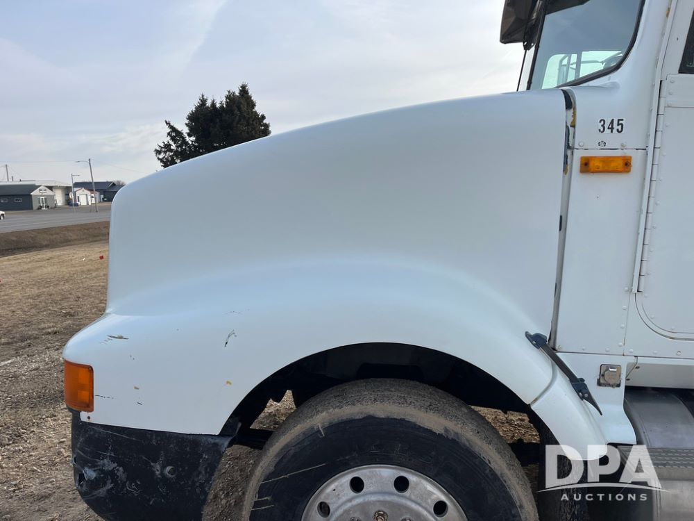1993 IHC 9400 Truck (JN3935, Unit 345), Cummins N14 diesel engine, Eaton Fuller 9 speed transmission, air conditioning, heat, Am/Fm radio, tandem axle, full screw, air ride suspension, pusher axle, 11R22.5 tires, fenders, 255/70R22.5 pusher tires, shows 785,677 miles.
