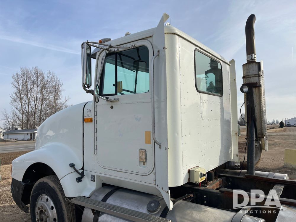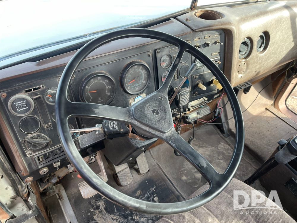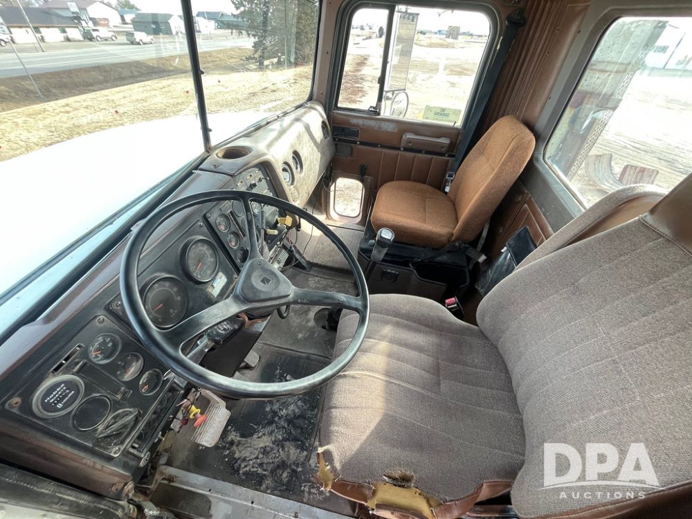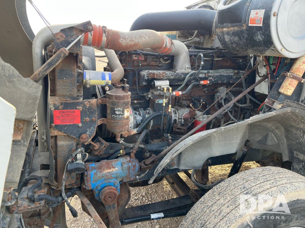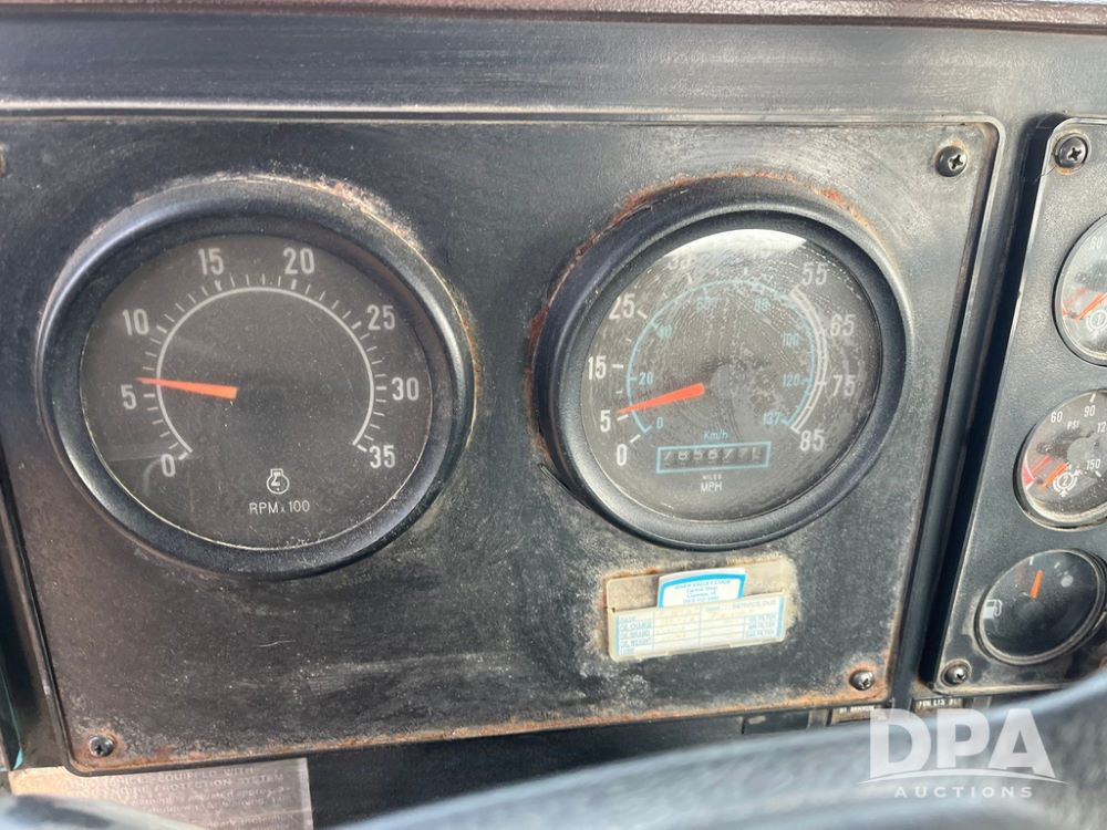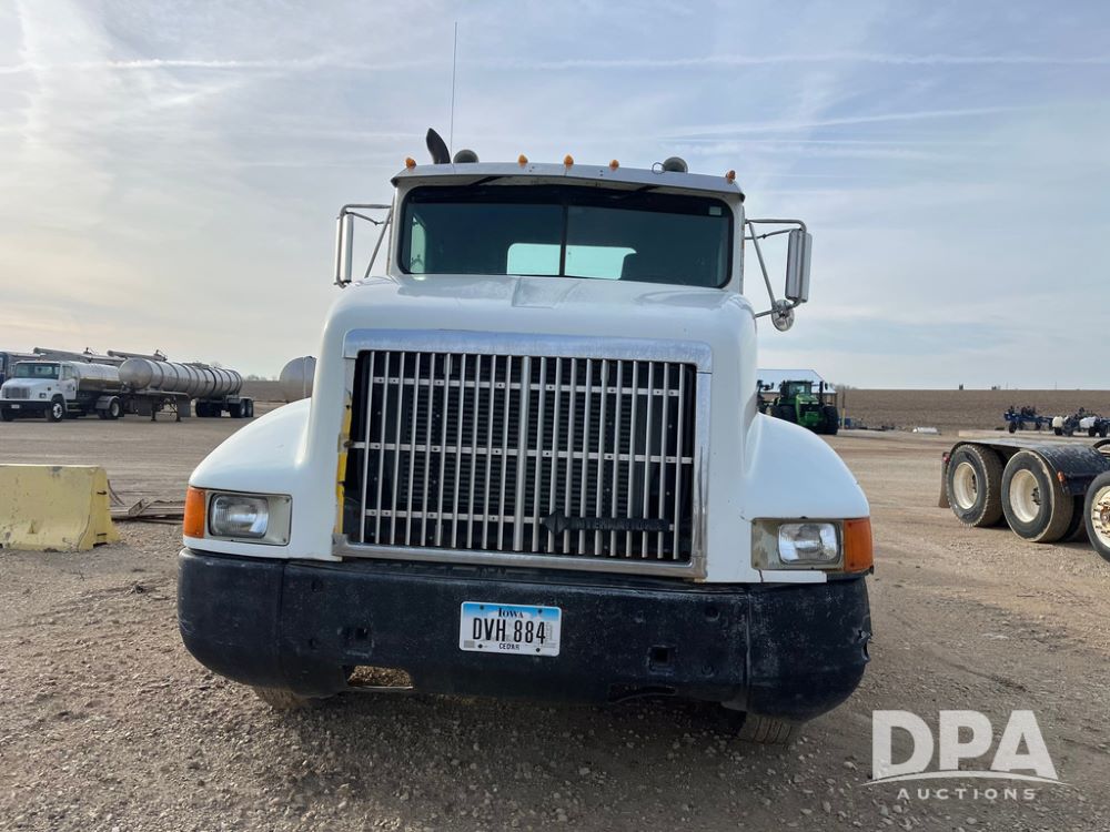 1993 IHC 9400 Truck (JN3935, Unit 345), Cummins N14 diesel engine, Eaton Fuller 9 speed transmission, air conditioning, heat, Am/Fm radio, tandem axle, full screw, air ride suspension, pusher axle, 11R22.5 tires, fenders, 255/70R22.5 pusher tires, shows 785,677 miles.