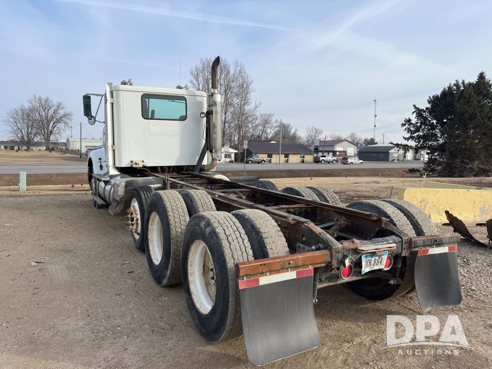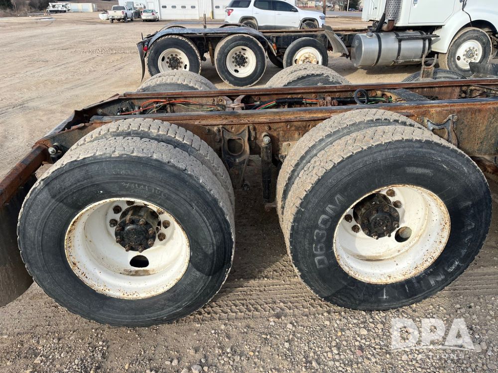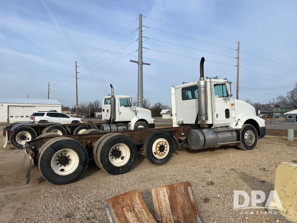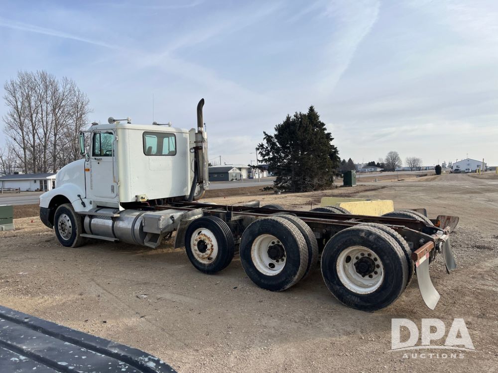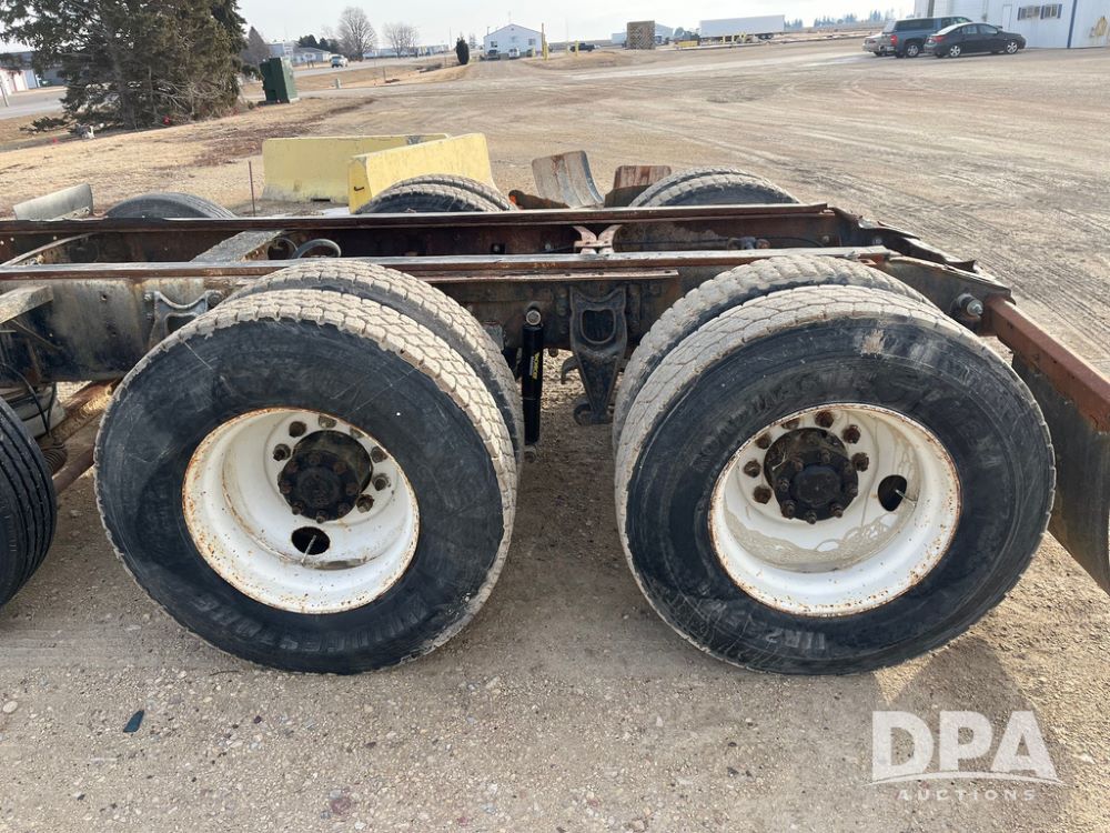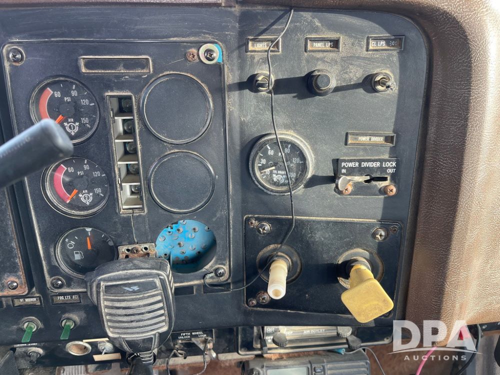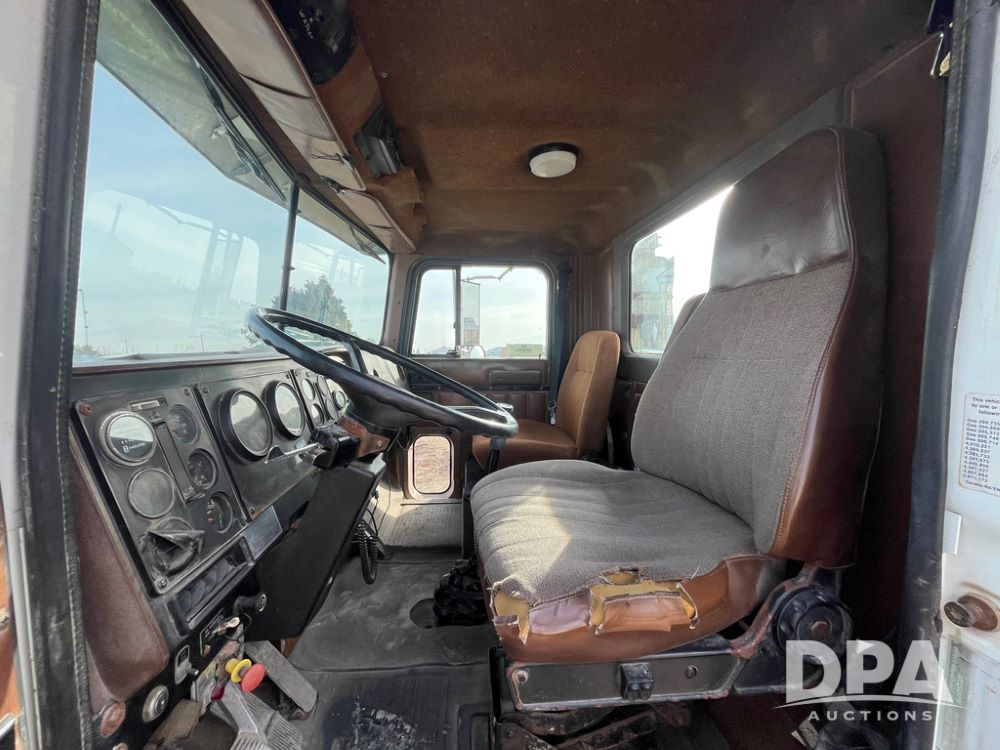 1993 IHC 9400 Truck (JN3935, Unit 345), Cummins N14 diesel engine, Eaton Fuller 9 speed transmission, air conditioning, heat, Am/Fm radio, tandem axle, full screw, air ride suspension, pusher axle, 11R22.5 tires, fenders, 255/70R22.5 pusher tires, shows 785,677 miles.