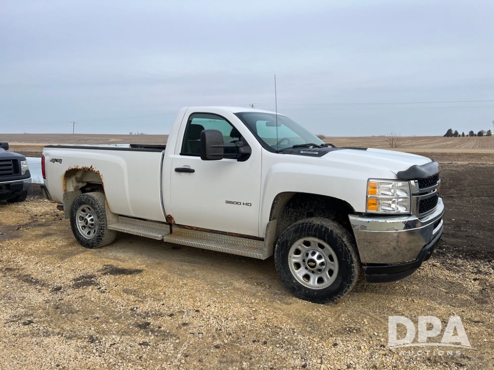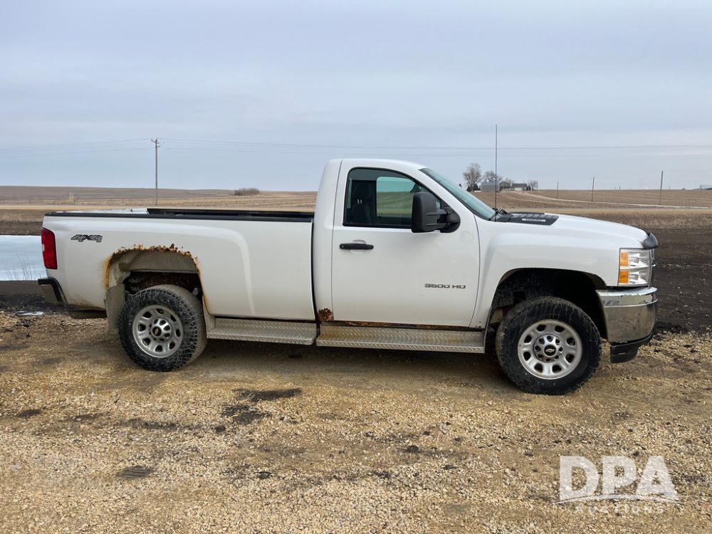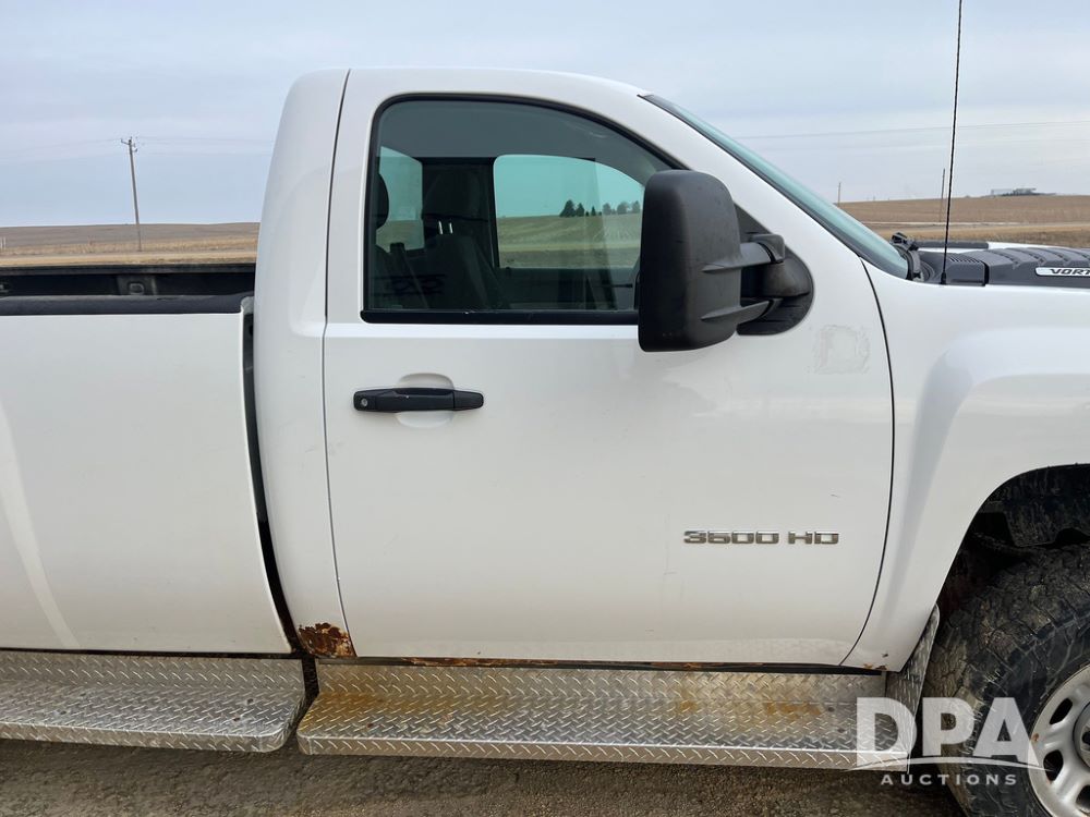2012 Chevrolet 3500HD Pickup (JN3947, Unit 1913), 4x4, Vortec 6.0L gas engine, automatic transmission, air conditioning, heat, Am/Fm radio, cruise control, power windows & locks, running boards, rear hitch, LT275/65R18 tires, shows 267,316 miles.