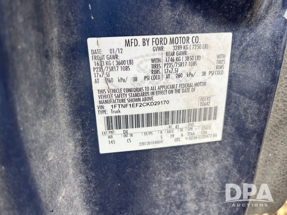2012 Ford F150XL Pickup (JN3948, Unit 7114), 4x4, 5.0L gas engine, automatic transmission, air conditioning, heat, Am/Fm CD radio, cruise control, running boards, rear hitch, 235/75R17 tires, shows 166,191 miles.