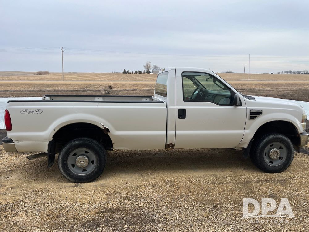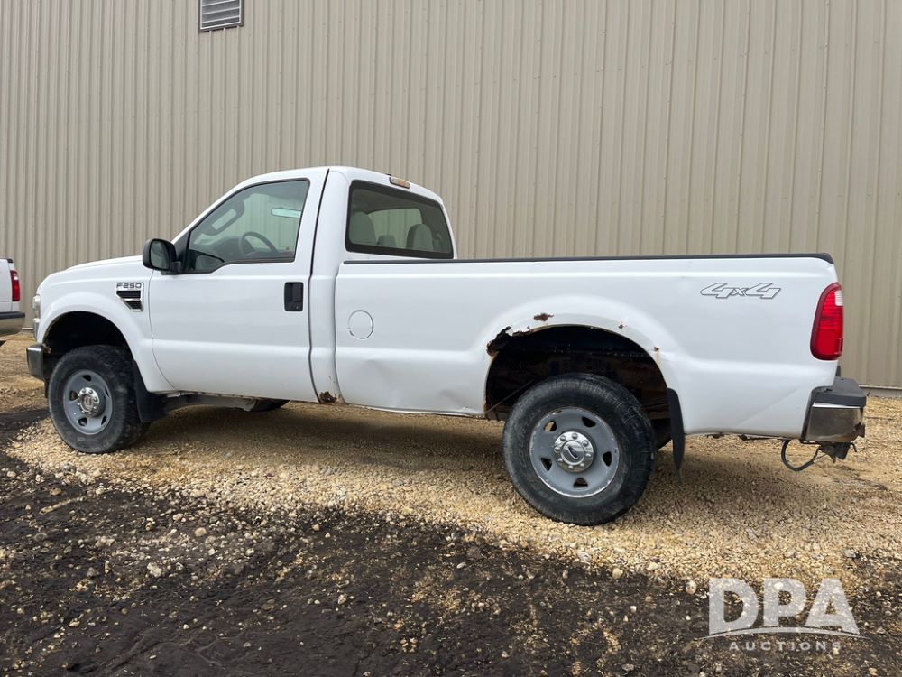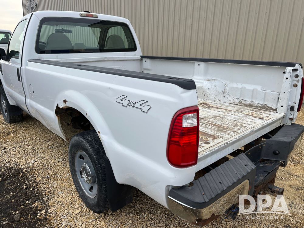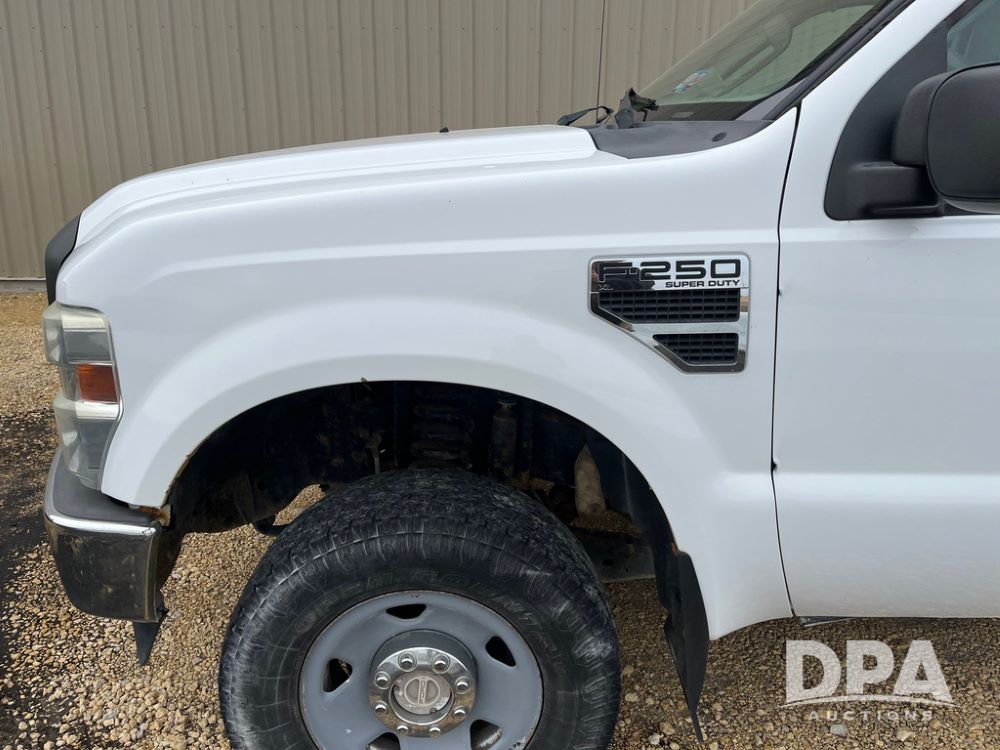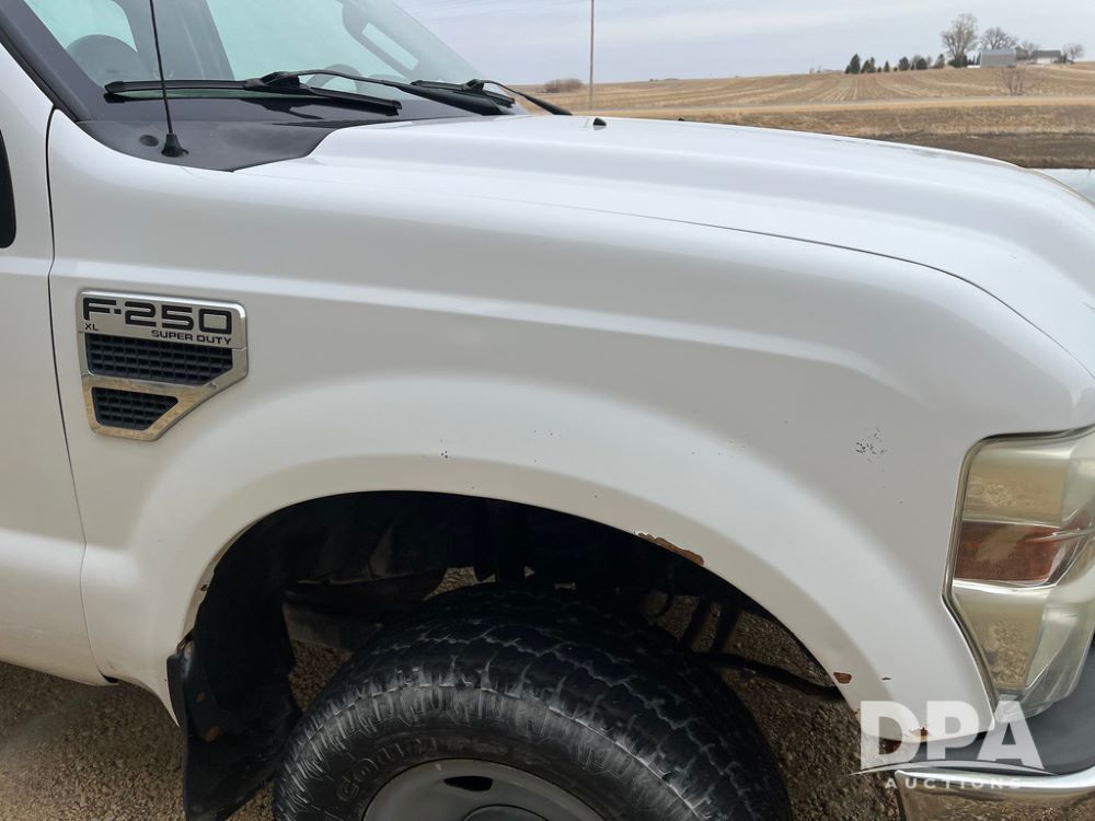 2008 Ford F250XL Super Duty Pickup (JN3950, Unit 3120), 4x4, 5.4L gas engine, automatic transmission, air conditioning, heat, Am/Fm radio, cruise control, rear hitch, LT265/70R17 tires, shows 110,993 miles.