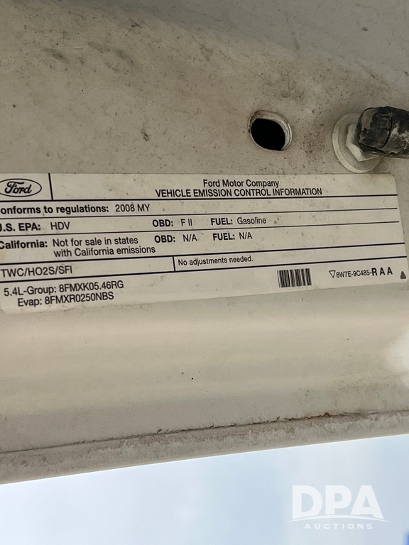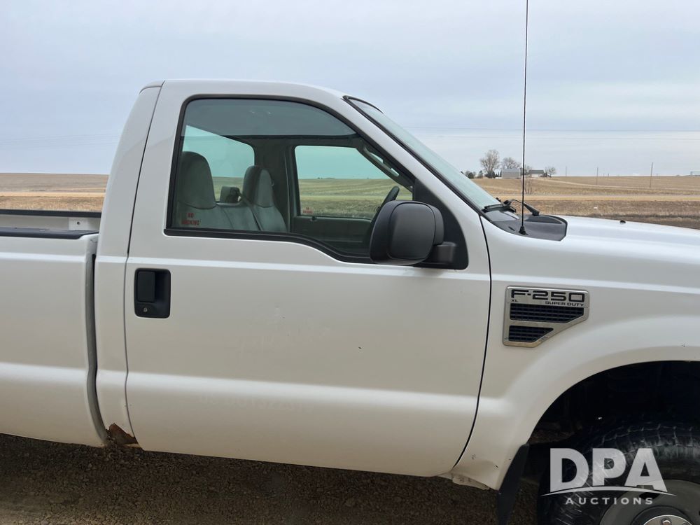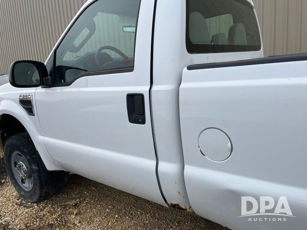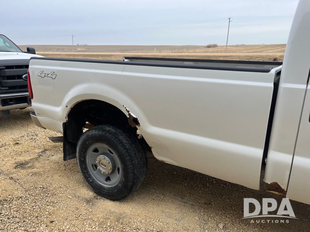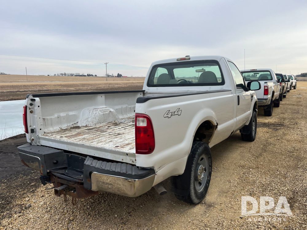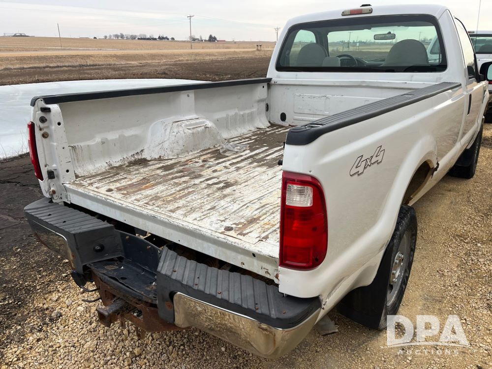 2008 Ford F250XL Super Duty Pickup (JN3950, Unit 3120), 4x4, 5.4L gas engine, automatic transmission, air conditioning, heat, Am/Fm radio, cruise control, rear hitch, LT265/70R17 tires, shows 110,993 miles.