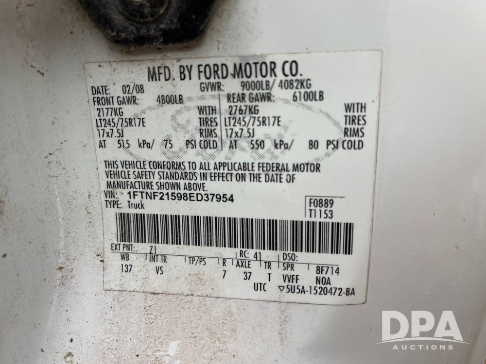 Serial Number: 1FTNF21598ED37954