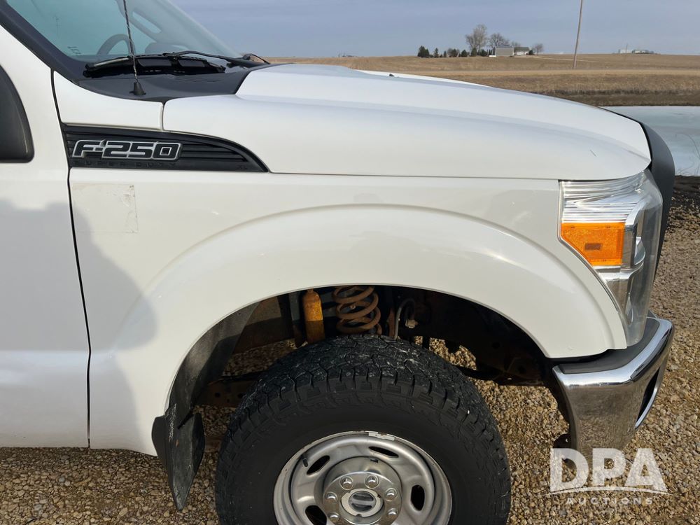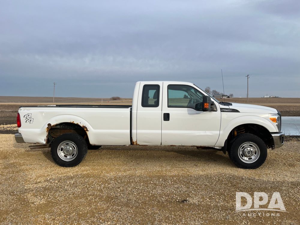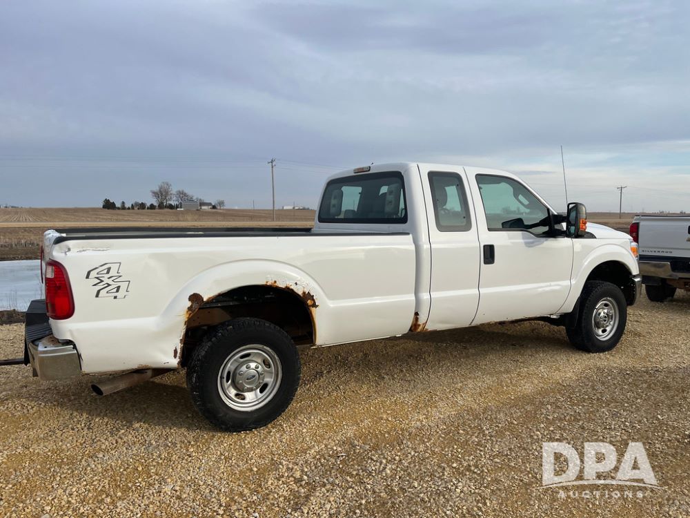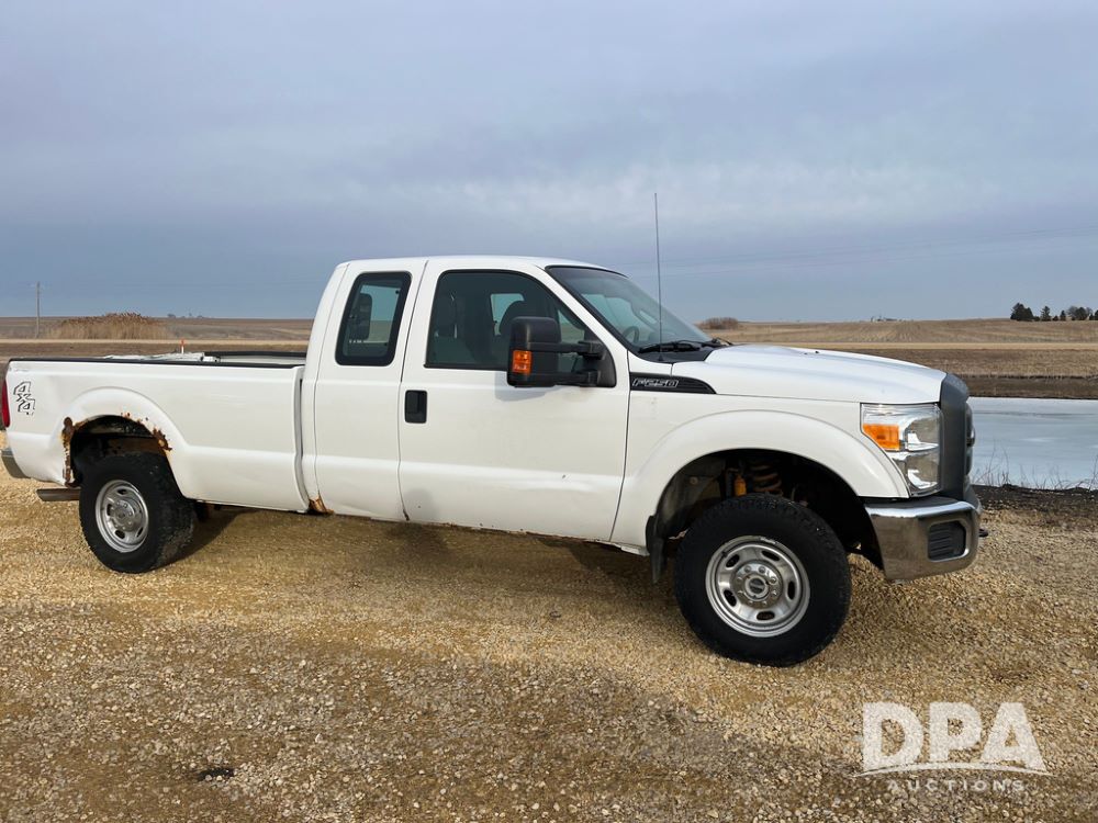 2012 Ford F250XL Super Duty Extended Cab Pickup (JN3957, Unit 3127), 4x4, 6.2L gas engine, automatic transmission, air conditioning, heat, Am/Fm CD radio, cruise control, power windows & locks, rear hitch, LT265/70R17 tires, shows 158,552 miles.
