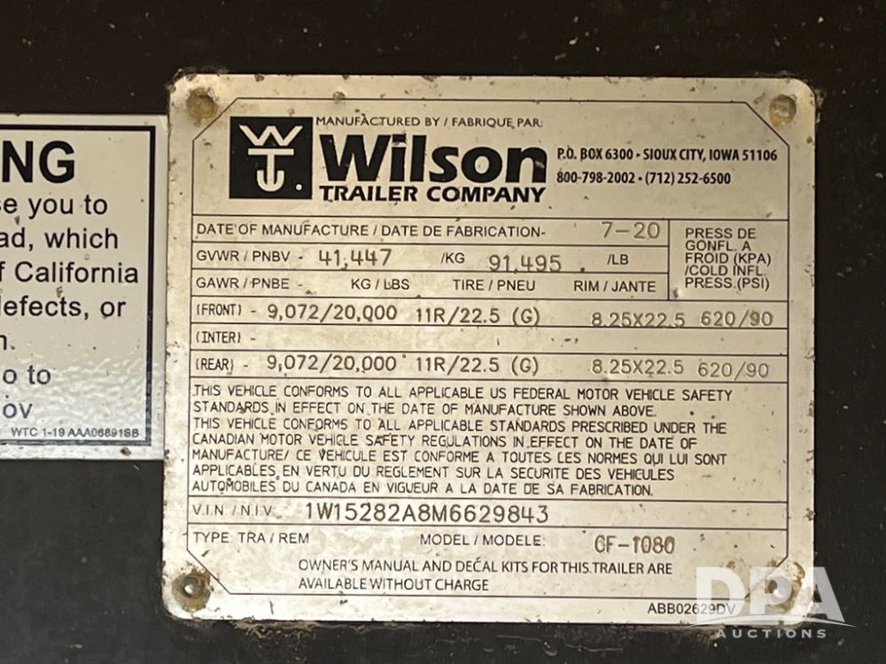 2021 Wilson RoadBrute Curtin Side Trailer (JN3945, Unit 883), 2021 Wilson RoadBrute model CF-1080 curtin side trailer, Shurtite retractable tarp systems (S/N 2678), side winches, cargo box, tandem axle, air ride suspension, 11R22.5 tires, aluminum rims,