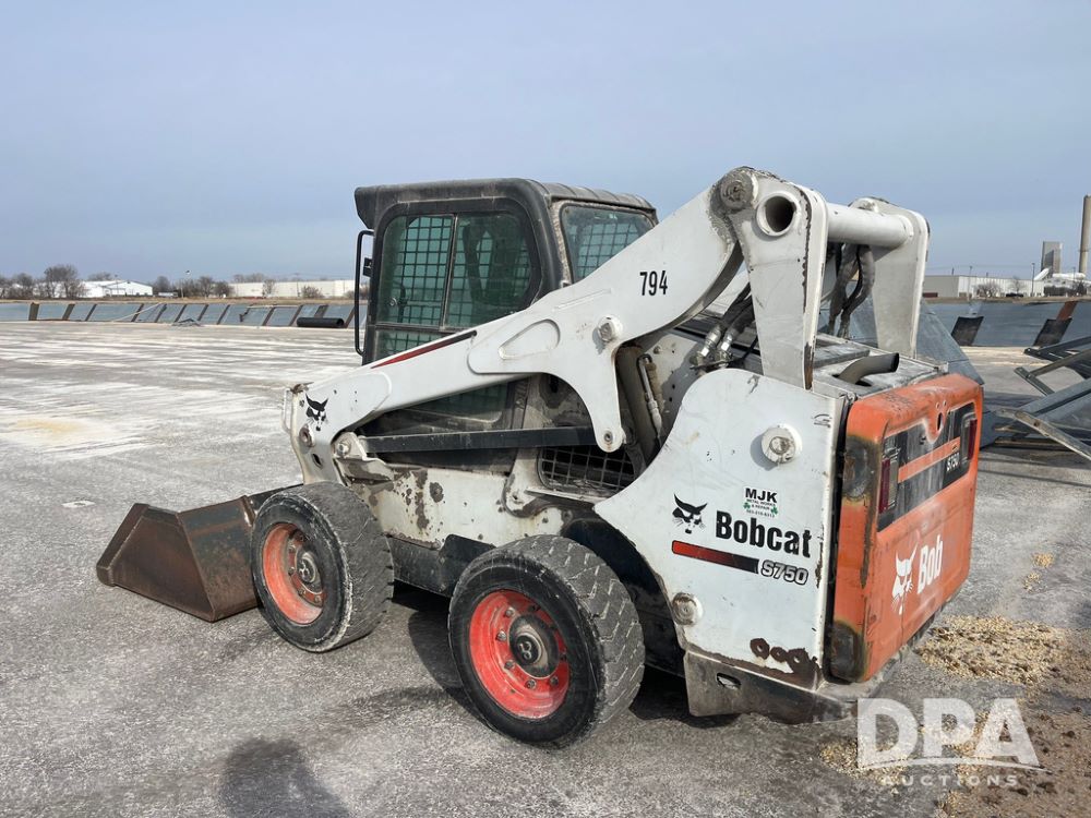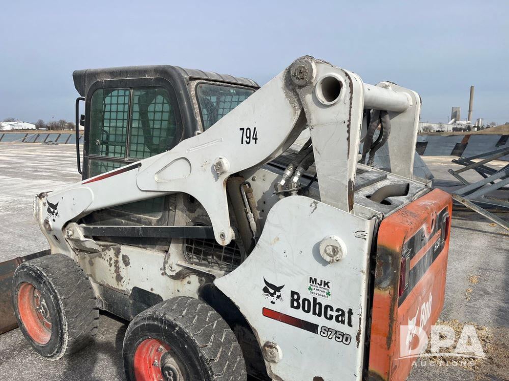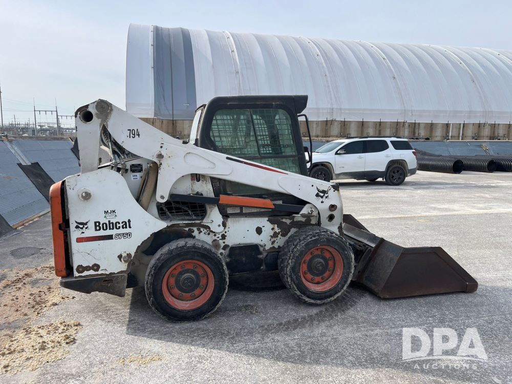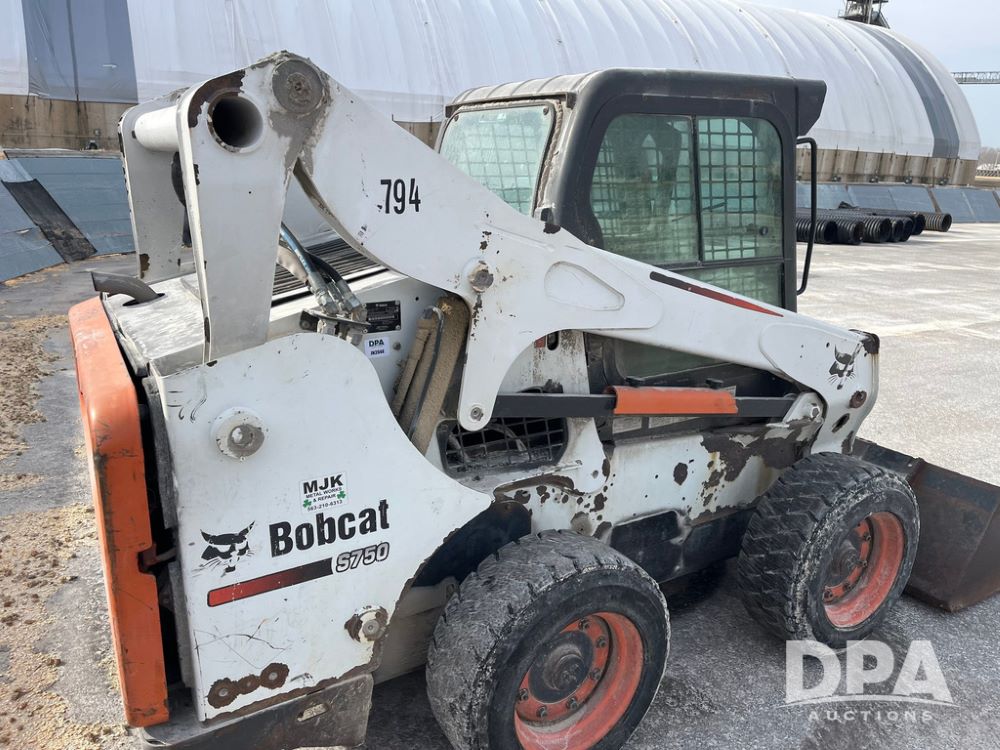 2012 Bobcat S750 Skid Steer (JN3944, Unit 794), diesel engine, hydrostatic transmission, cab, lights, 72" bucket, auxiliary hydraulics, shows 3,912 hours.