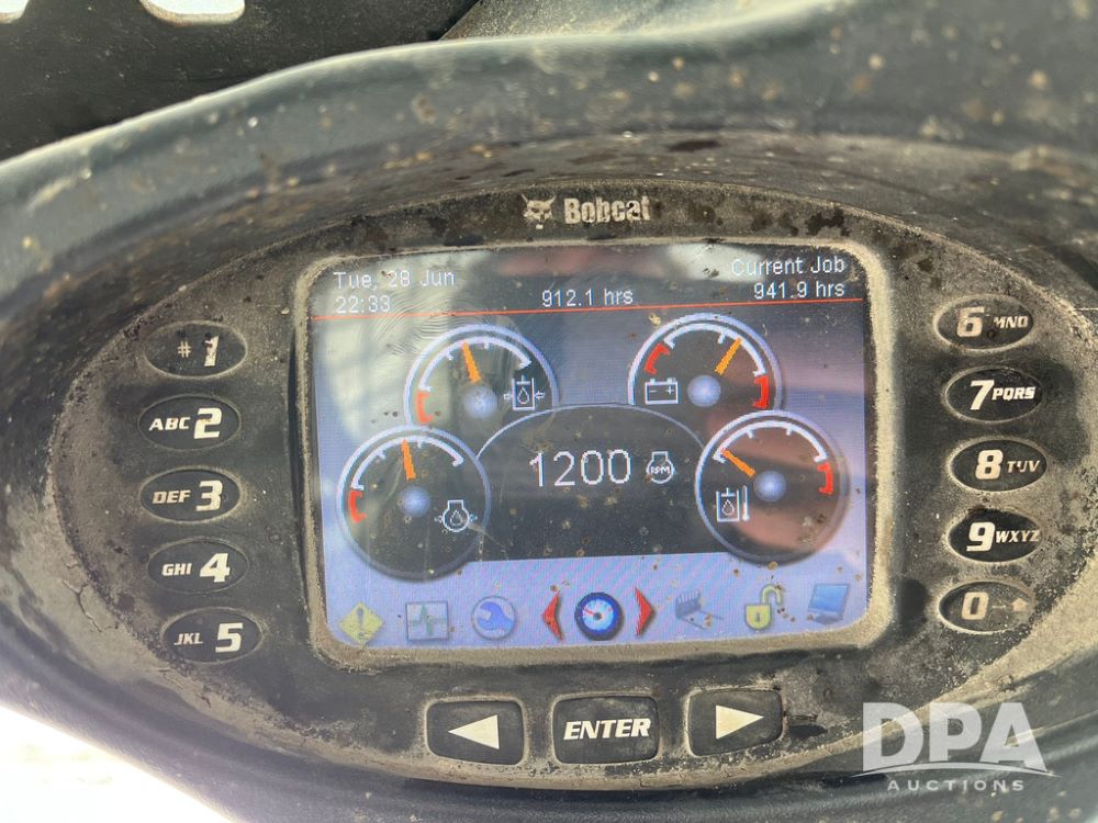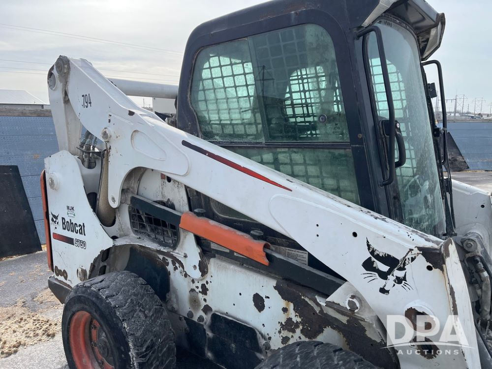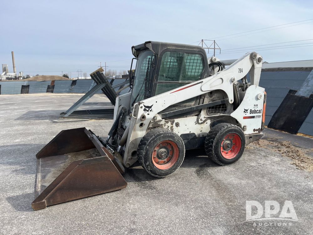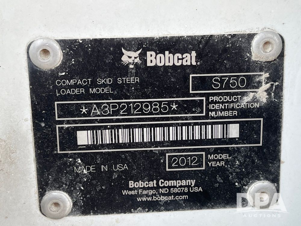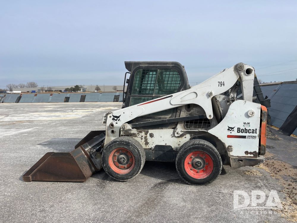 2012 Bobcat S750 Skid Steer (JN3944, Unit 794), diesel engine, hydrostatic transmission, cab, lights, 72" bucket, auxiliary hydraulics, shows 3,912 hours.