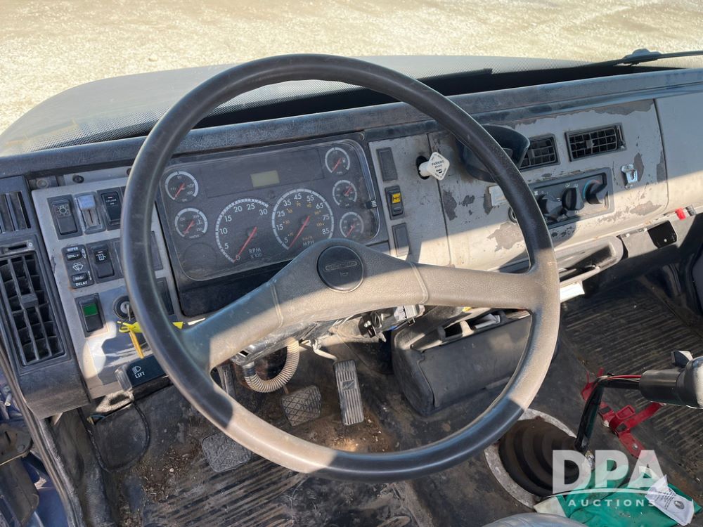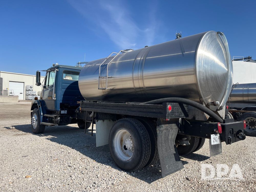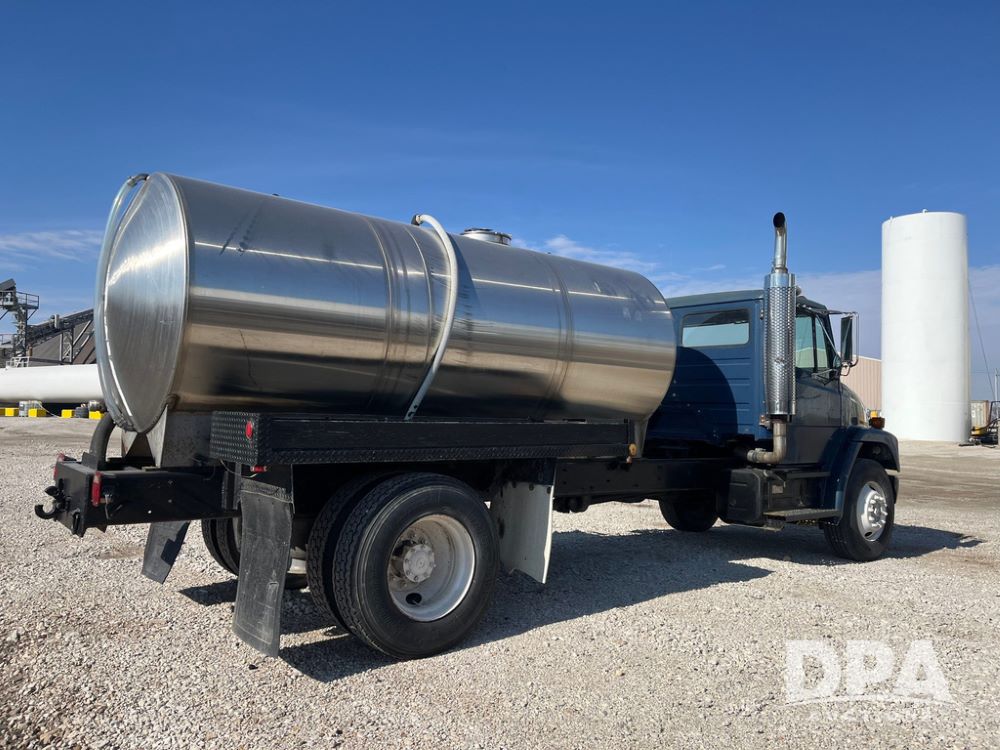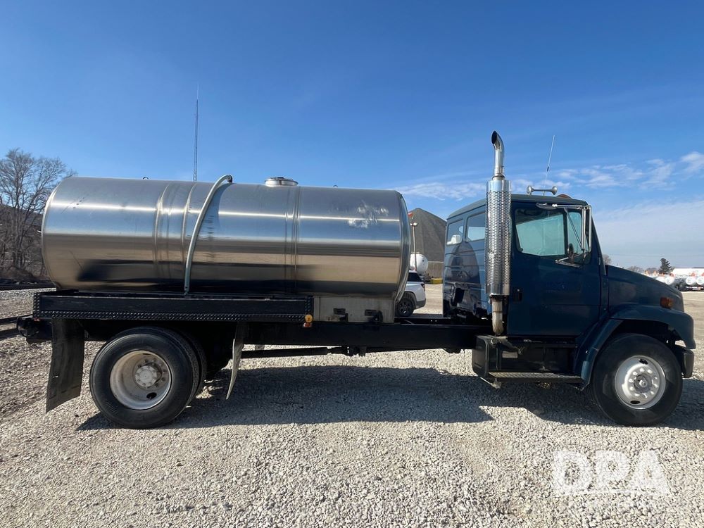 2002 Freightliner FL70 Liquid Nurse Truck (JN3959, Unit 221), Cat diesel engine, Eaton Fuller transmission, air conditioning, heat, Am/Fm radio, cruise control, single axle, air ride suspension, 2,000 gallon stainless steel liquid nurse tank, 11R22.5 front tires, 295/75R22.5 rear tires.
