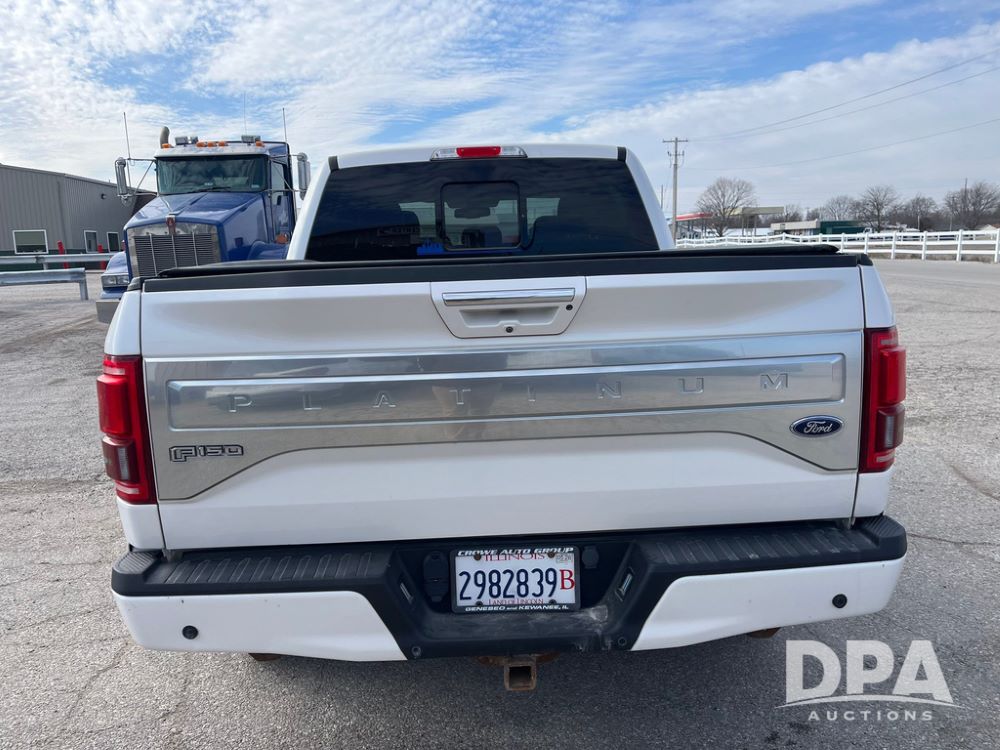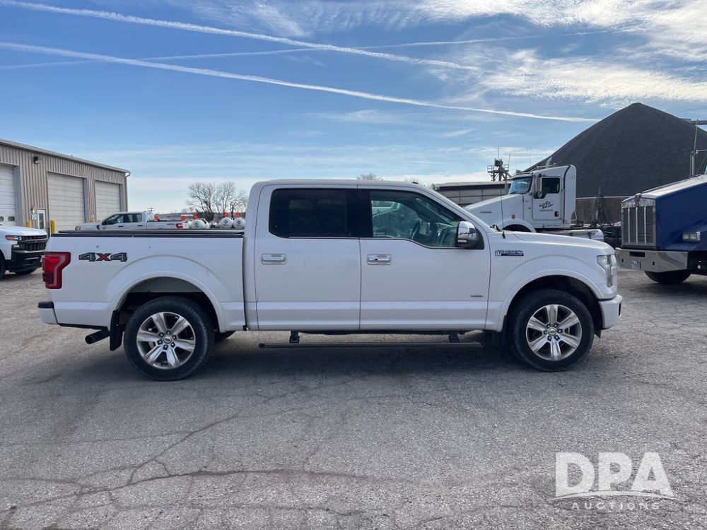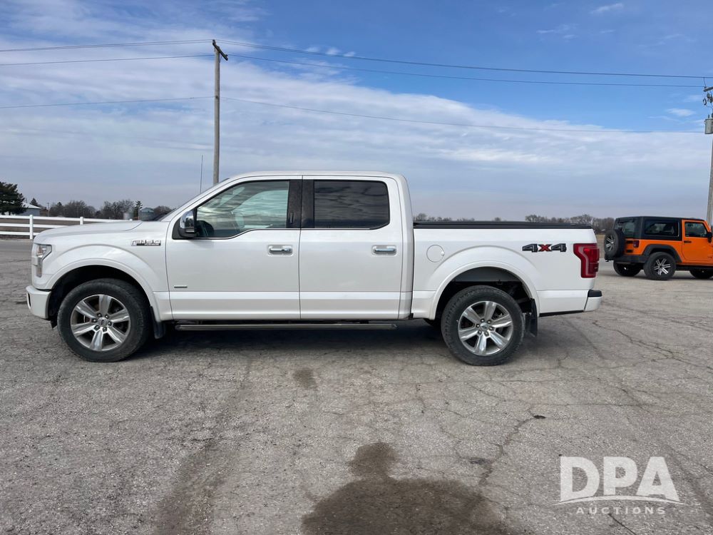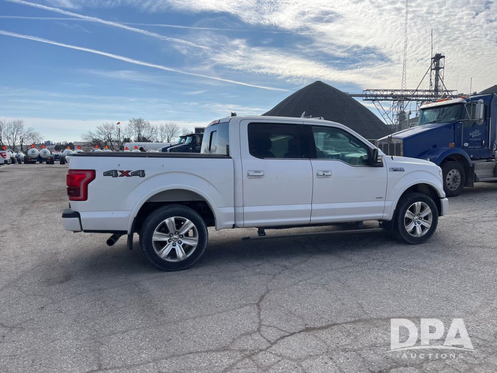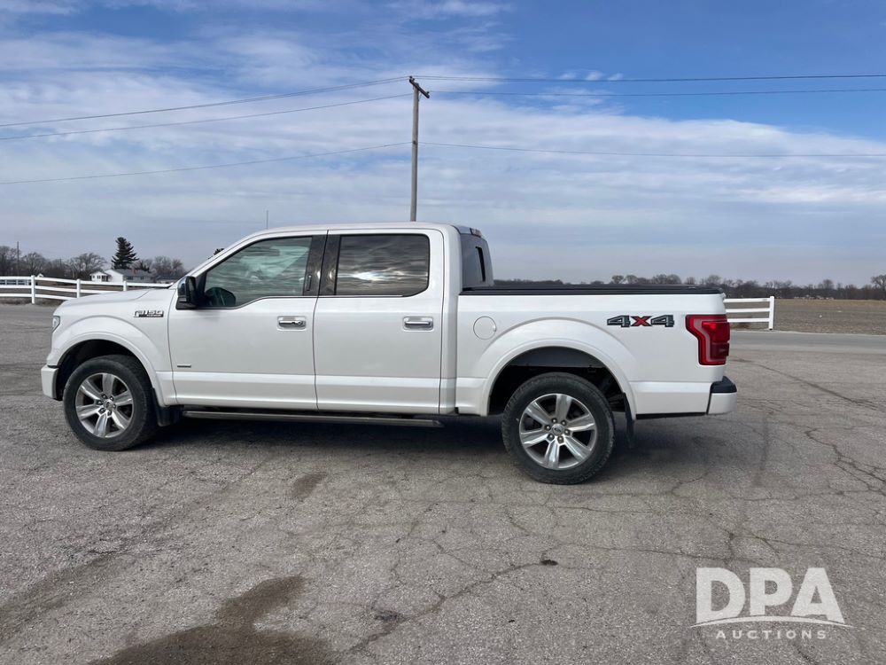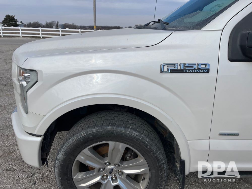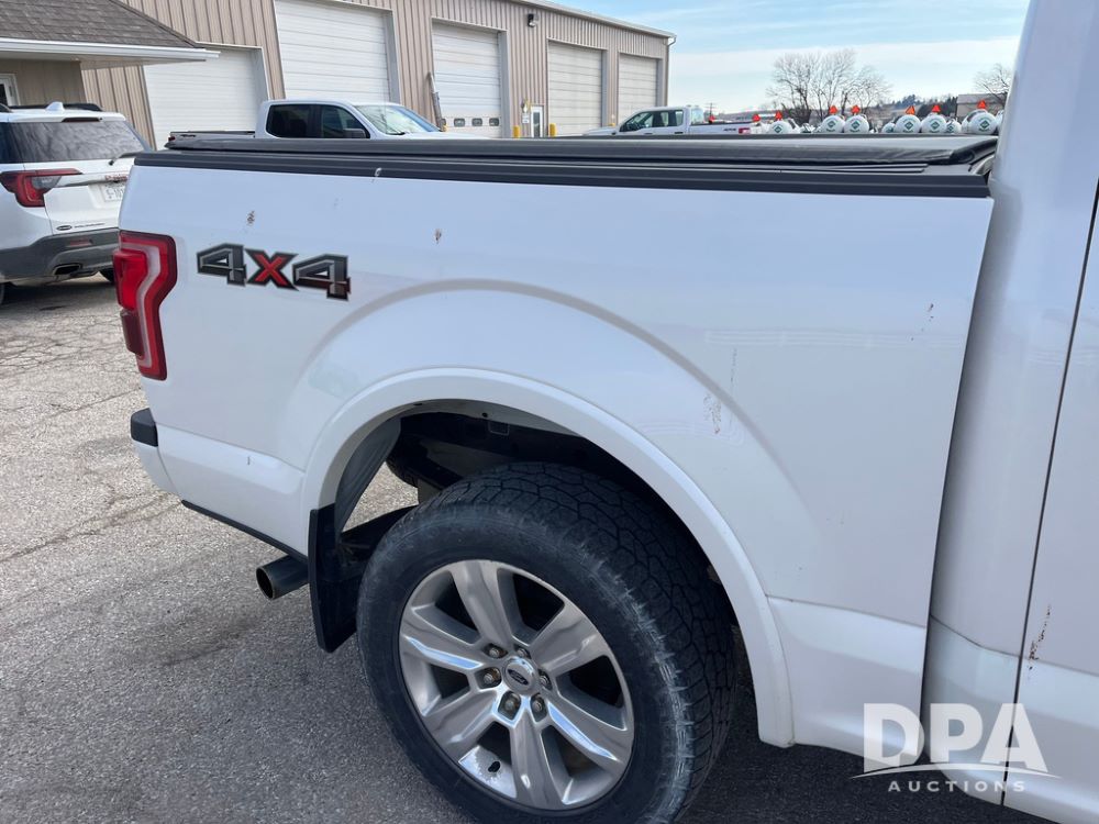 2016 Ford F150 Platinum 4 Door Pickup (JN3963, Unit 7106), 4x4, 3.5L gas engine, automatic transmission, air conditioning, heat, Am/Fm radio, cruise control, power windows & locks, power drivers seat, power running boards, tonneau cover, rear hitch, 275/55R20 tires, shows 161,540 miles.