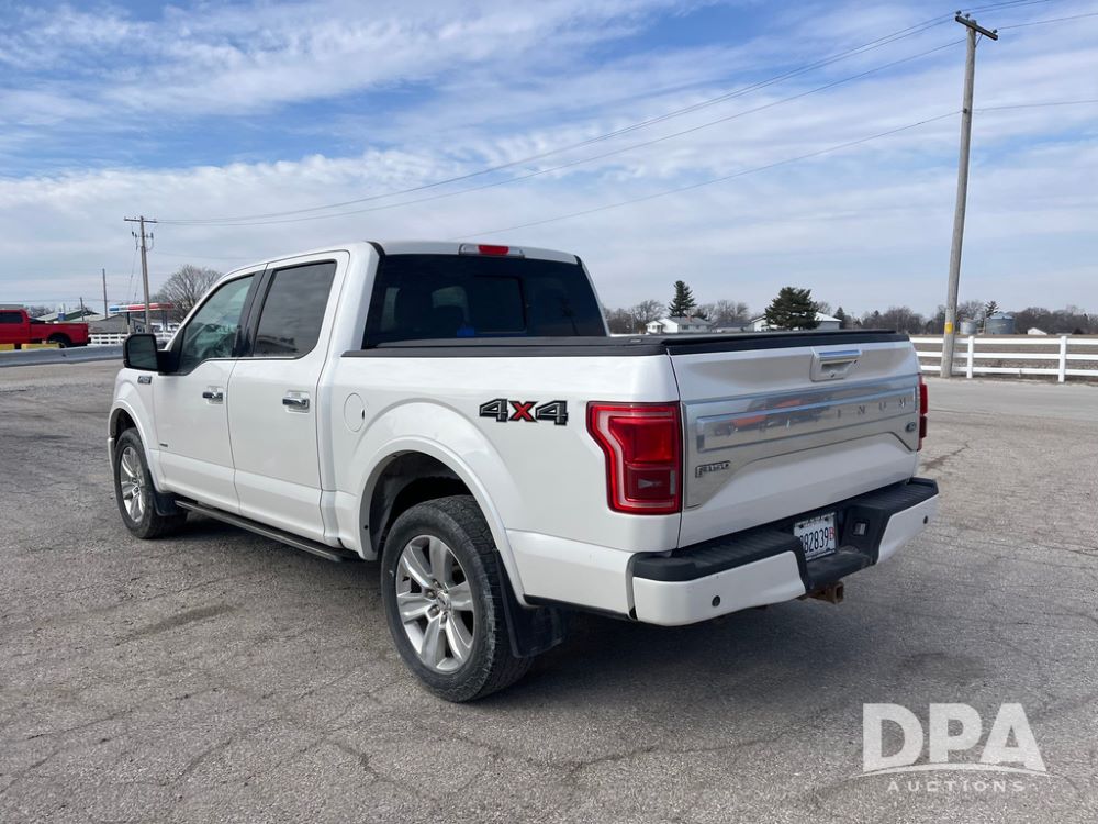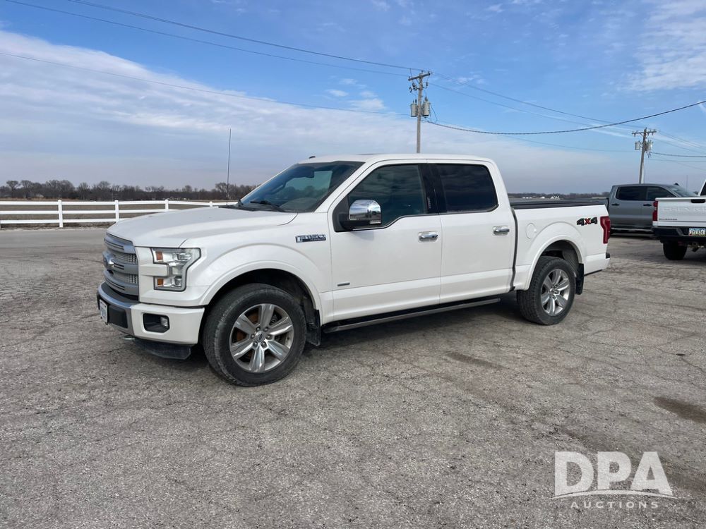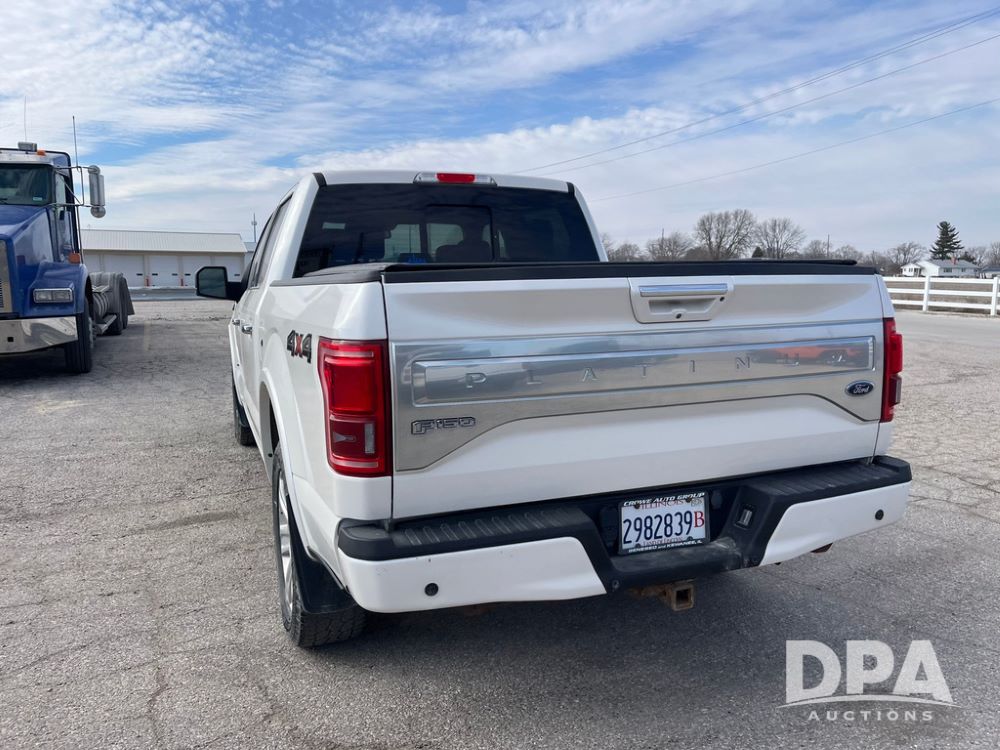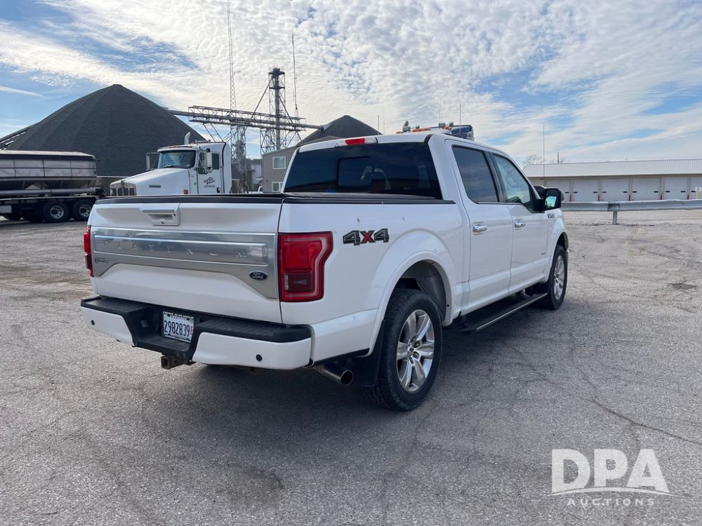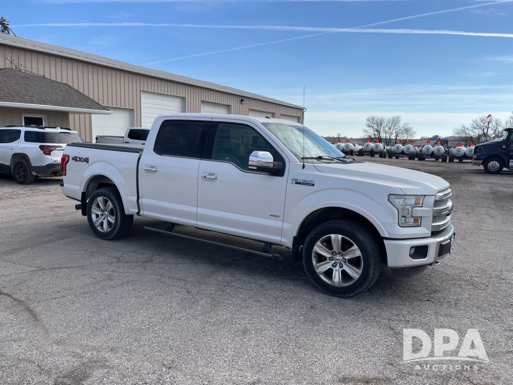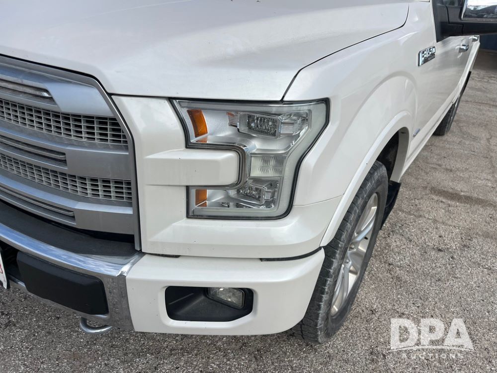 2016 Ford F150 Platinum 4 Door Pickup (JN3963, Unit 7106), 4x4, 3.5L gas engine, automatic transmission, air conditioning, heat, Am/Fm radio, cruise control, power windows & locks, power drivers seat, power running boards, tonneau cover, rear hitch, 275/55R20 tires, shows 161,540 miles.