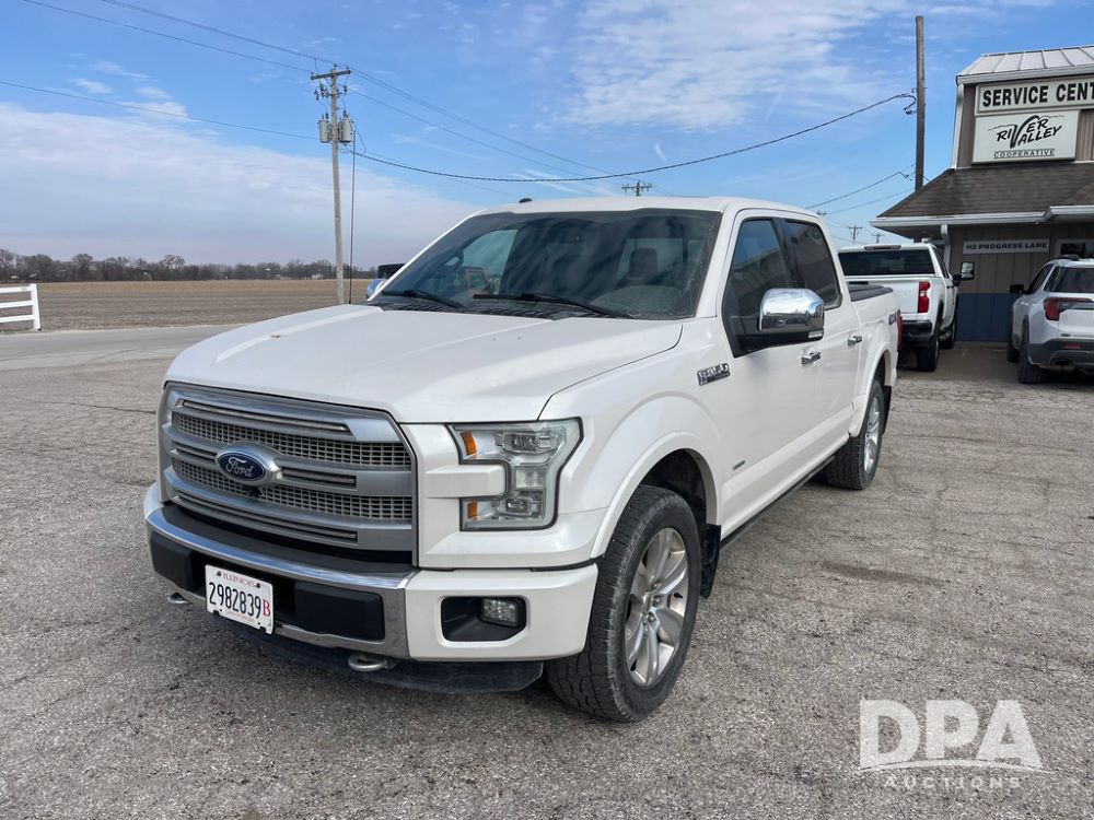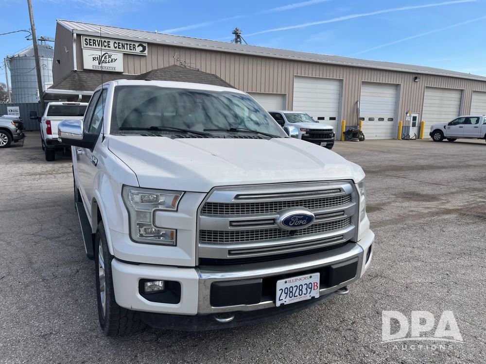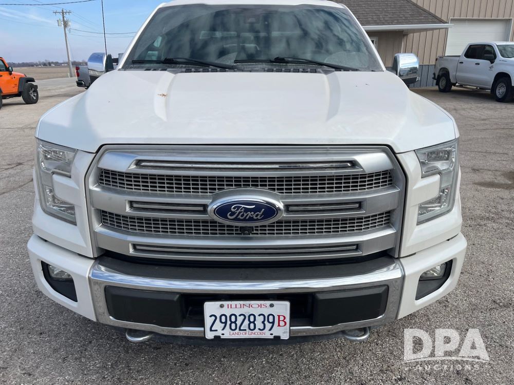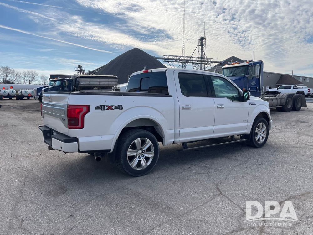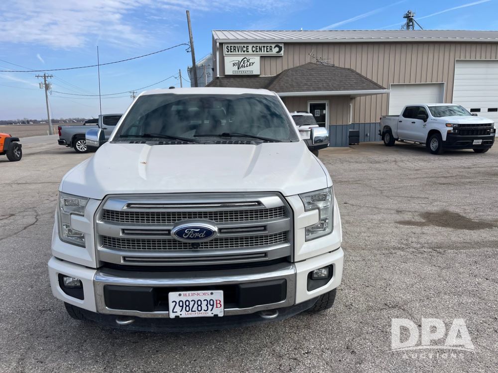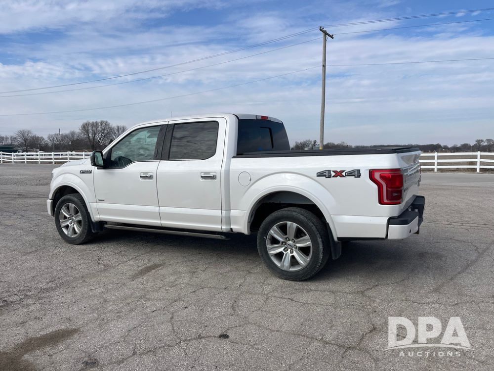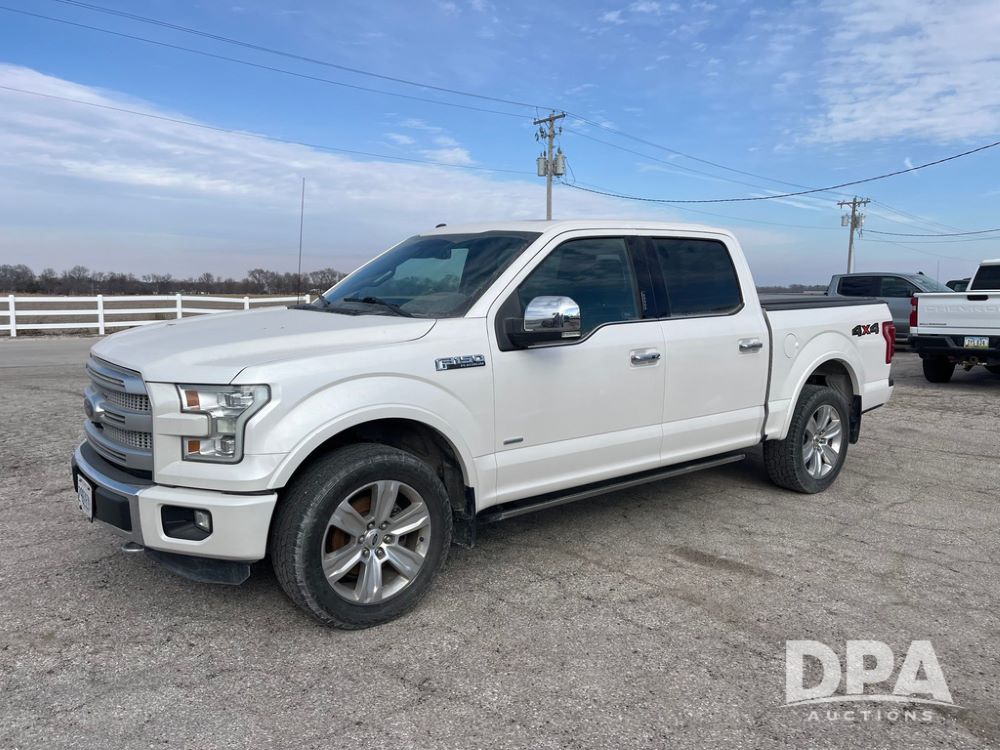 2016 Ford F150 Platinum 4 Door Pickup (JN3963, Unit 7106), 4x4, 3.5L gas engine, automatic transmission, air conditioning, heat, Am/Fm radio, cruise control, power windows & locks, power drivers seat, power running boards, tonneau cover, rear hitch, 275/55R20 tires, shows 161,540 miles.