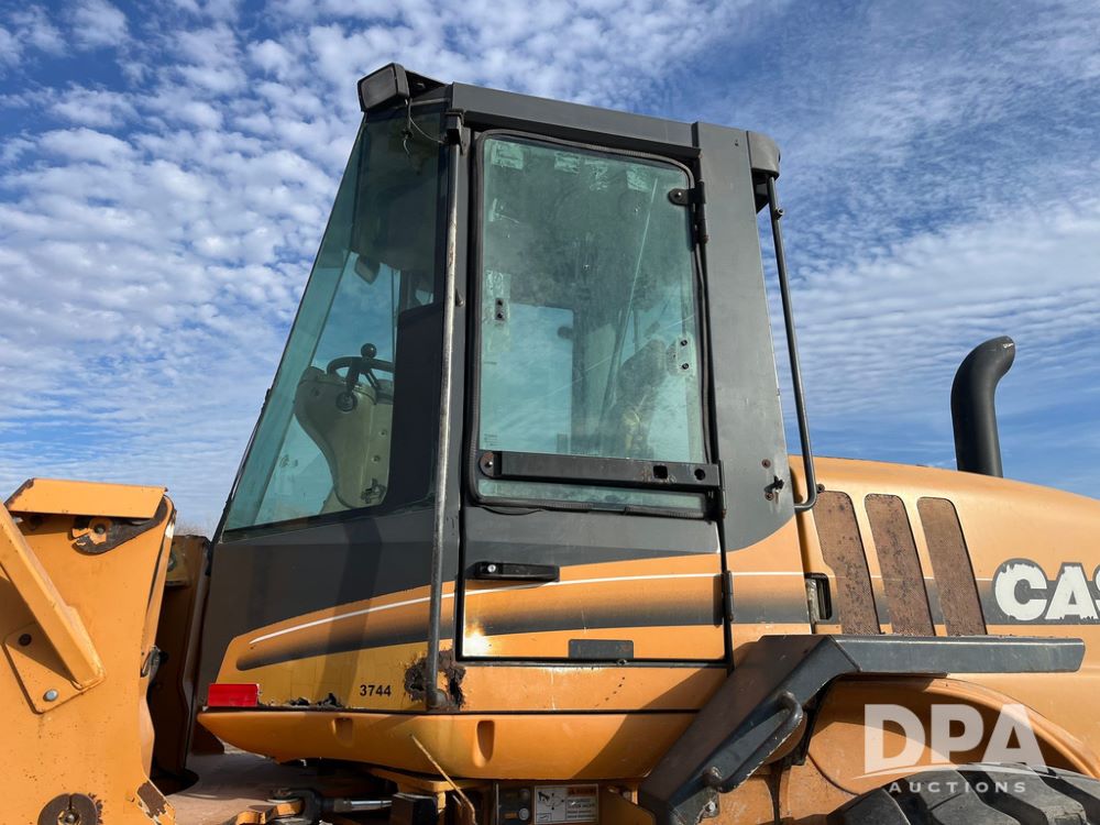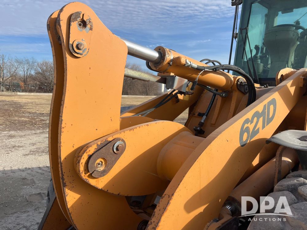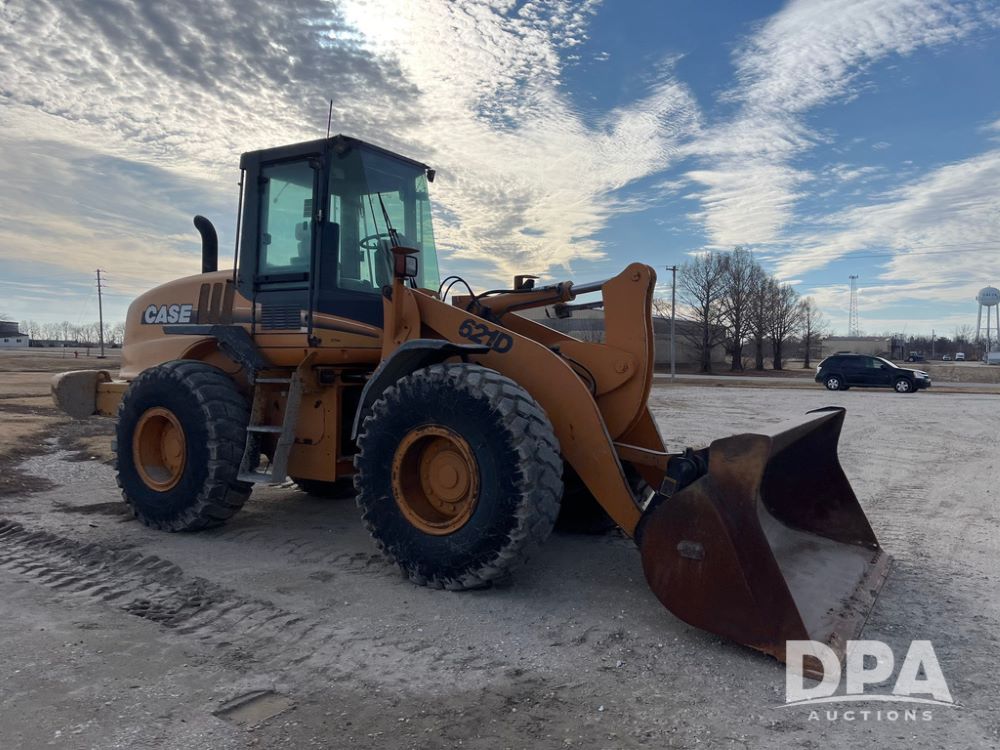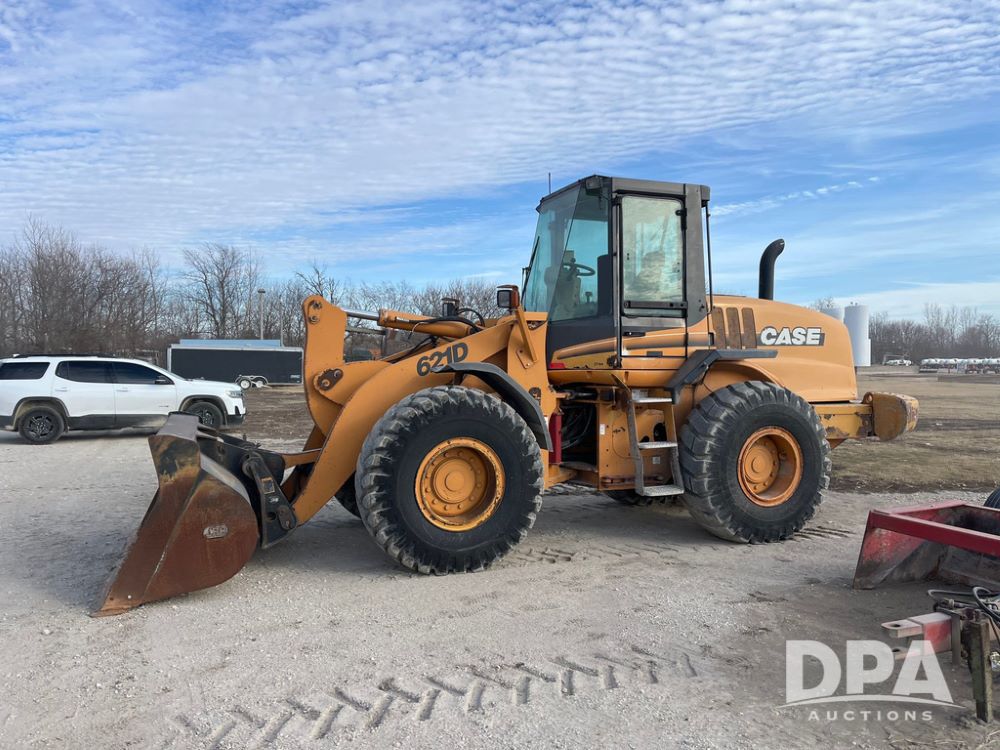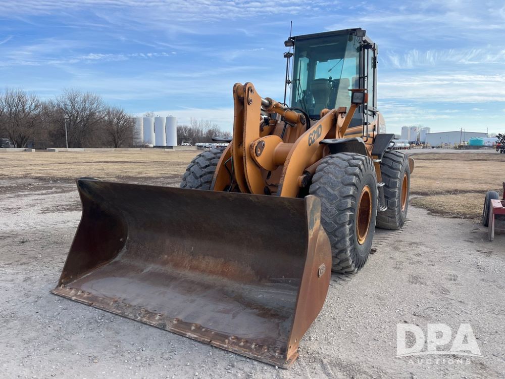 2008 Case 621D Loader (JN3964, Unit 3744), diesel engine, shuttle shift transmission, cab, lights, heat, JRB model 621D 2.50 yard bucket (S/N 0203-99948-3), Petlas 20.5-25 front tires, Alliance 20.5-25 rear tires, shows 8,716 hours.