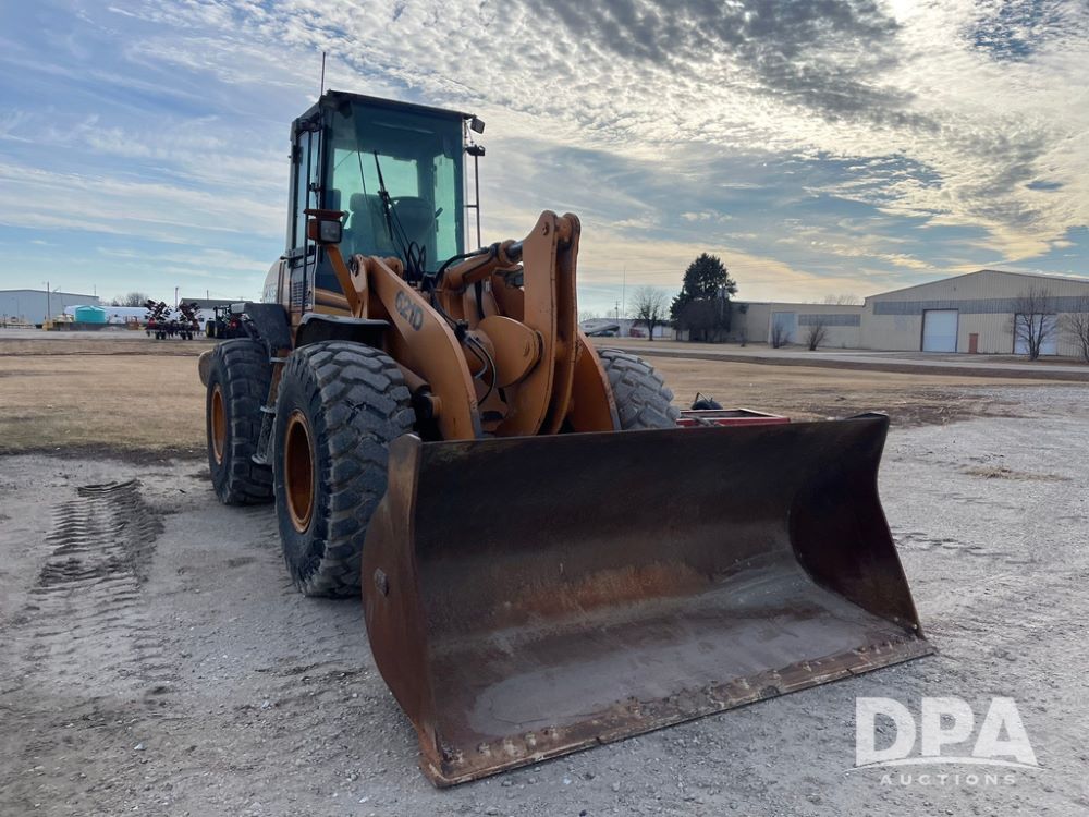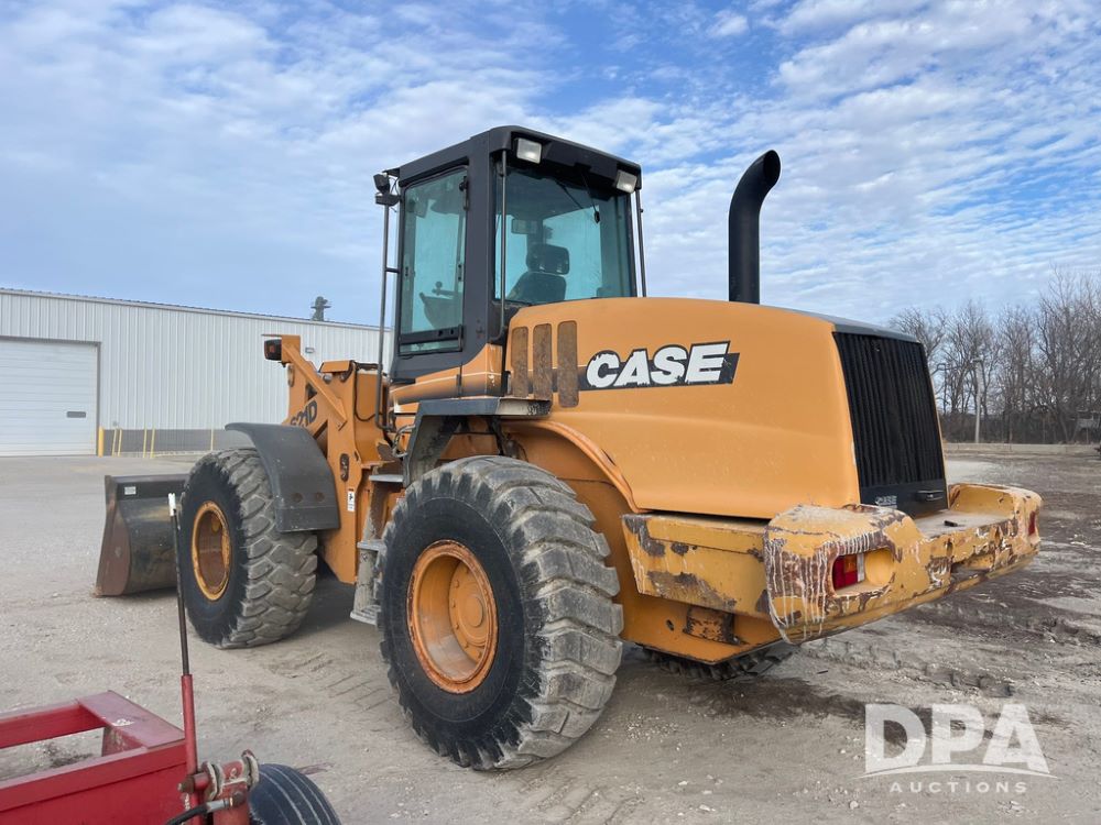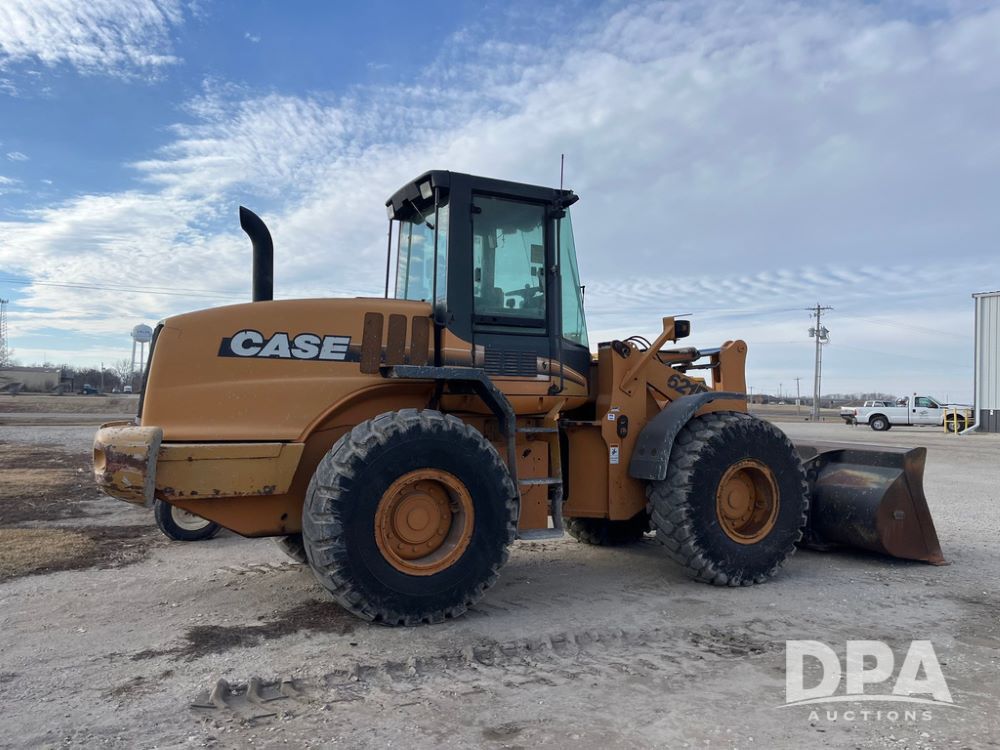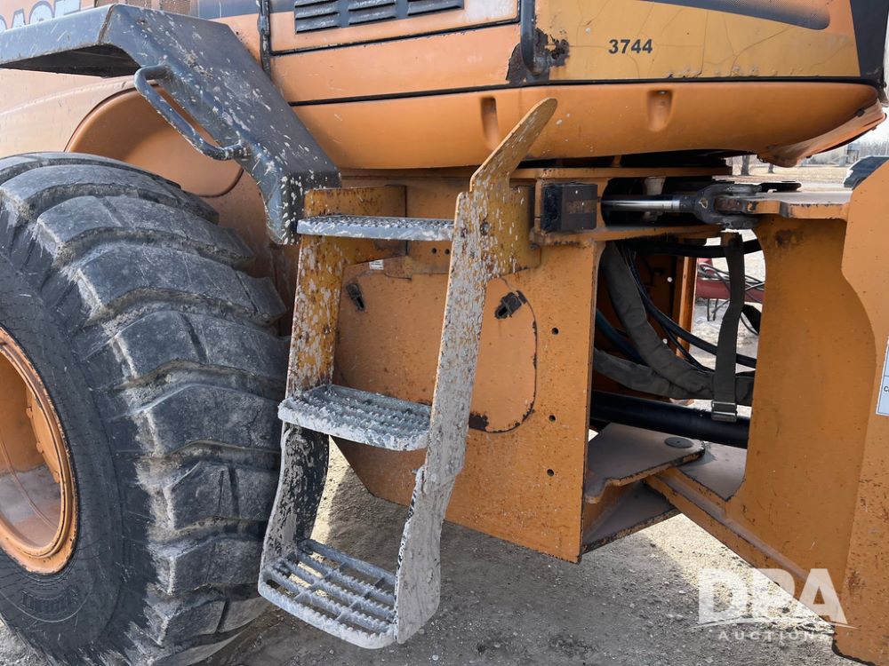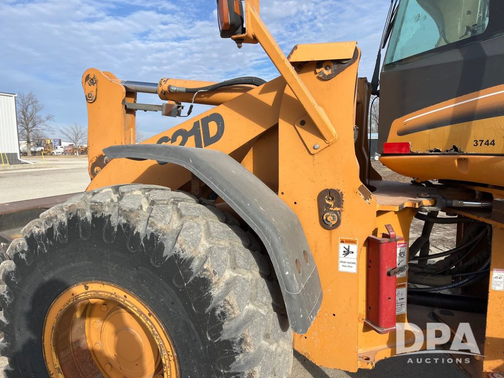 2008 Case 621D Loader (JN3964, Unit 3744), diesel engine, shuttle shift transmission, cab, lights, heat, JRB model 621D 2.50 yard bucket (S/N 0203-99948-3), Petlas 20.5-25 front tires, Alliance 20.5-25 rear tires, shows 8,716 hours.