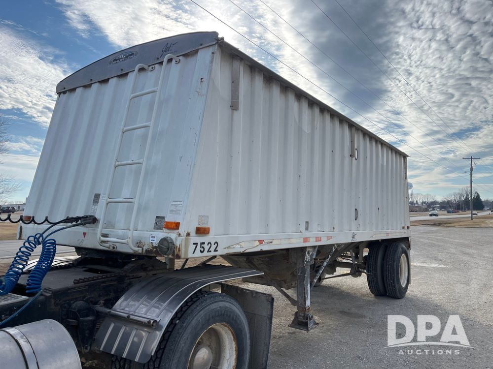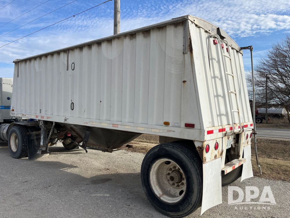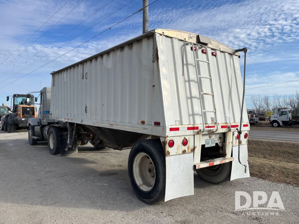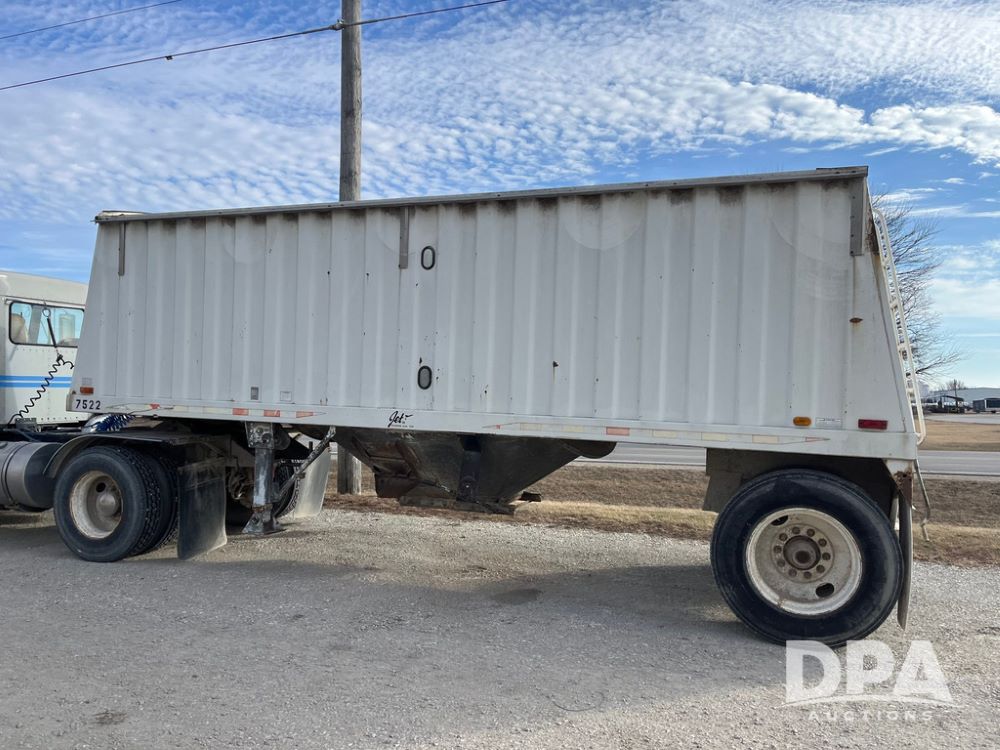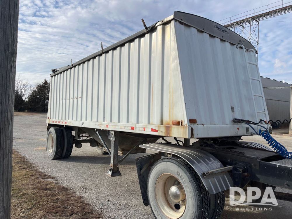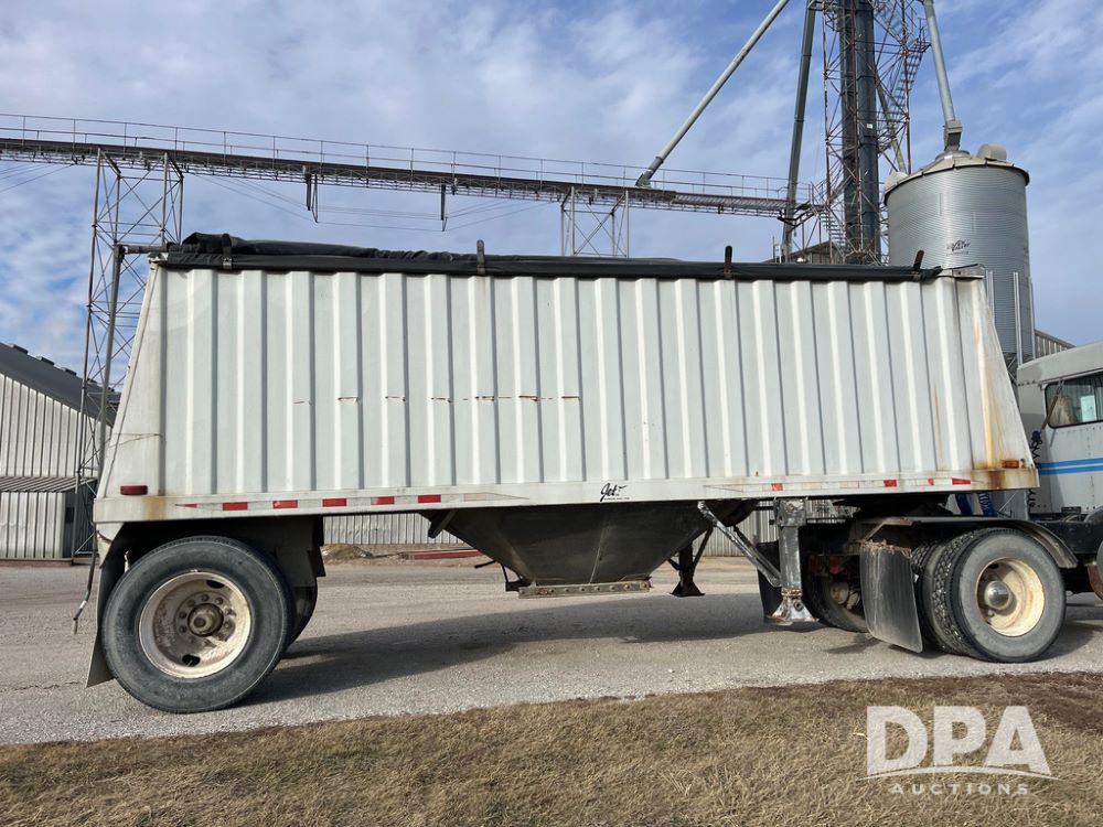 2000 Jet Grain Trailer (JN3966, Unit 7522), 2000 Jet hopper bottom grain trailer, roll over tarp, single axle, spring suspension, 11R24.5 tires.