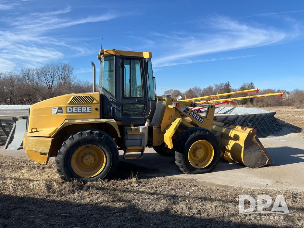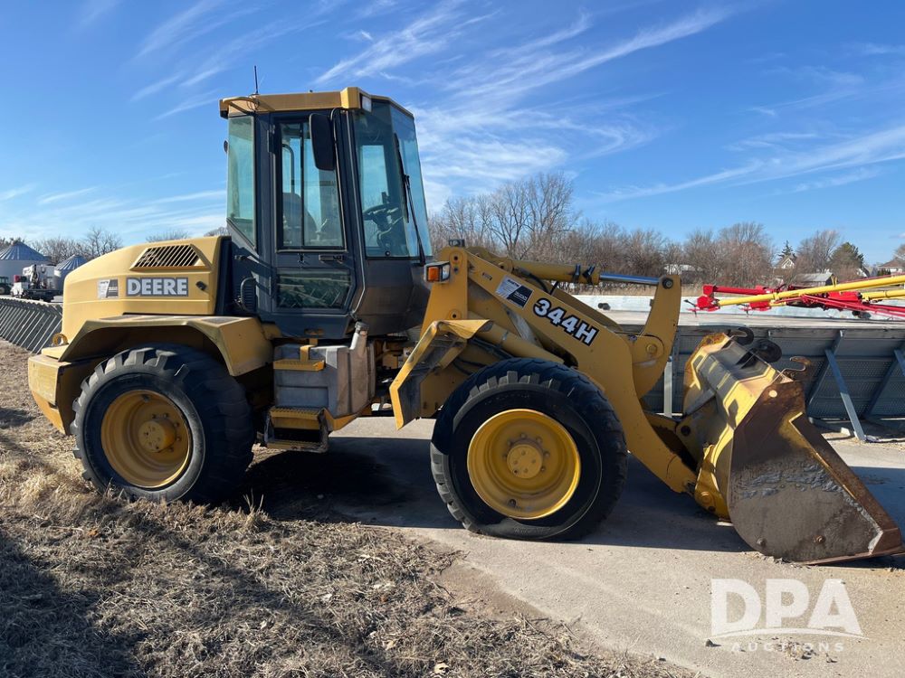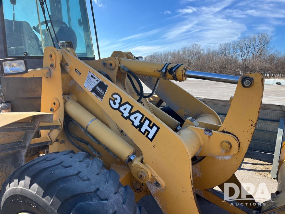 2005 John Deere 344H Loader (JN3985, Unit 7711), diesel engine, shuttle shift transmission, cab, lights, Am/Fm radio, 93" bucket, Armour 17.5-25 front tires, BKT 17.5-25 rear tires,