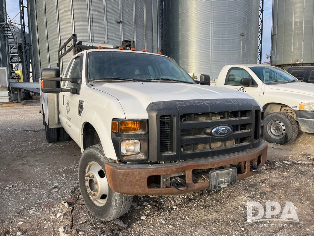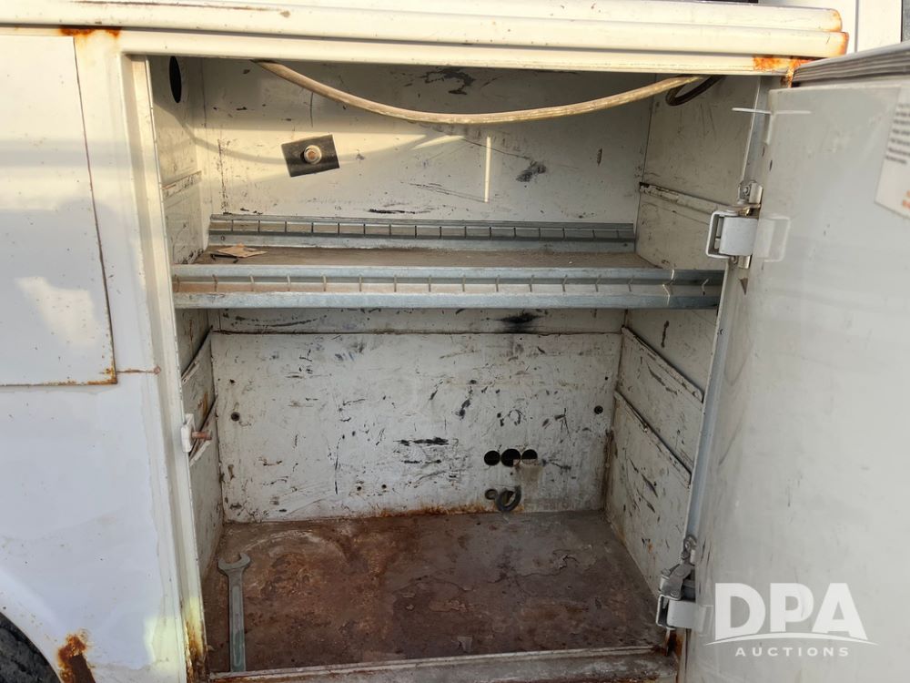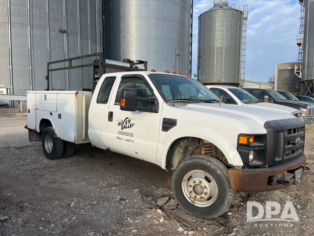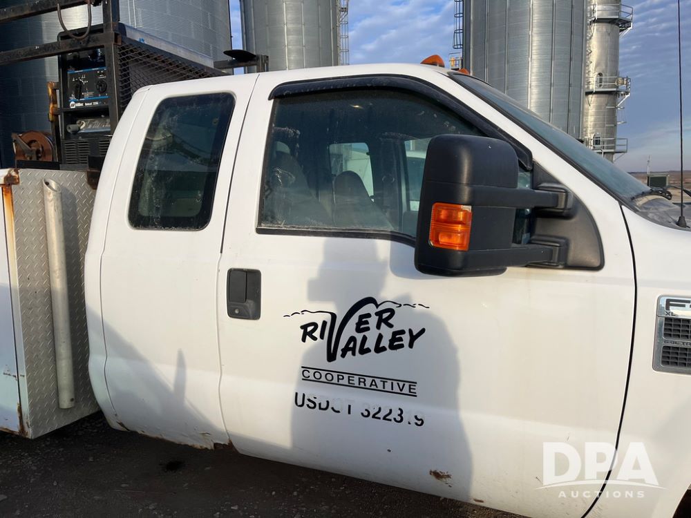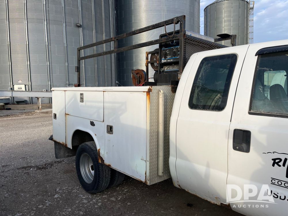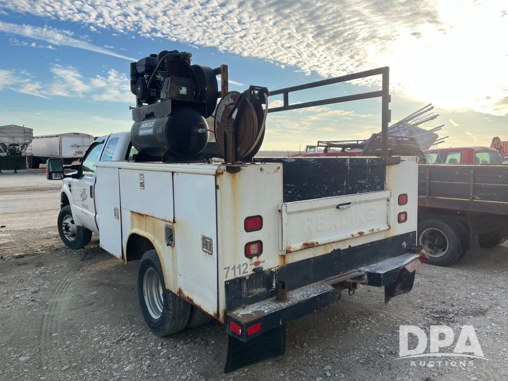 2008 Ford F350XL Super Duty Extended Cab Service Truck (JN3972, Unit 7112), 4x4, Triton 6.8L gas engine, 4 speed transmission with overdrive, air conditioning, heat, Am/Fm radio, cruise control, power windows & locks, dually, Reading service body, Miller Bobcat 225G generator/welder, Schultz heavy duty 30 gallon air compressor, LT245/75R17 tires, shows 237,445 miles.