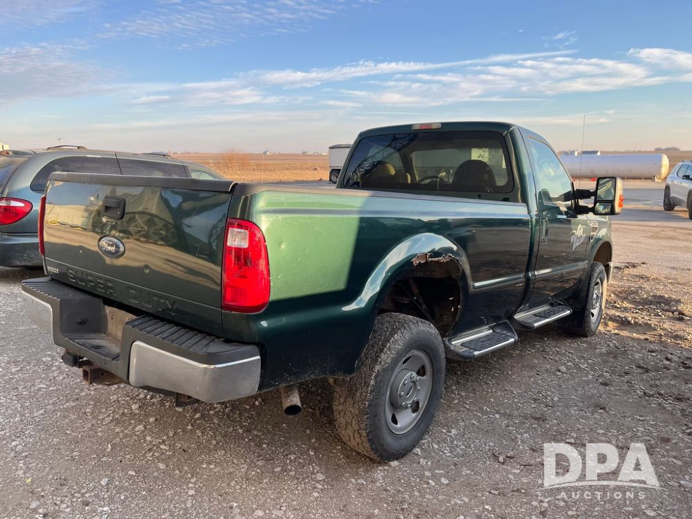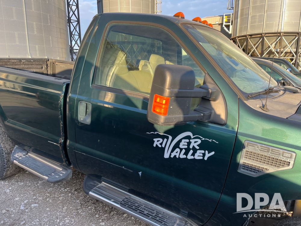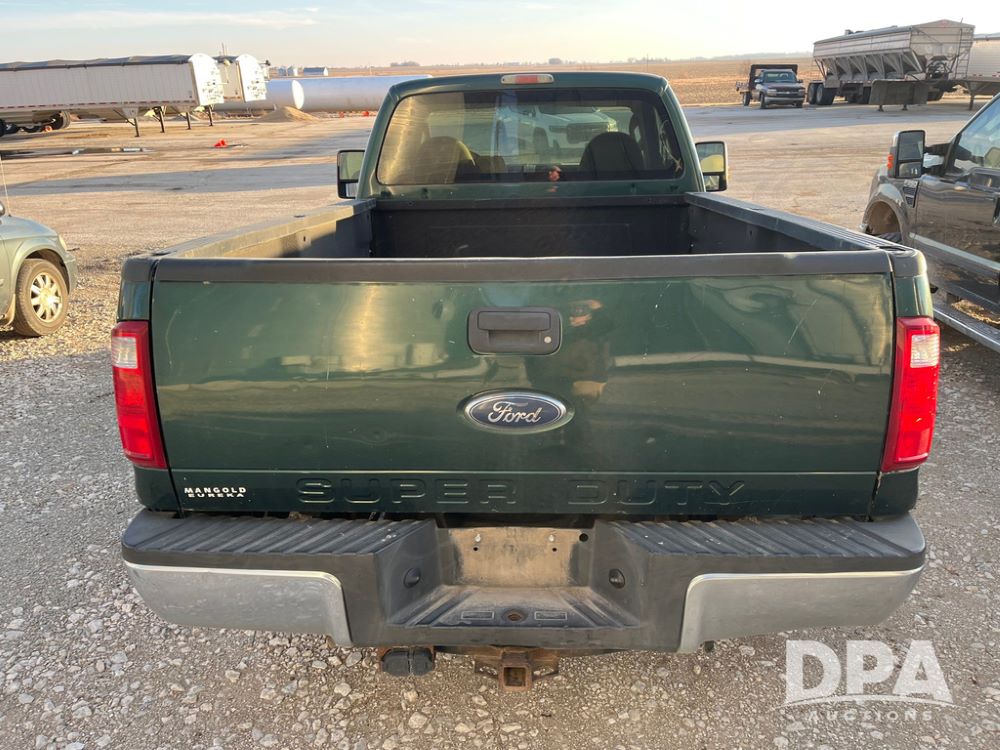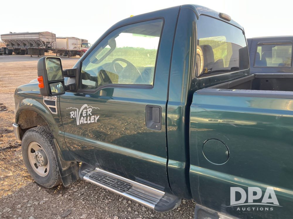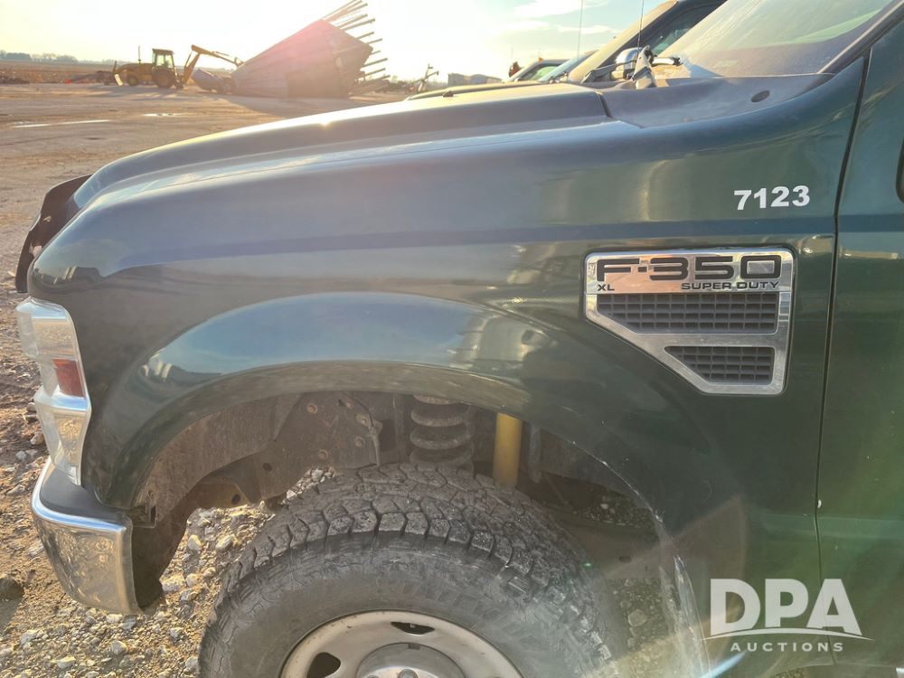 2008 Ford F350XL Super Duty Pickup (JN3969, Unit 7123), 4x4, 5.4L gas engine, automatic transmission, air conditioning, heat, Am/Fm radio, cruise control, power windows & locks, running boards, rear hitch, LT265/70R17 tires, shows 120,612 miles.