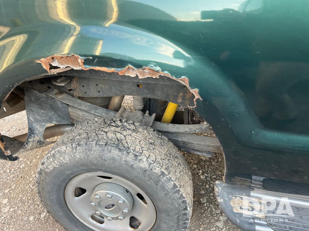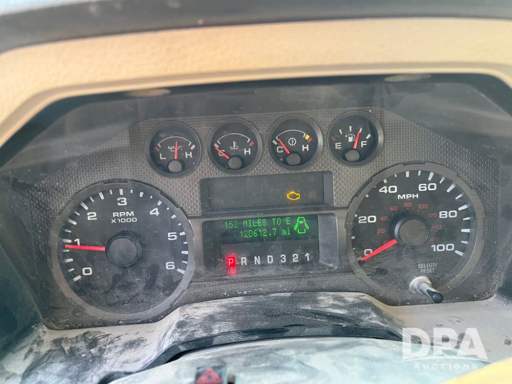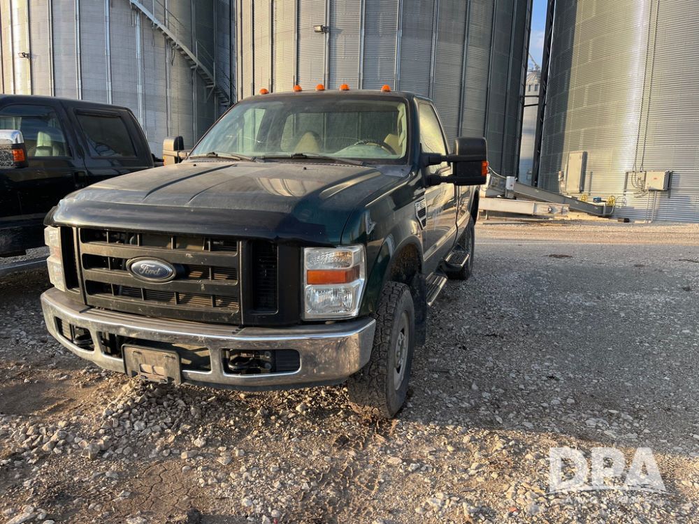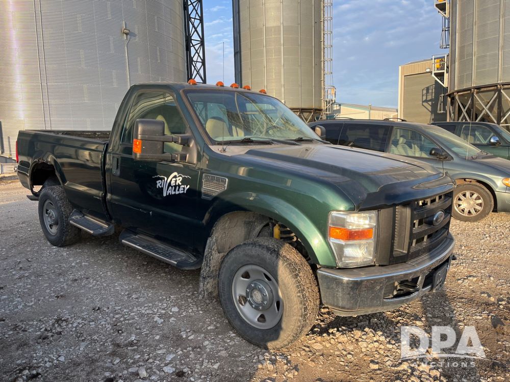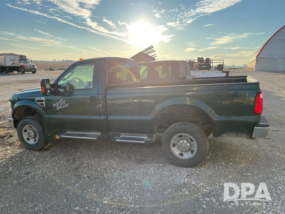 2008 Ford F350XL Super Duty Pickup (JN3969, Unit 7123), 4x4, 5.4L gas engine, automatic transmission, air conditioning, heat, Am/Fm radio, cruise control, power windows & locks, running boards, rear hitch, LT265/70R17 tires, shows 120,612 miles.