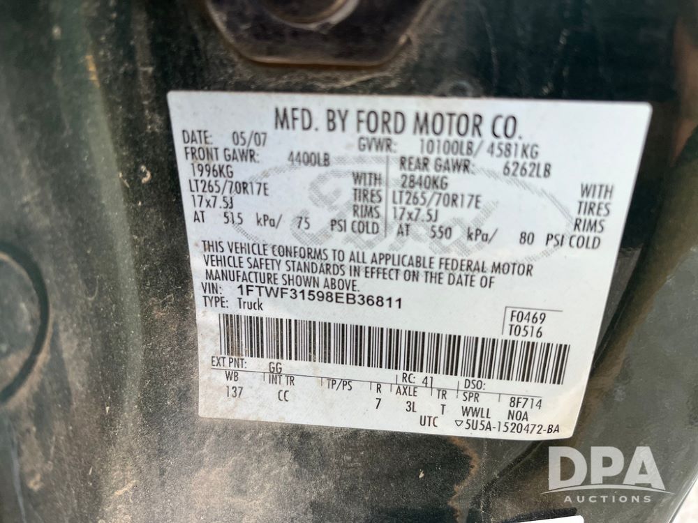 Serial Number: 1FTWF31598EB36811