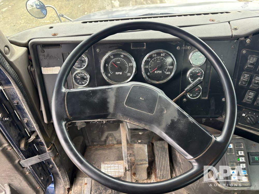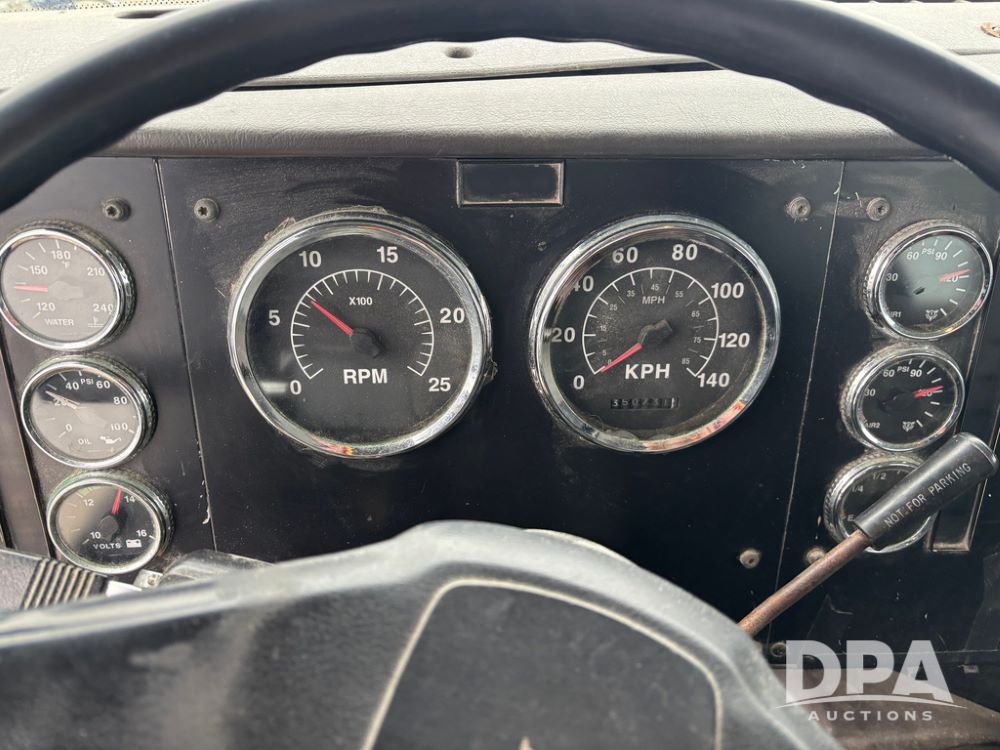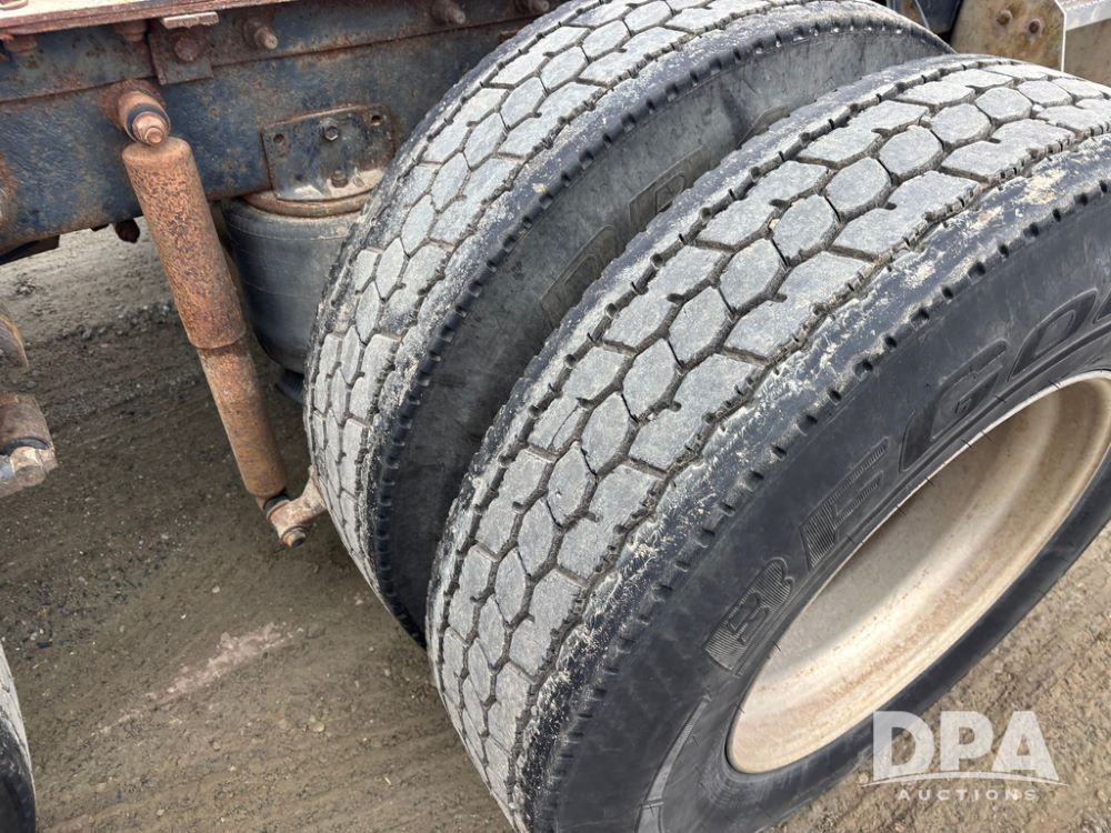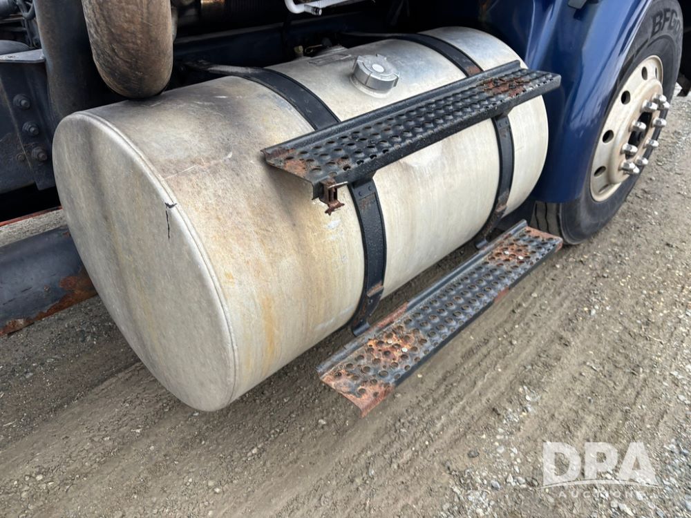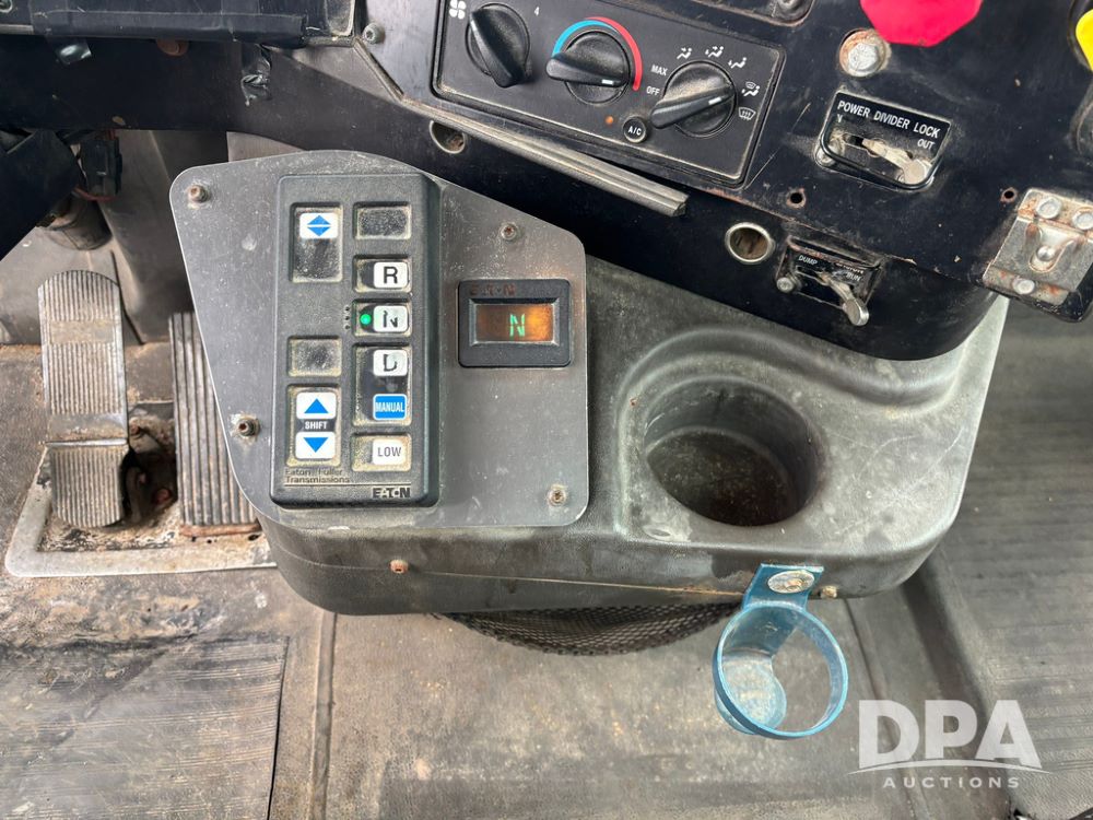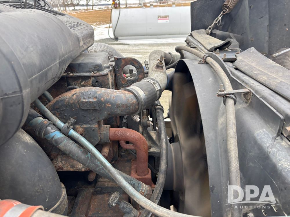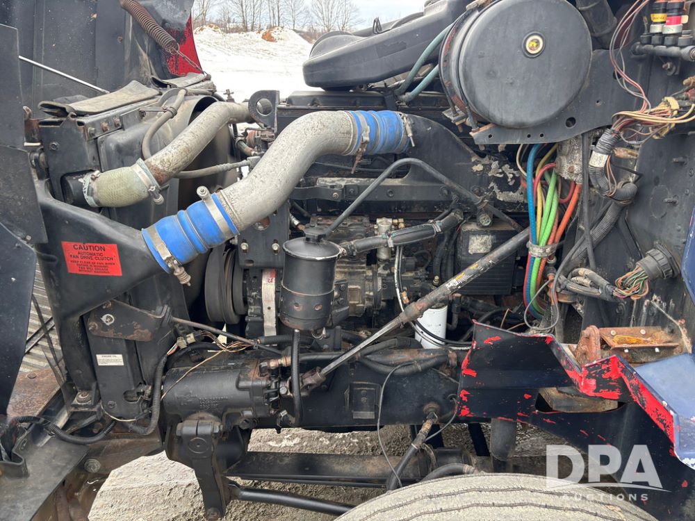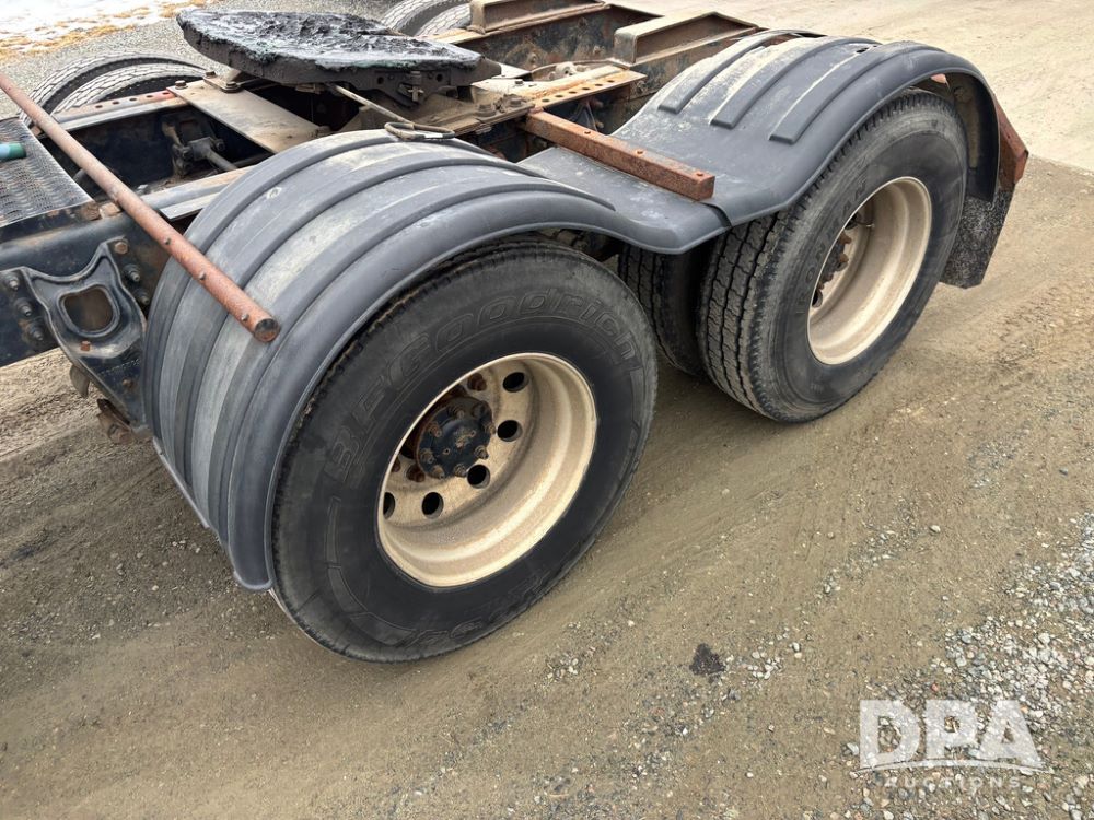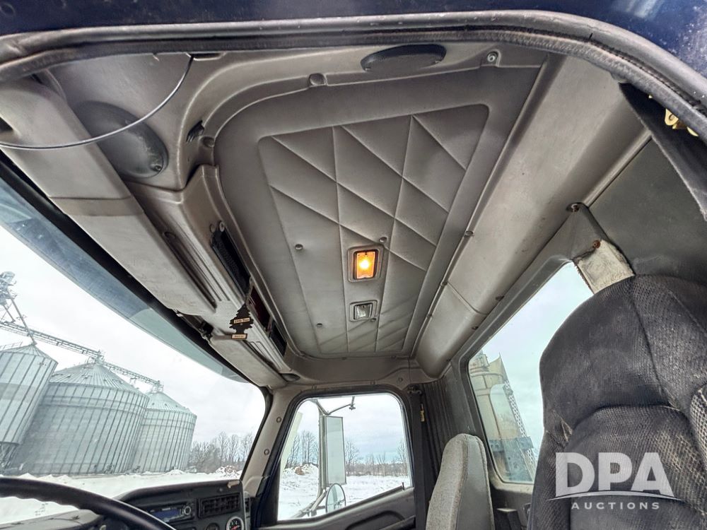 2002 International 9100i Day Cab Truck (GP12724), Cummins N14 Plus diesel engine, Eaton automatic transmission, heat, Am/Fm radio, cruise control, tandem axle, air ride suspension, 5th wheel plate, dual fuel tanks, single exhaust, 11R22.5 tires, GVWR 52,000 pounds, shows 350,731 miles.