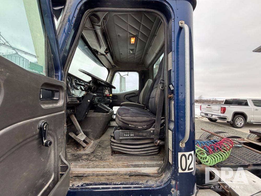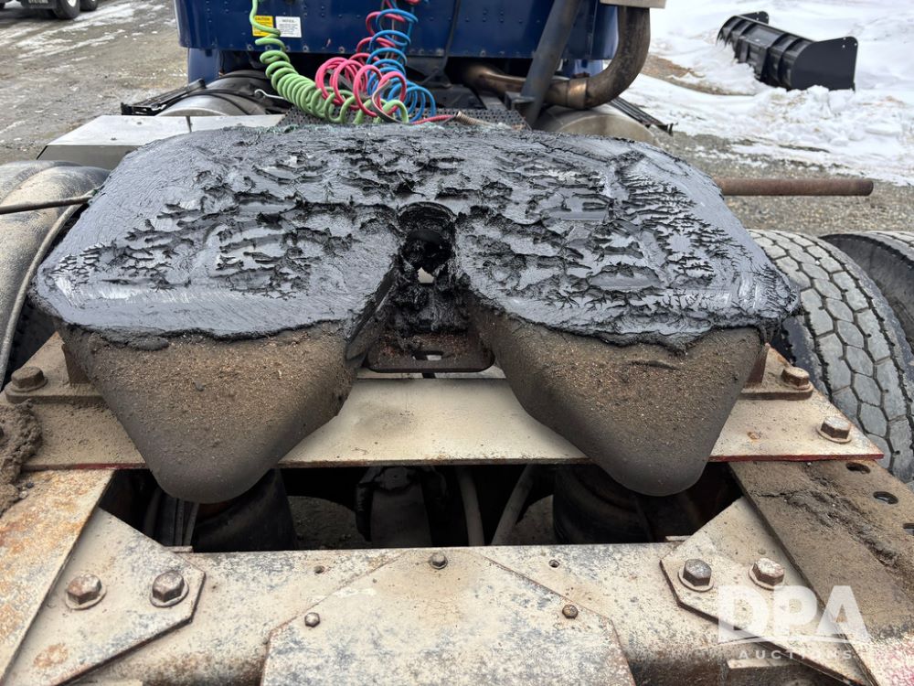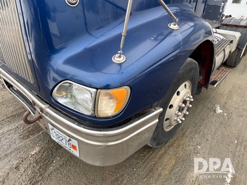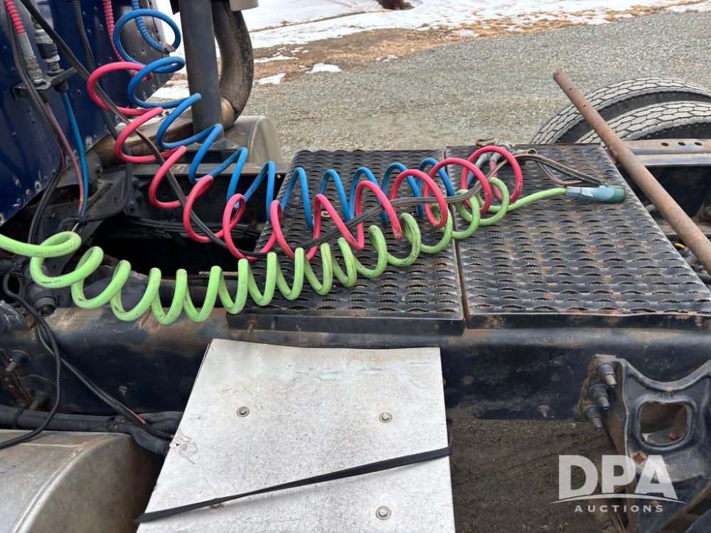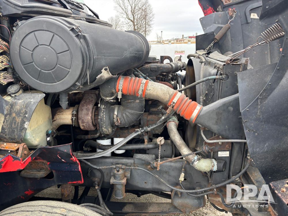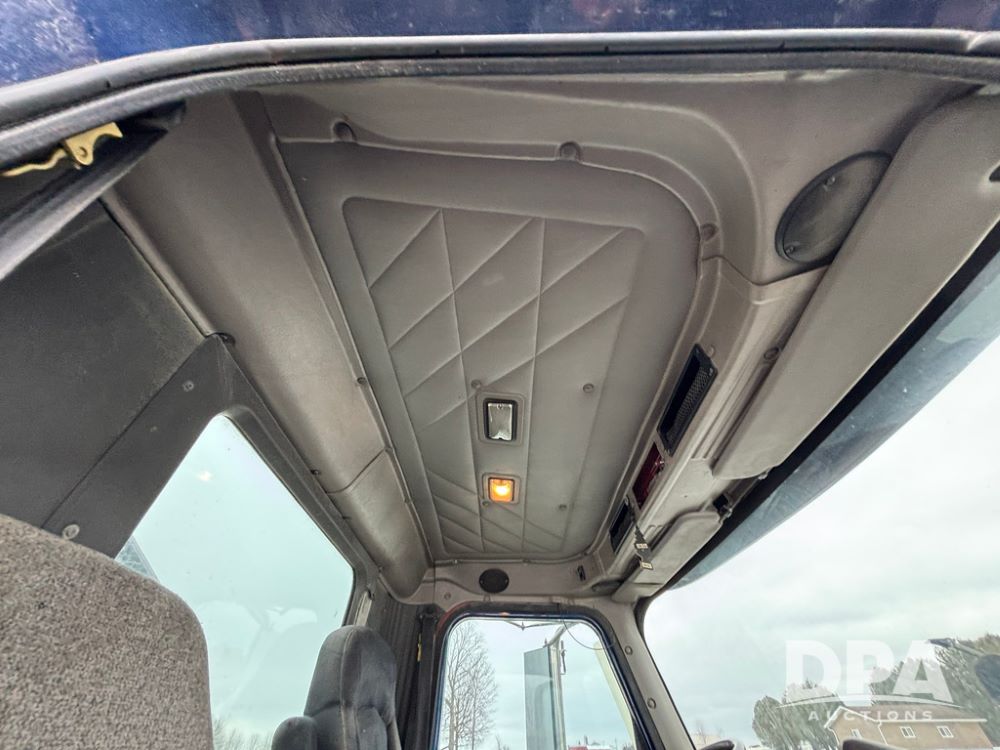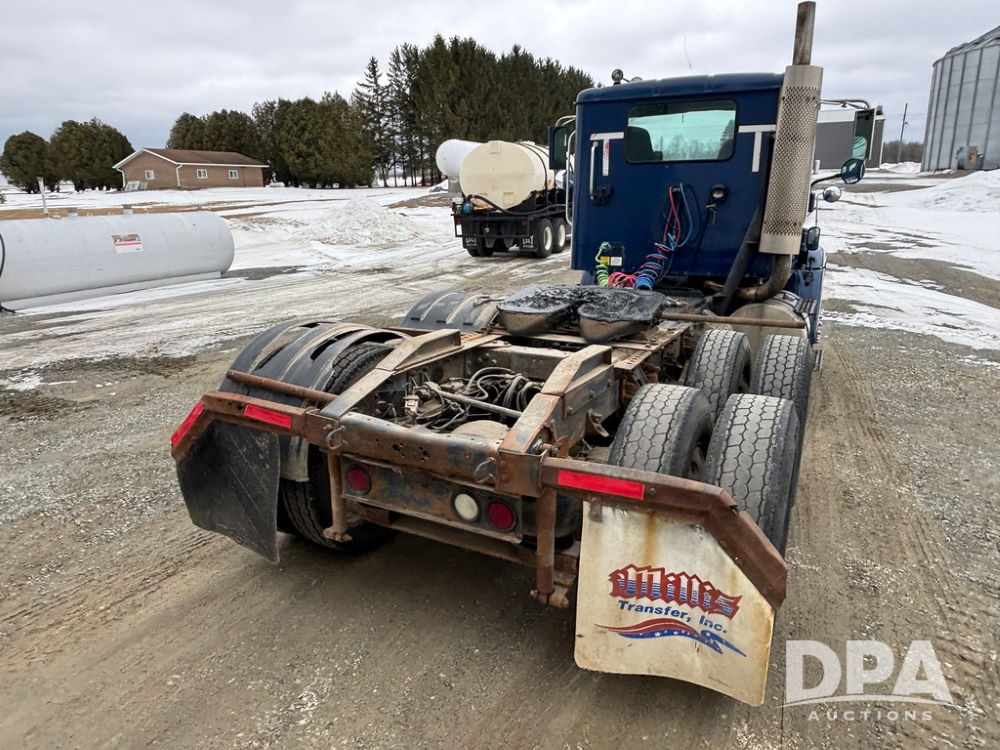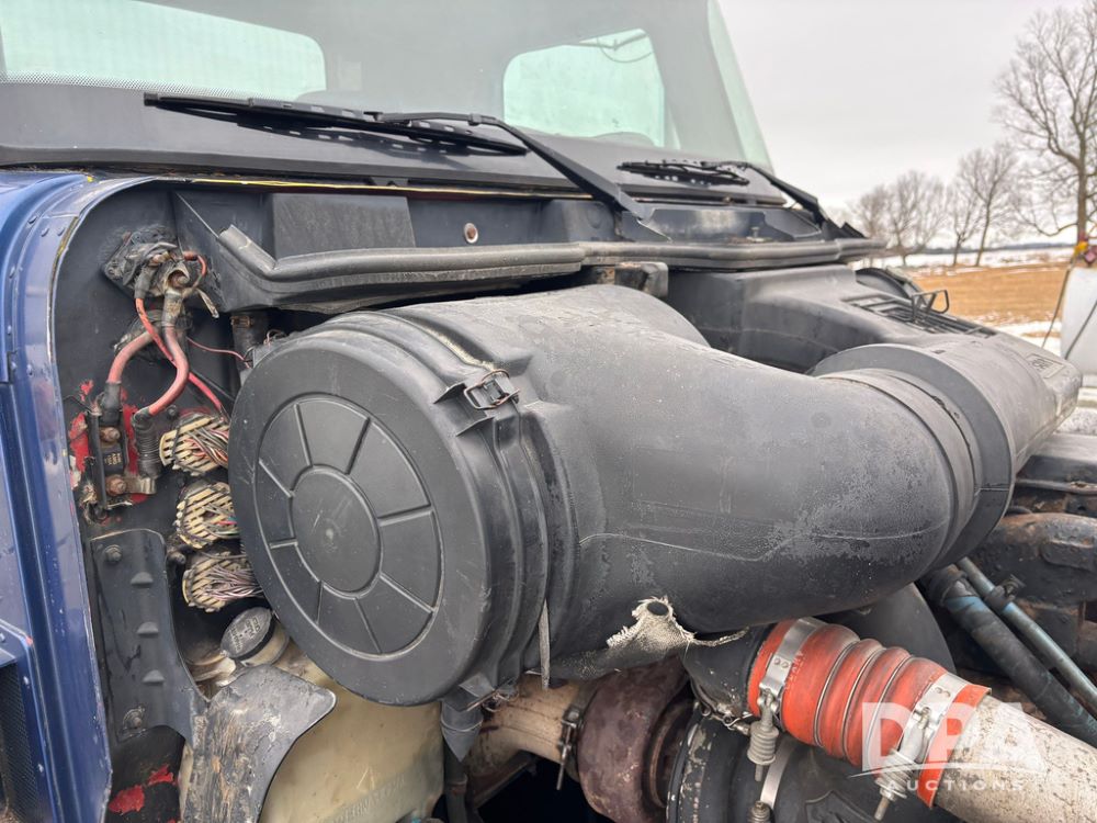 2002 International 9100i Day Cab Truck (GP12724), Cummins N14 Plus diesel engine, Eaton automatic transmission, heat, Am/Fm radio, cruise control, tandem axle, air ride suspension, 5th wheel plate, dual fuel tanks, single exhaust, 11R22.5 tires, GVWR 52,000 pounds, shows 350,731 miles.