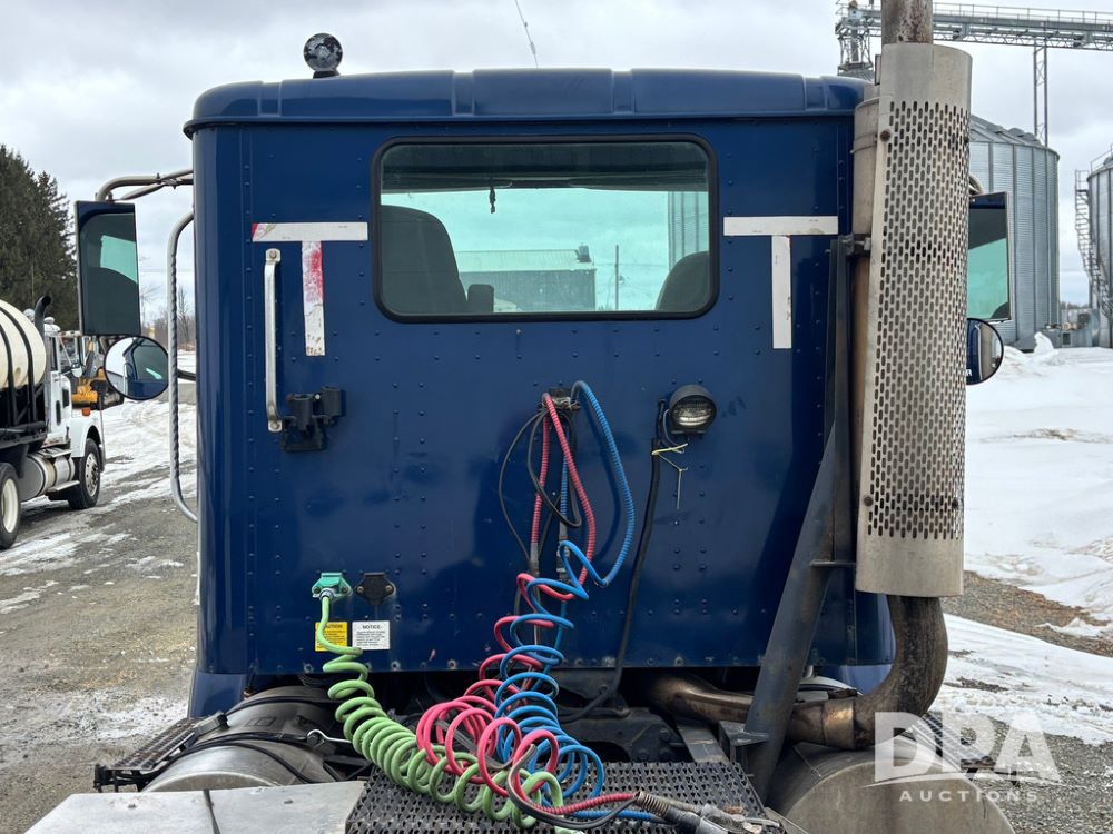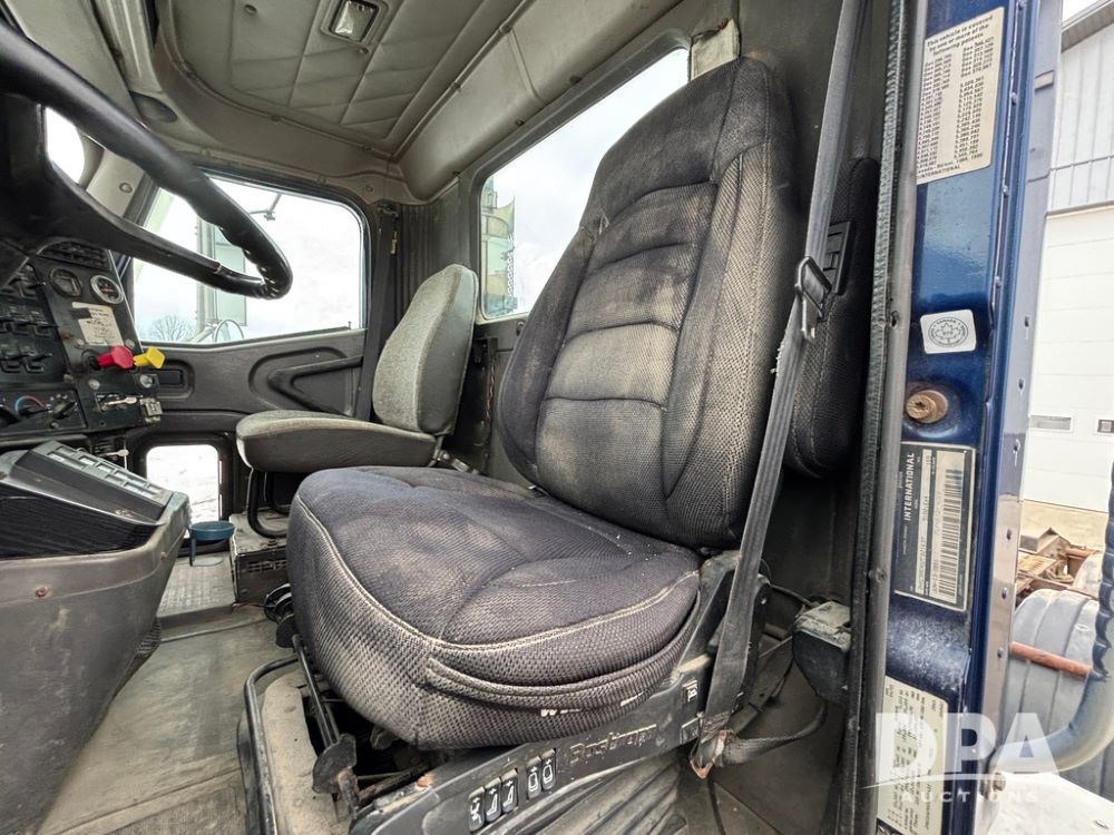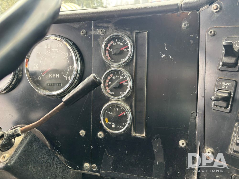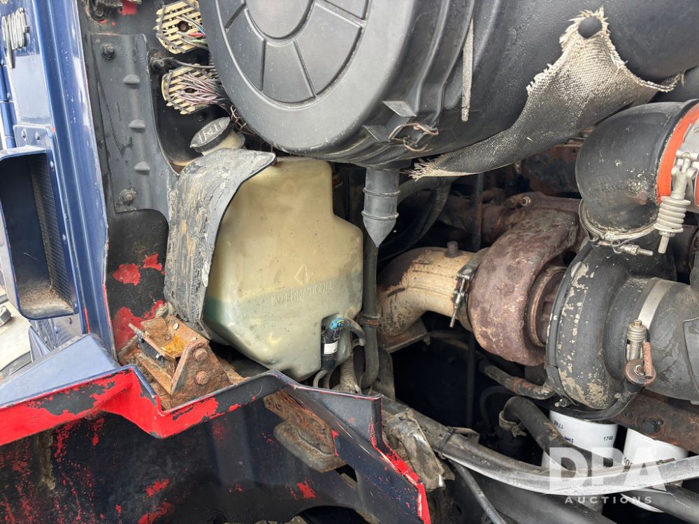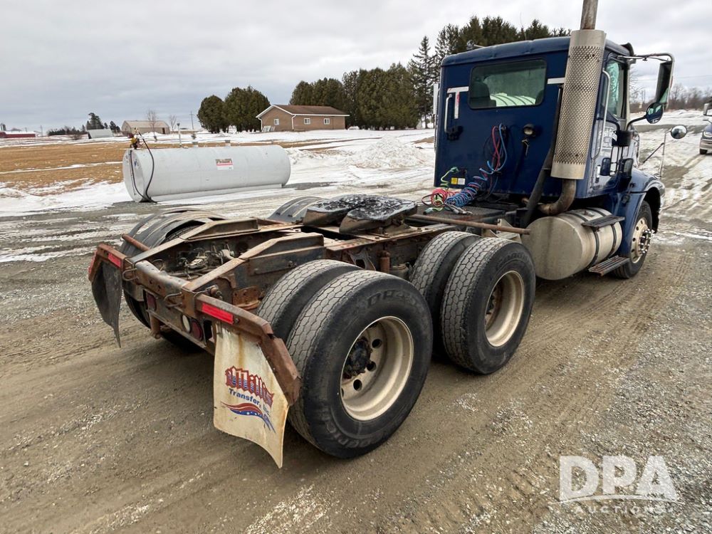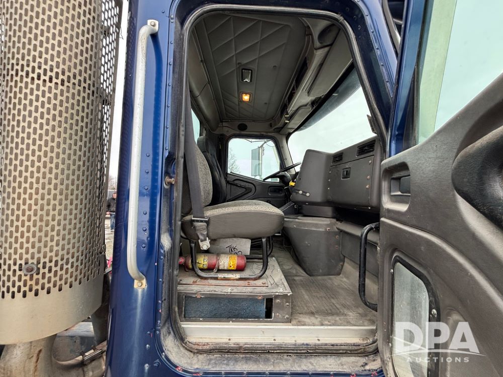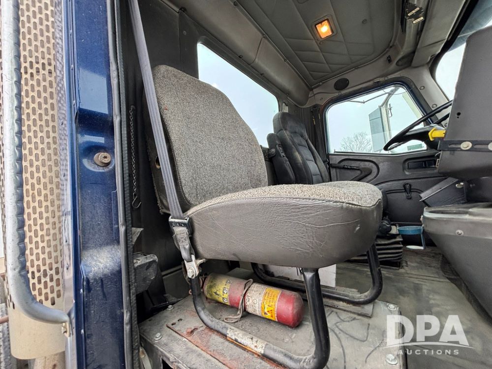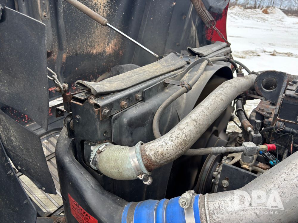 2002 International 9100i Day Cab Truck (GP12724), Cummins N14 Plus diesel engine, Eaton automatic transmission, heat, Am/Fm radio, cruise control, tandem axle, air ride suspension, 5th wheel plate, dual fuel tanks, single exhaust, 11R22.5 tires, GVWR 52,000 pounds, shows 350,731 miles.