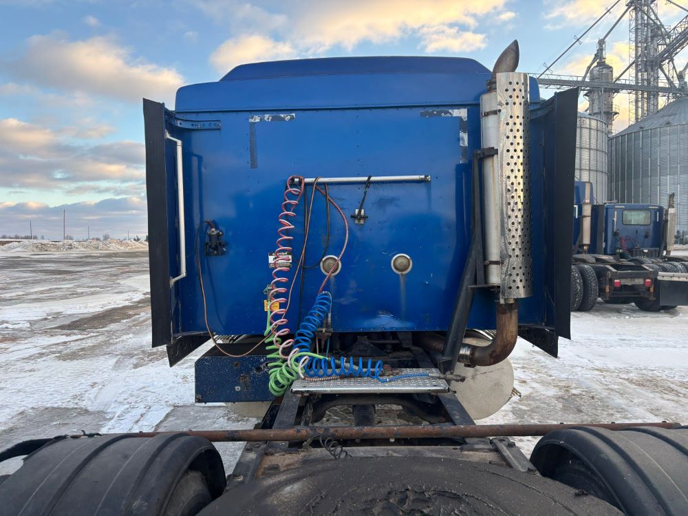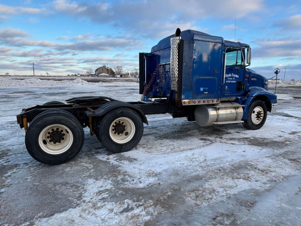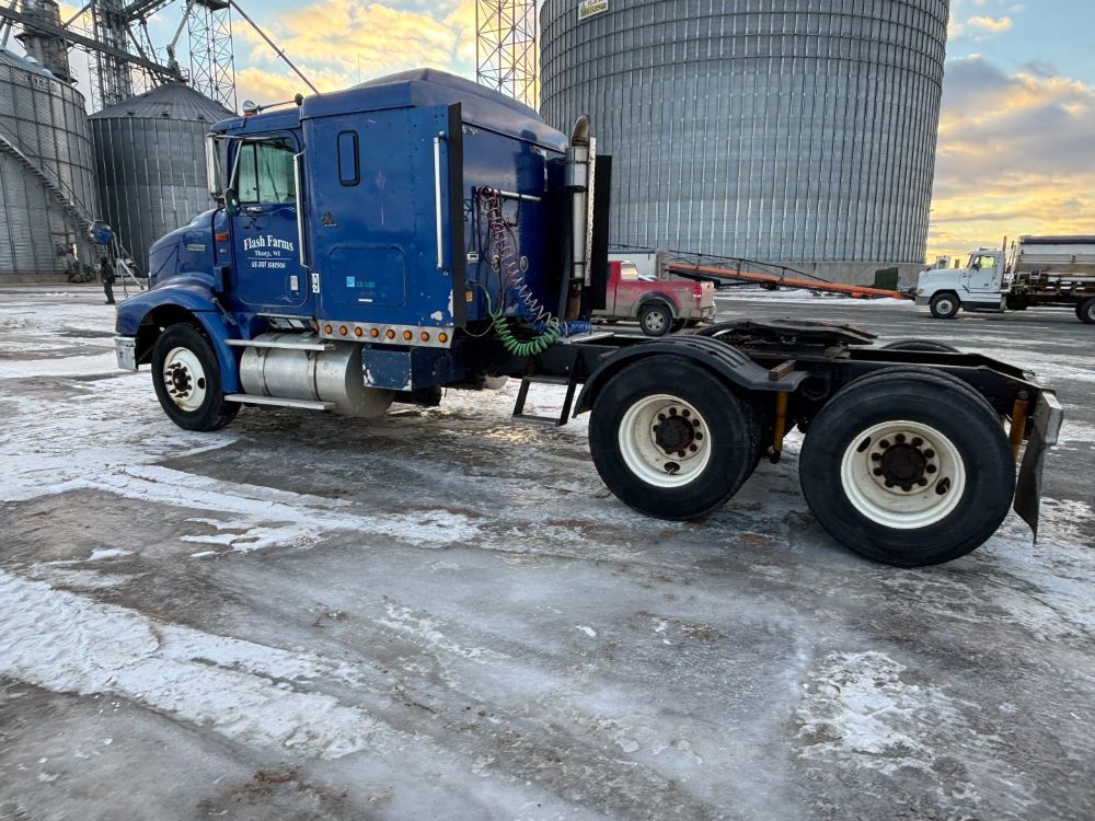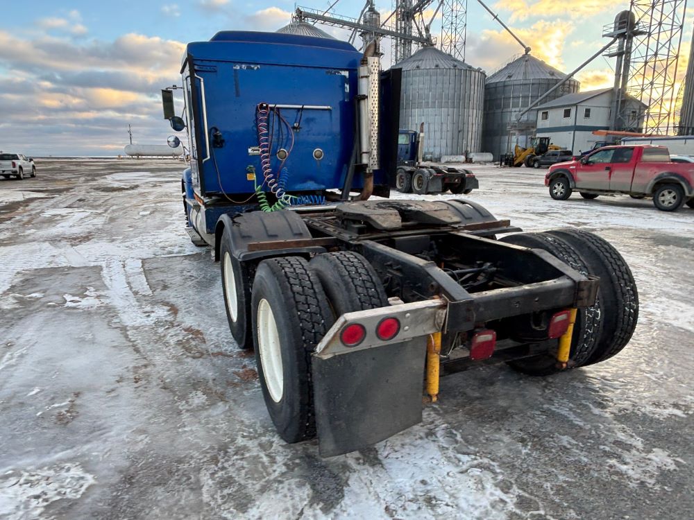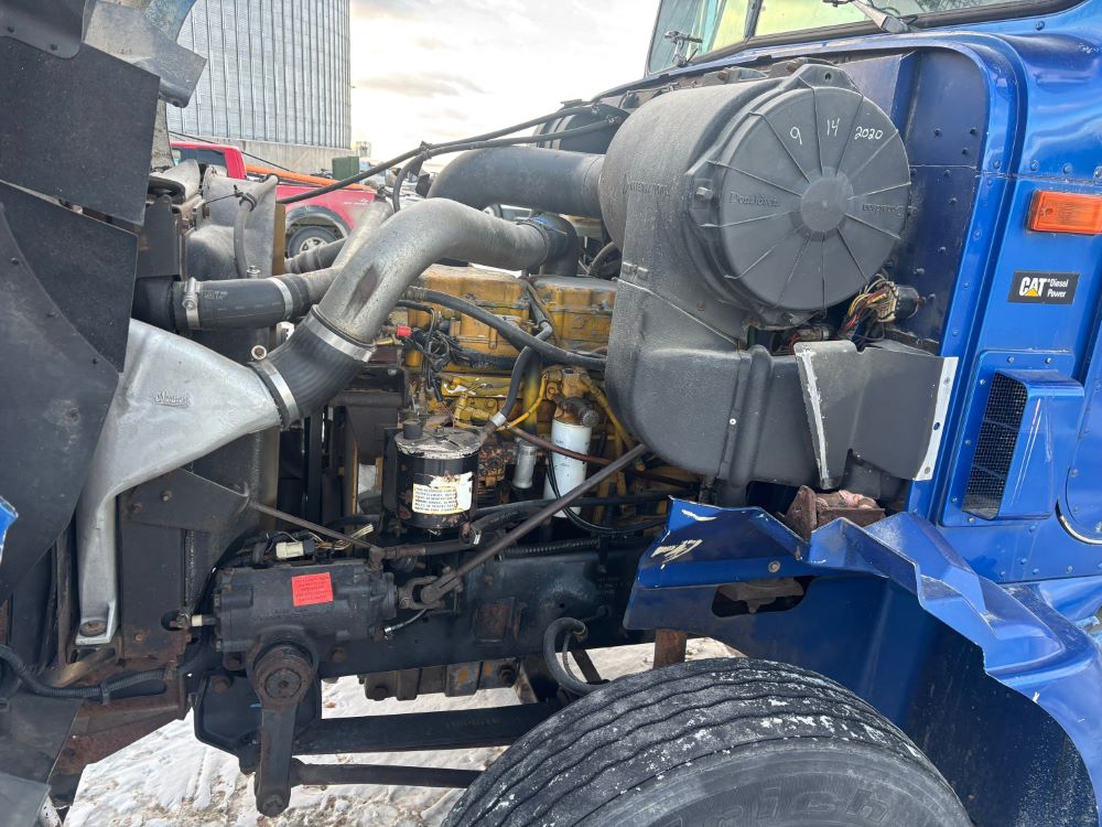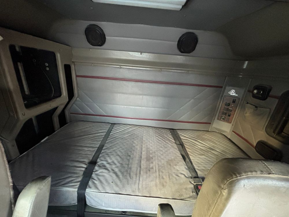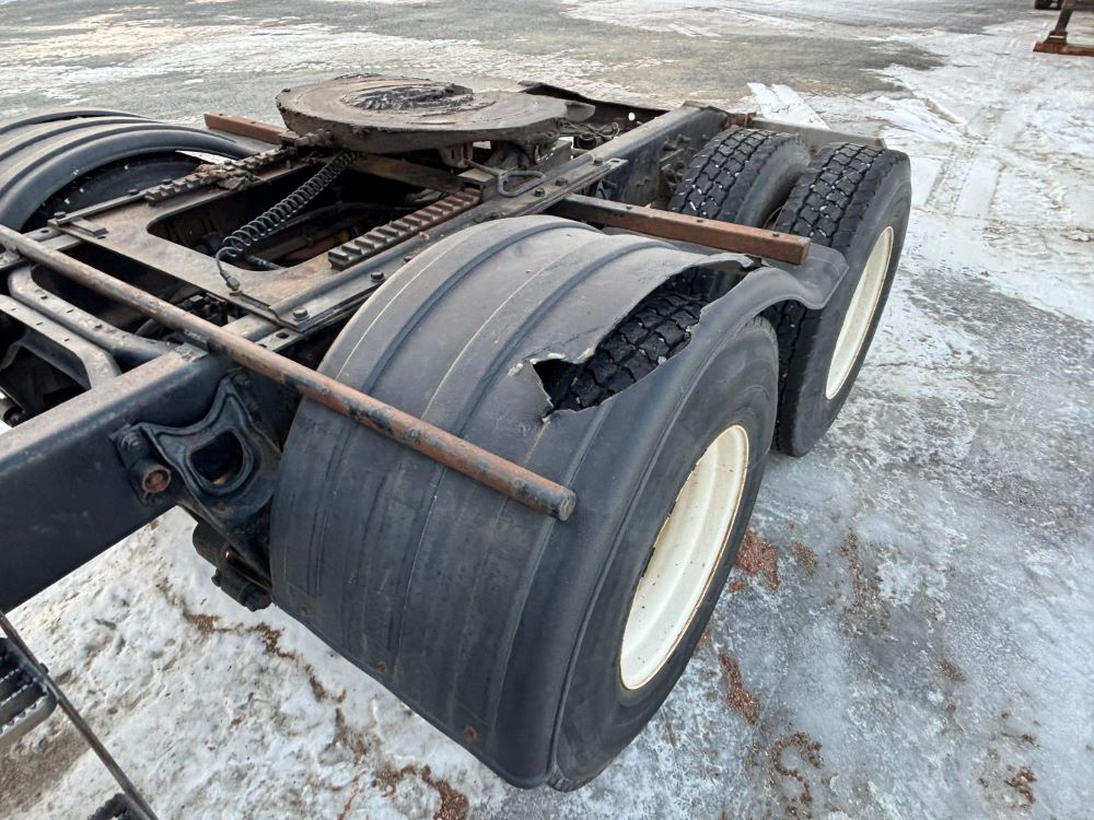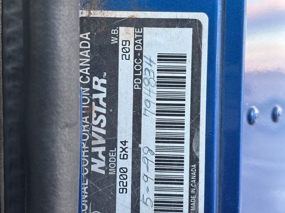 1999 International 9200 Truck (GP12736, Unit 99), Cat C-12 diesel engine, Eaton Fuller 13 speed transmission, heat, Am/Fm radio, Pro Sleeper, cruise control, tandem axle, air ride suspension, 5th wheel plate, dual fuel tanks, single exhaust, 11R22.5 tires, engine heater, GVWR 52,000 pounds, shows 978,850 miles.