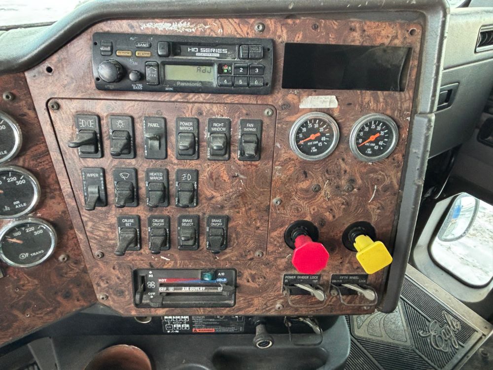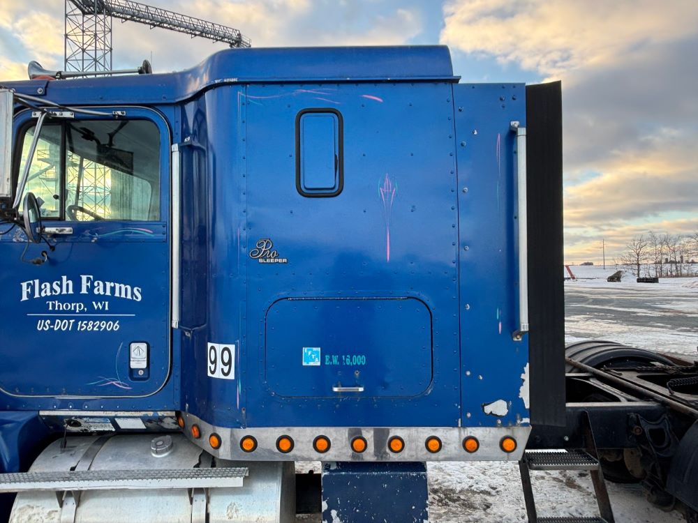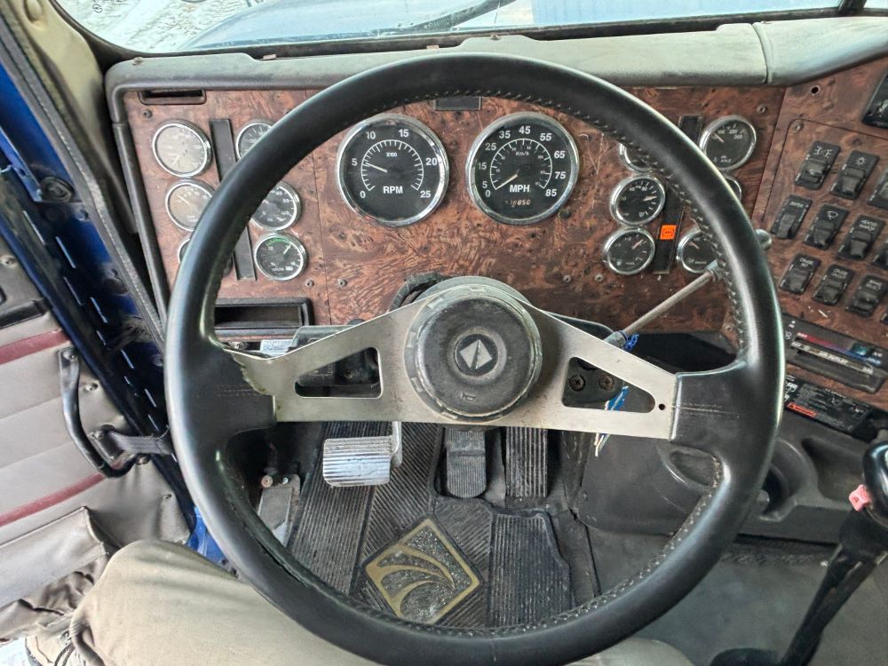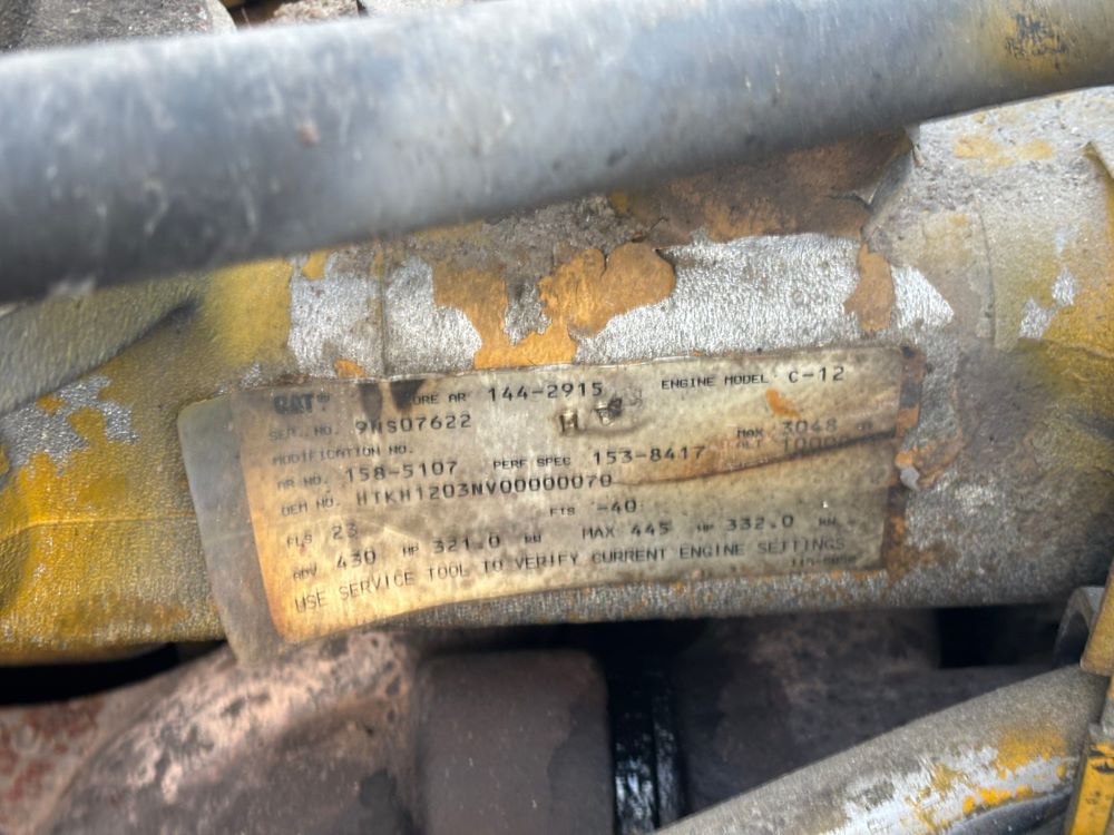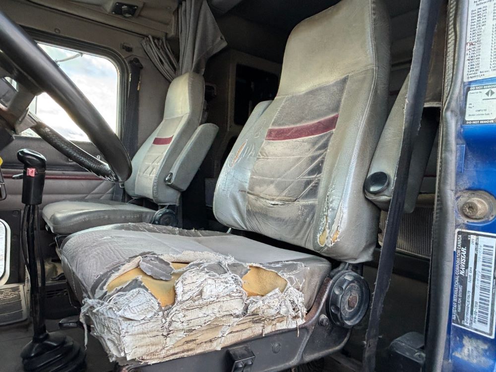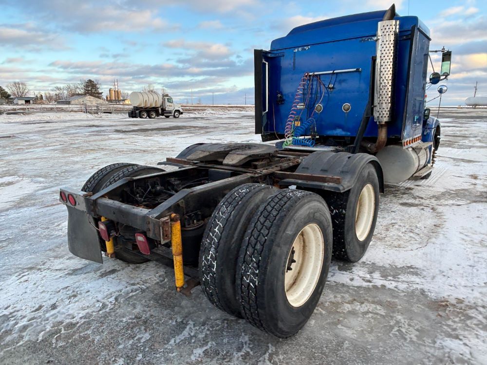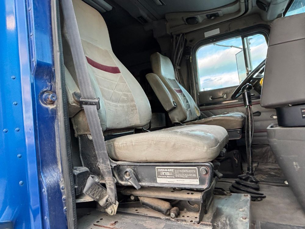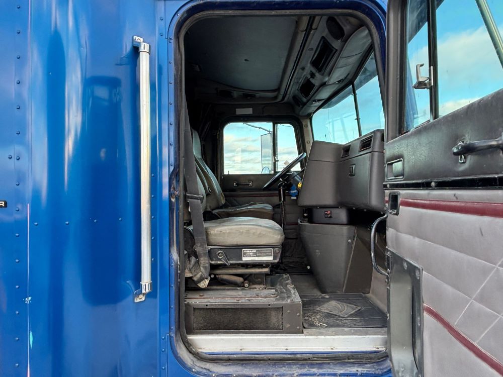 1999 International 9200 Truck (GP12736, Unit 99), Cat C-12 diesel engine, Eaton Fuller 13 speed transmission, heat, Am/Fm radio, Pro Sleeper, cruise control, tandem axle, air ride suspension, 5th wheel plate, dual fuel tanks, single exhaust, 11R22.5 tires, engine heater, GVWR 52,000 pounds, shows 978,850 miles.
